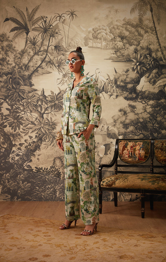 EARAYA PRINTED KURTA SET WITH EMBELLISHED JACKET