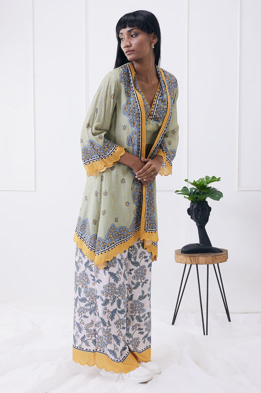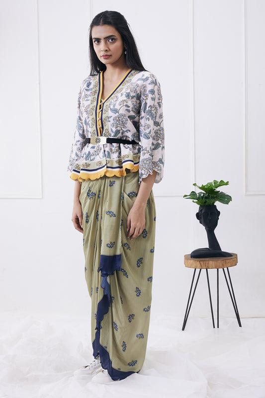 YASMIN PRINTED DRAPE SKIRT WITH PEPLUM TOP