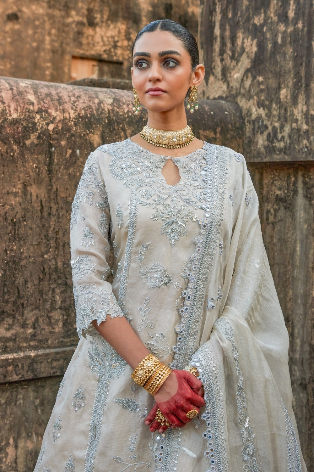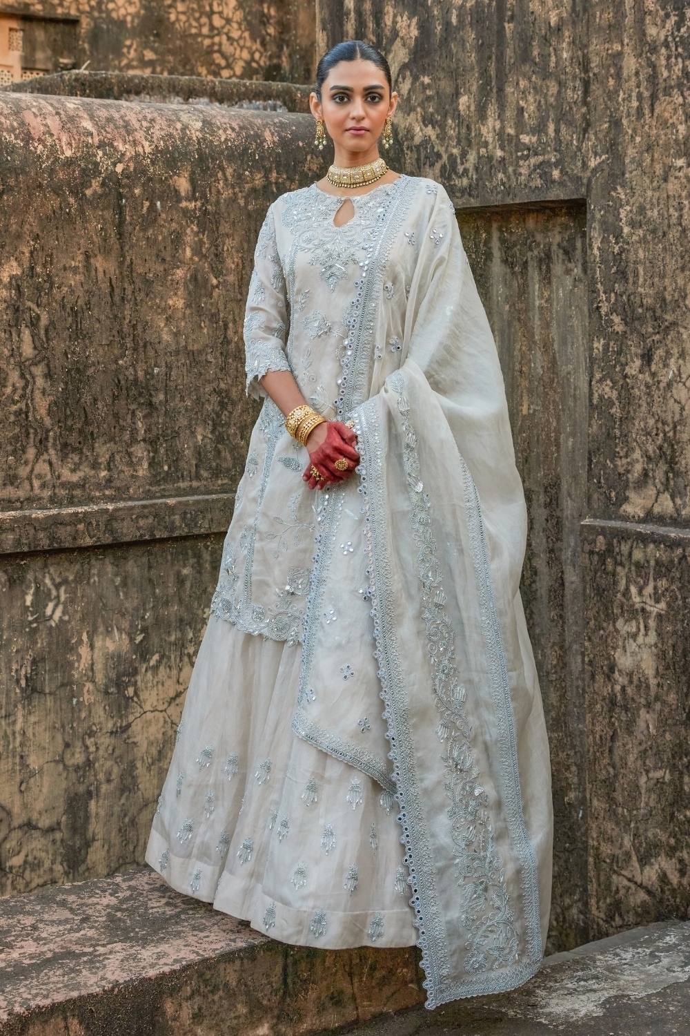 Quietly Luxurious, The Subtle Ornamentation On This Fusion Lehenga Set Is Enhanced With Tone-On-Tone Silver Embroidery All Presented In A Contemporary Silhouette. Crafted On Pure Tissue, Aarna Tissue Fusion Set Is Elevated With Handcrafted Dori Marodi, Mukaish, Sequins And Mirror Work. Perfect For All Your Festive Soirees And Glamarous Night Time Events.