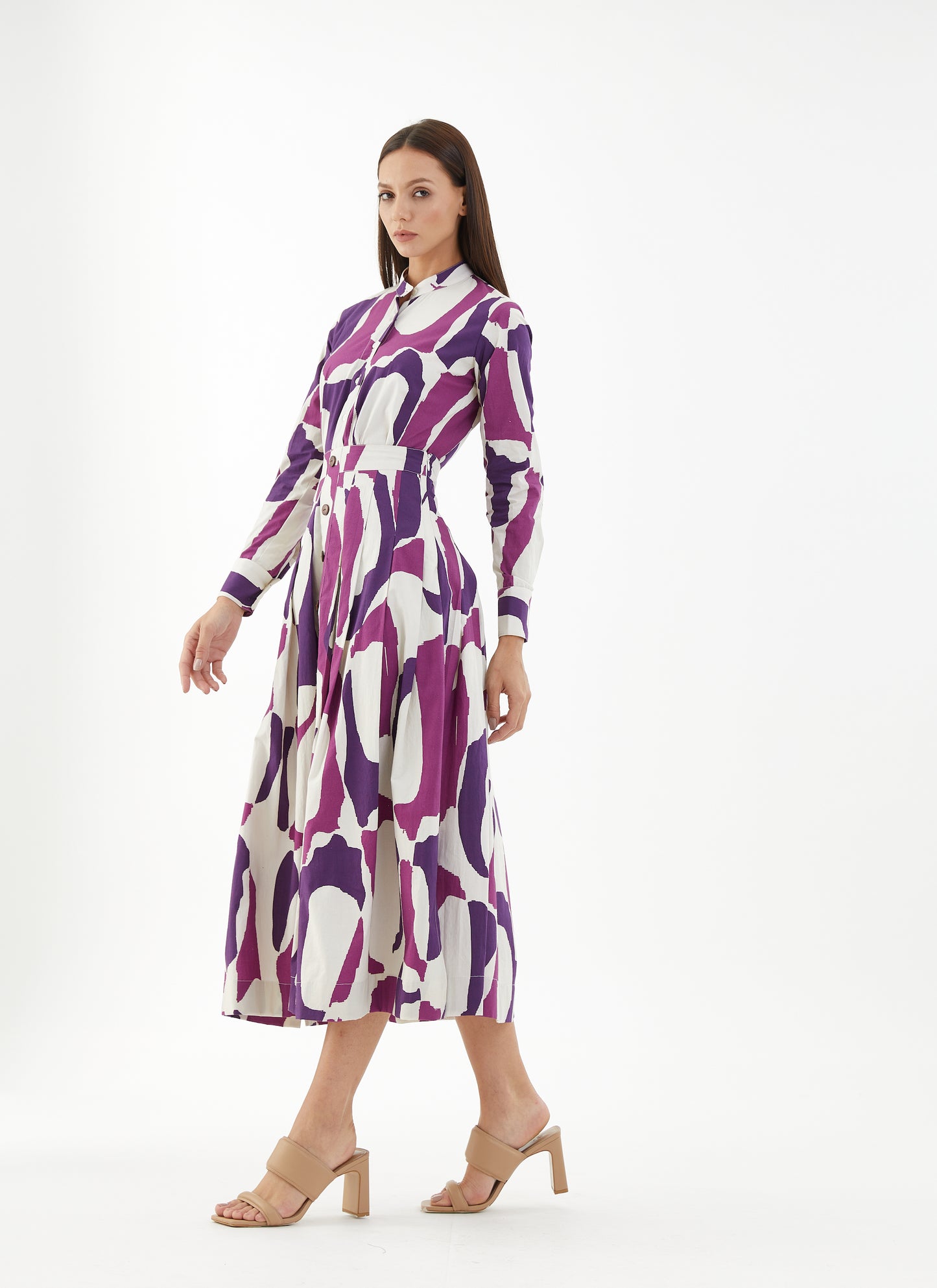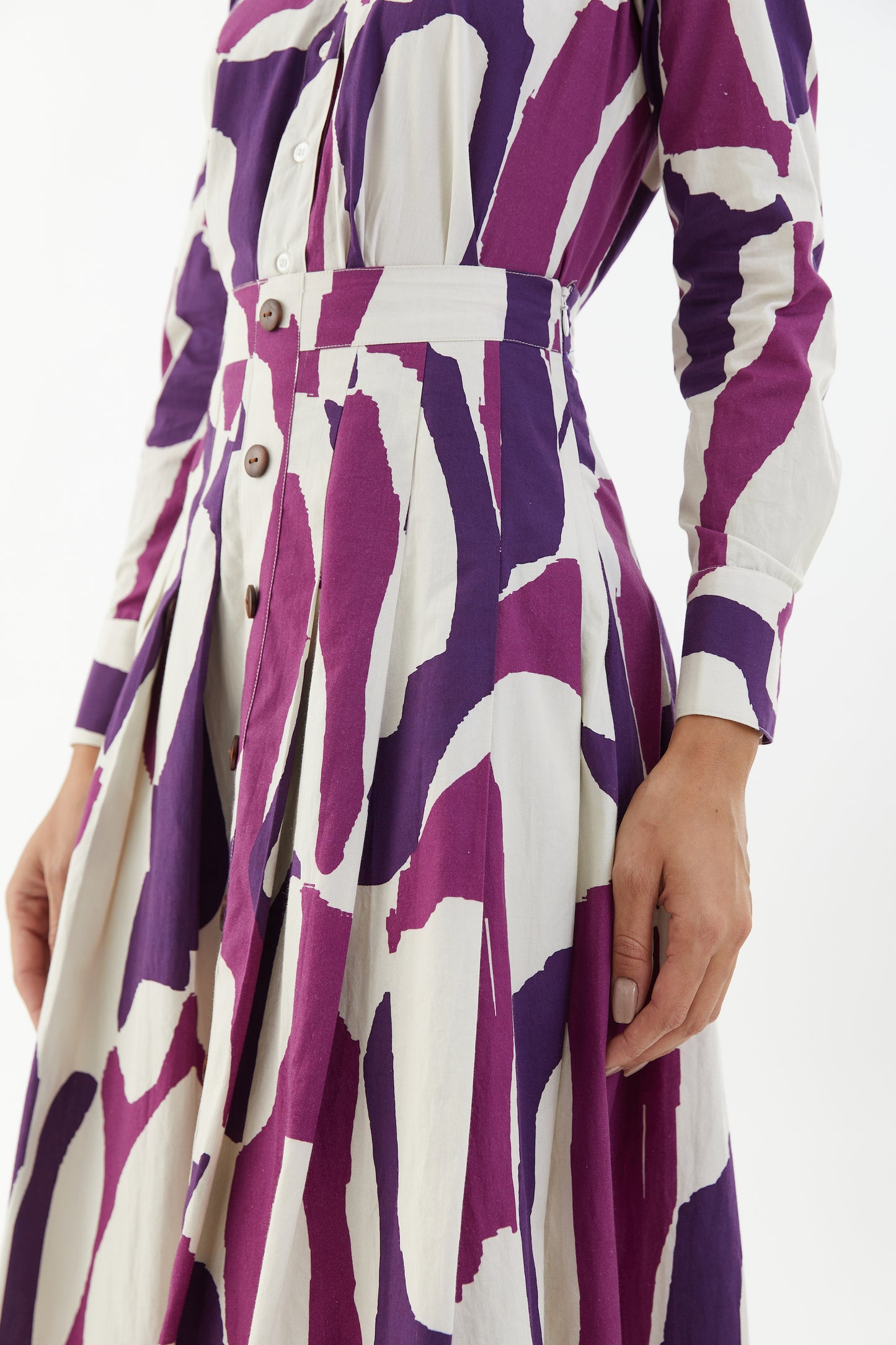 Purple, Pink And White Skirt Based On Poplin Cotton Features Abstract Print.