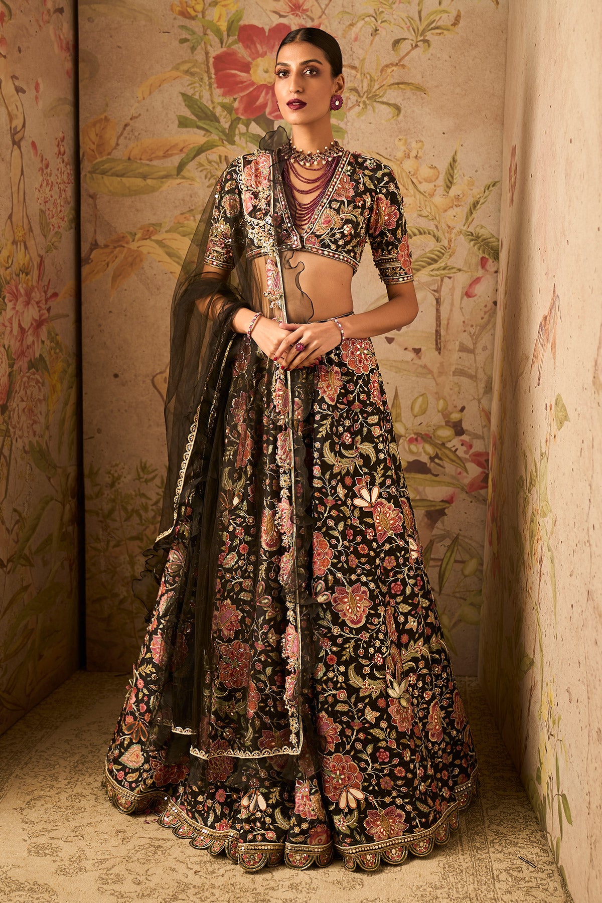 Discover Elegance In Every Stitch With Our Exquisite Black Raw Silk Lehenga Set. This Masterpiece Features Intricate Prints, Heavy Embroidery, And Captivating Mirror Embellishments On The Lehenga And Blouse. Paired With A Delicately Crafted Net Applique Embroidered Dupatta, This Ensemble Is A True Embodiment Of Timeless Sophistication And Opulence. Make A Statement With This Stunning Creation, Perfect For Your Special Occasions.