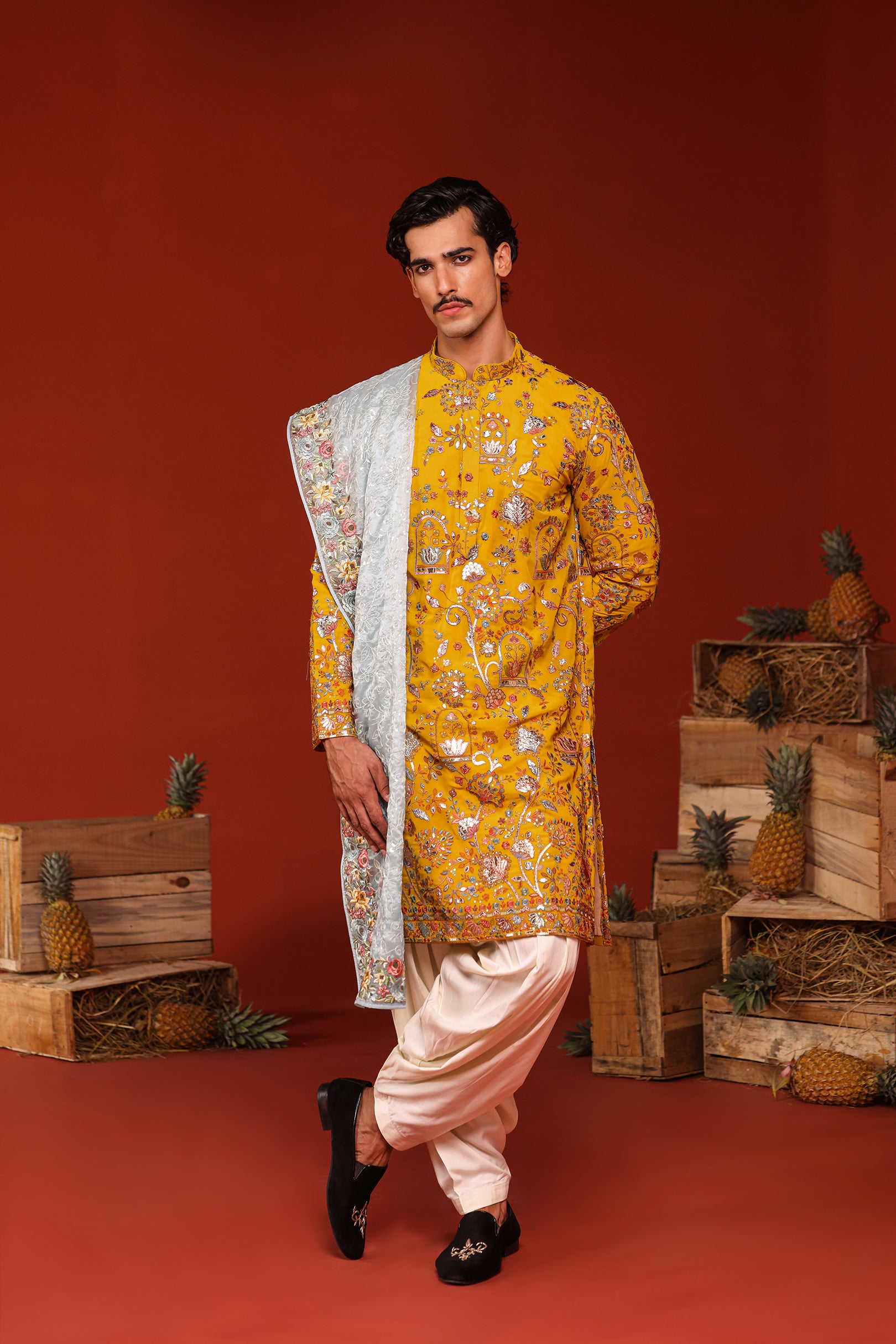 Featuring Detailed Reshom And Sequined Embroidery, This Kurta Is As Stylish As It Is Functional With Two Pockets. Lined With Pure Viscose For A Luxurious Feel, It’s Paired With An Ivory-Colored Patiala And A Heavily Embroidered Dupatta For A Stunning Look.