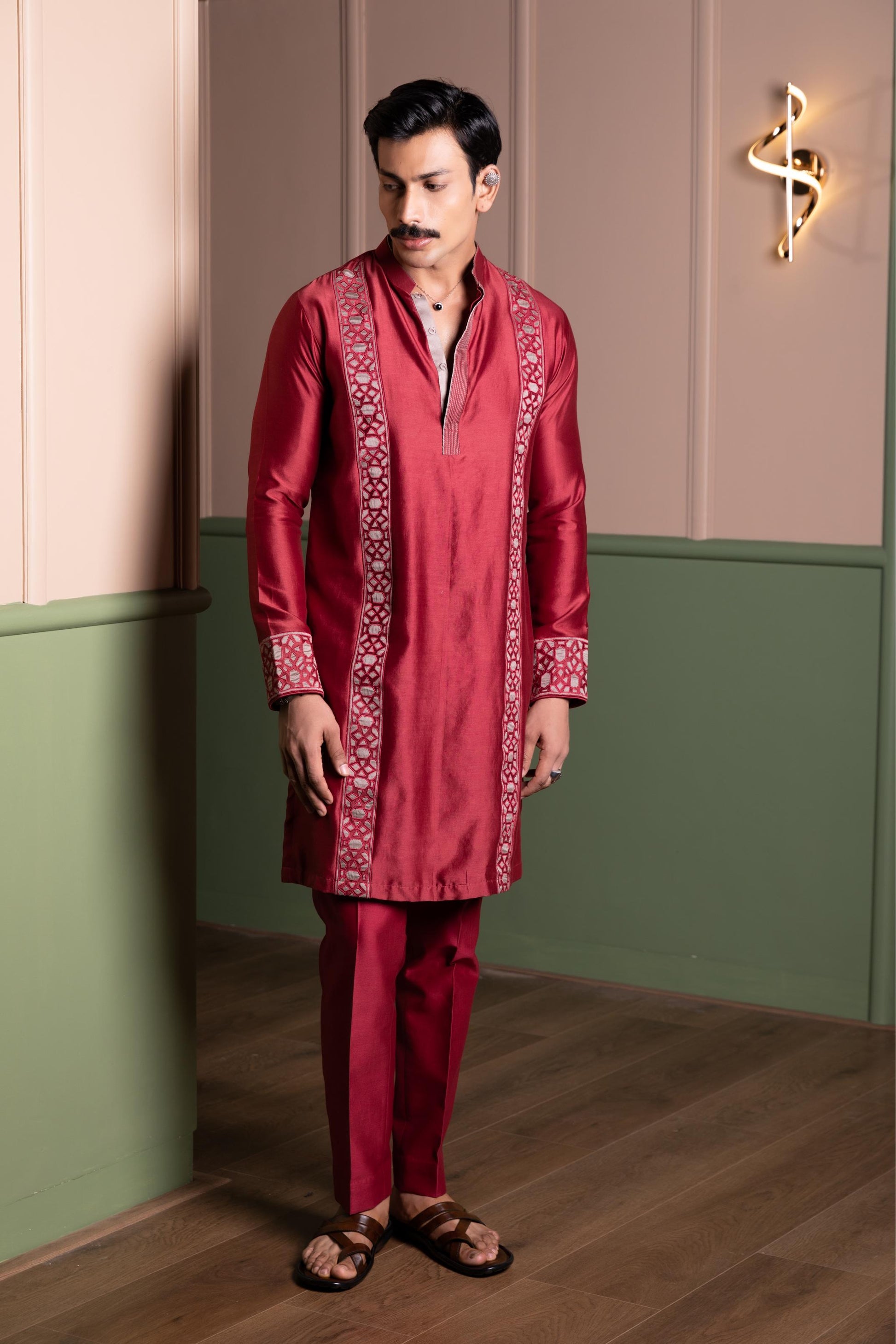 Chanderi Kurta With Applique Panel Work Paired With Monotone Pants