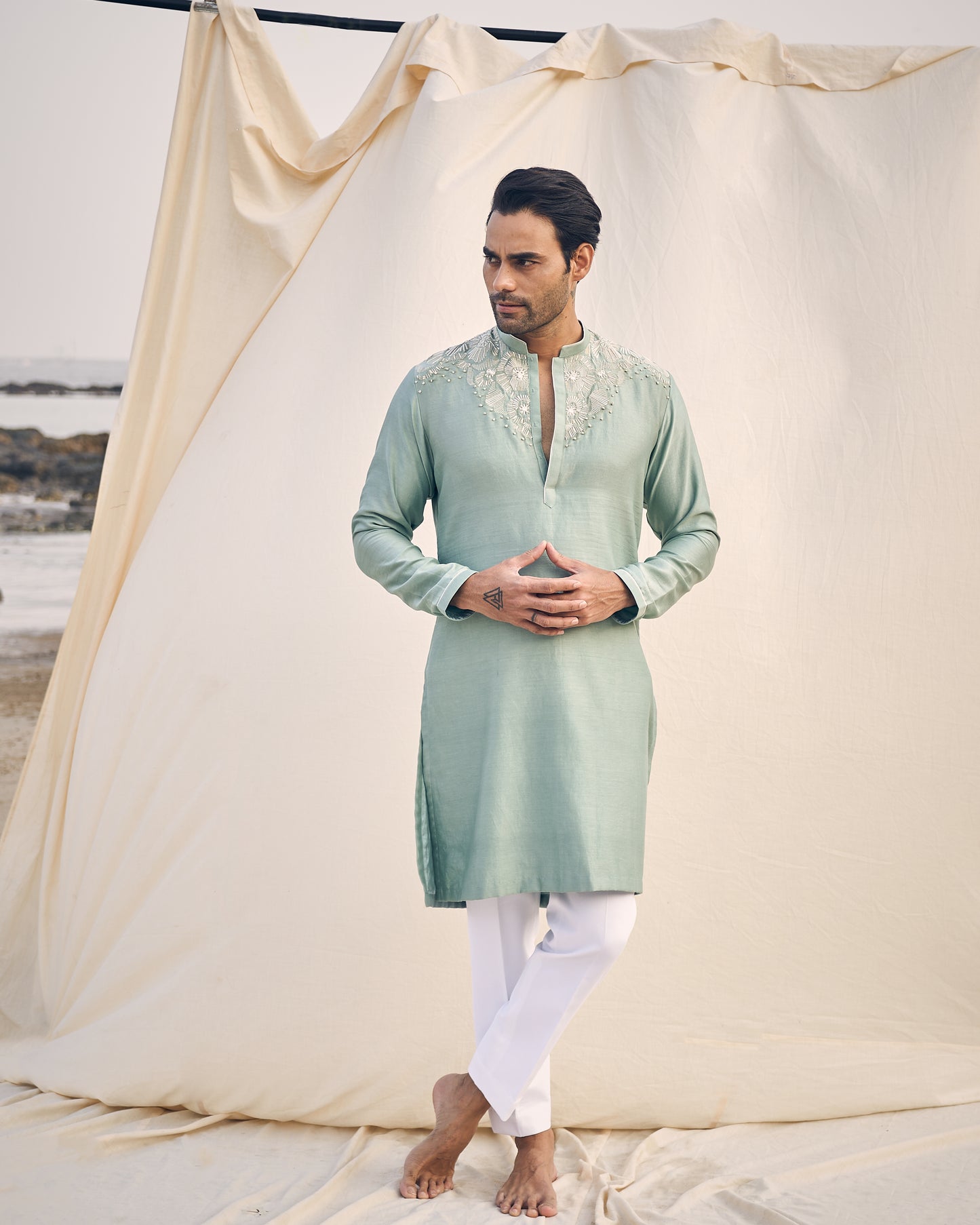 AQUA GREEN U LINE EMBROIDERY KURTA SET