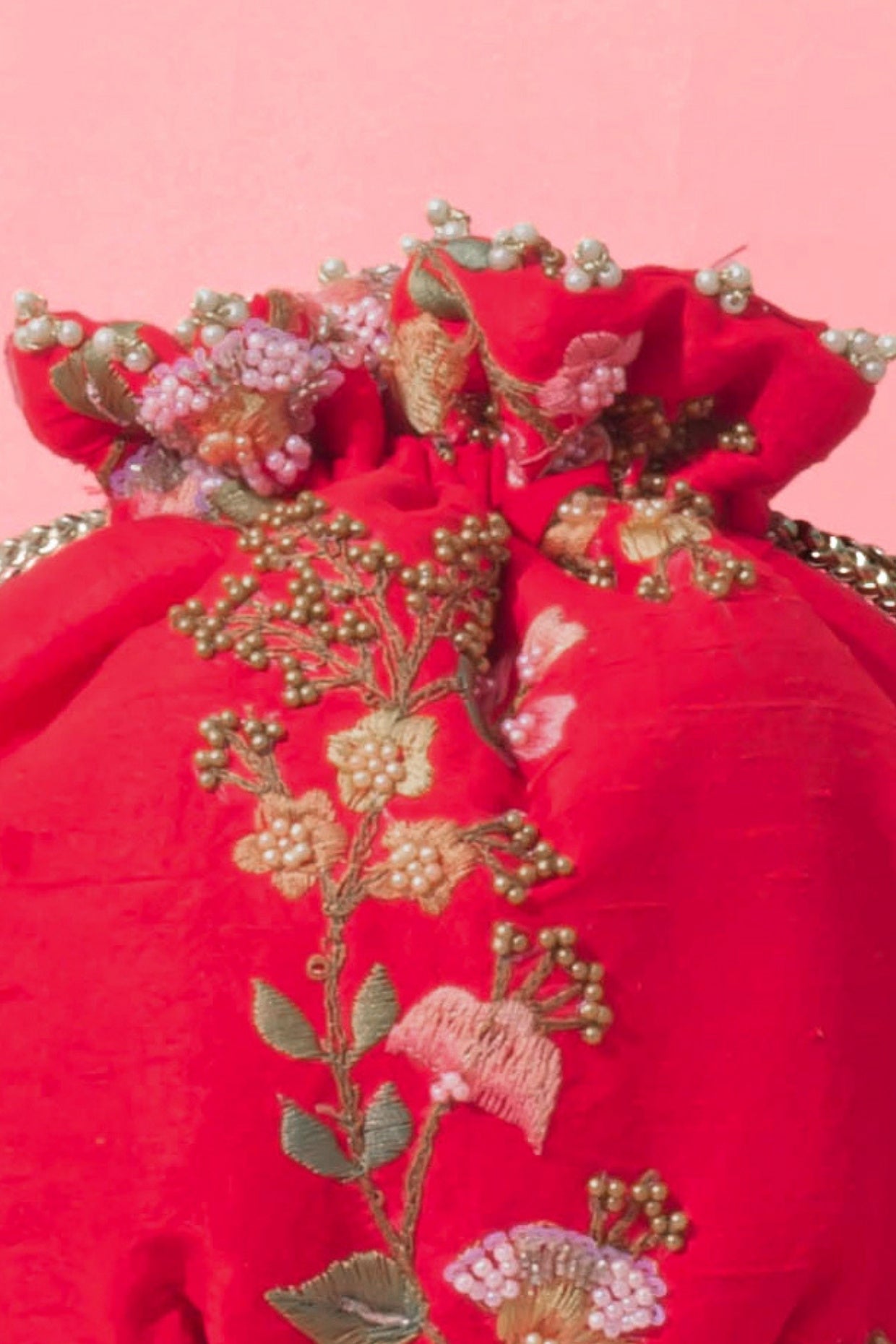 Whether You're Stepping Out For A Romantic Date Or Attending A Festive Gathering, This Potli Is The Perfect Companion For This Valentine’s Day. Its Compact Yet Functional Design Makes It Ideal For Carrying Your Essentials In Style. A Perfect Blend Of Tradition And Modernity, This Potli Is Sure To Turn Heads Wherever You Go!