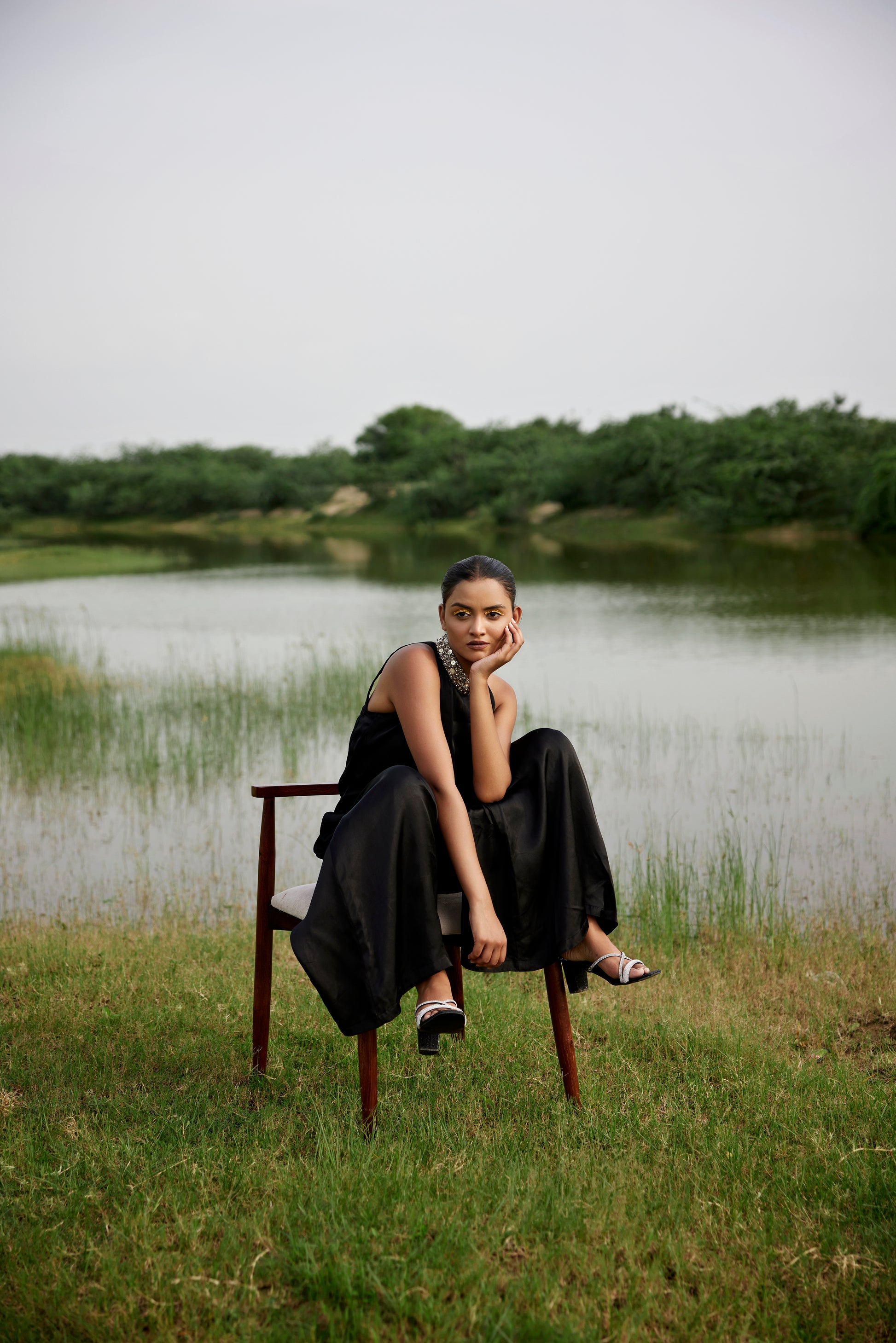 Black Jumpsuit With Subtle Embroidery Detailing For Women.