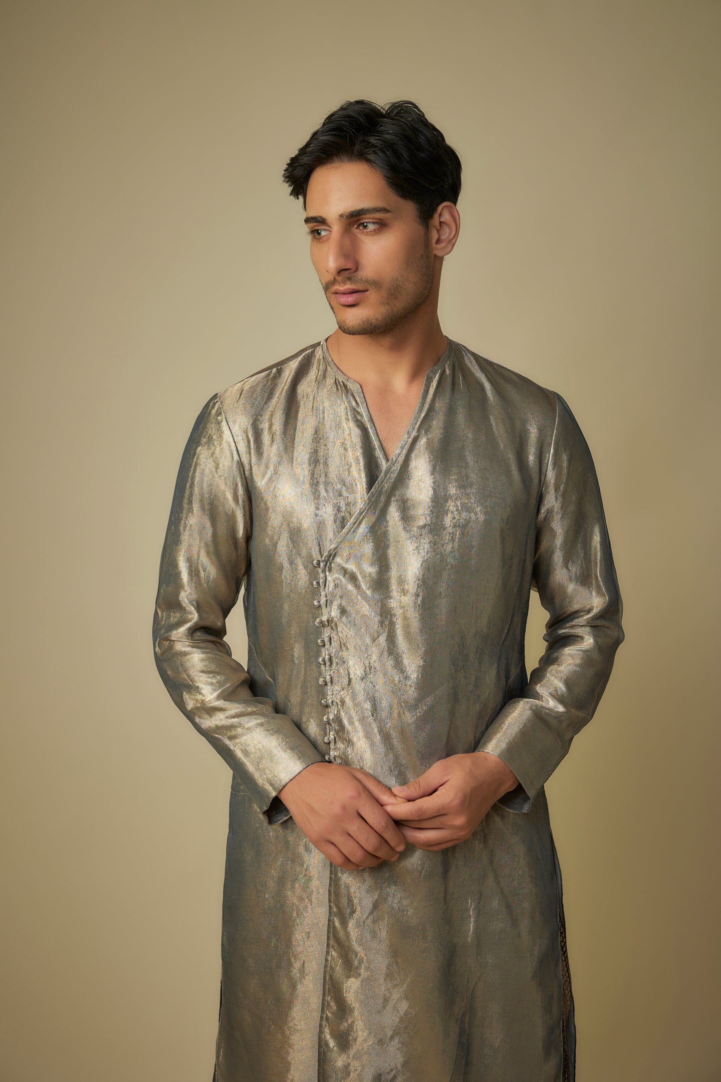 Featuring Black Tissue Angrakha With Black Jacquard Dhoti.