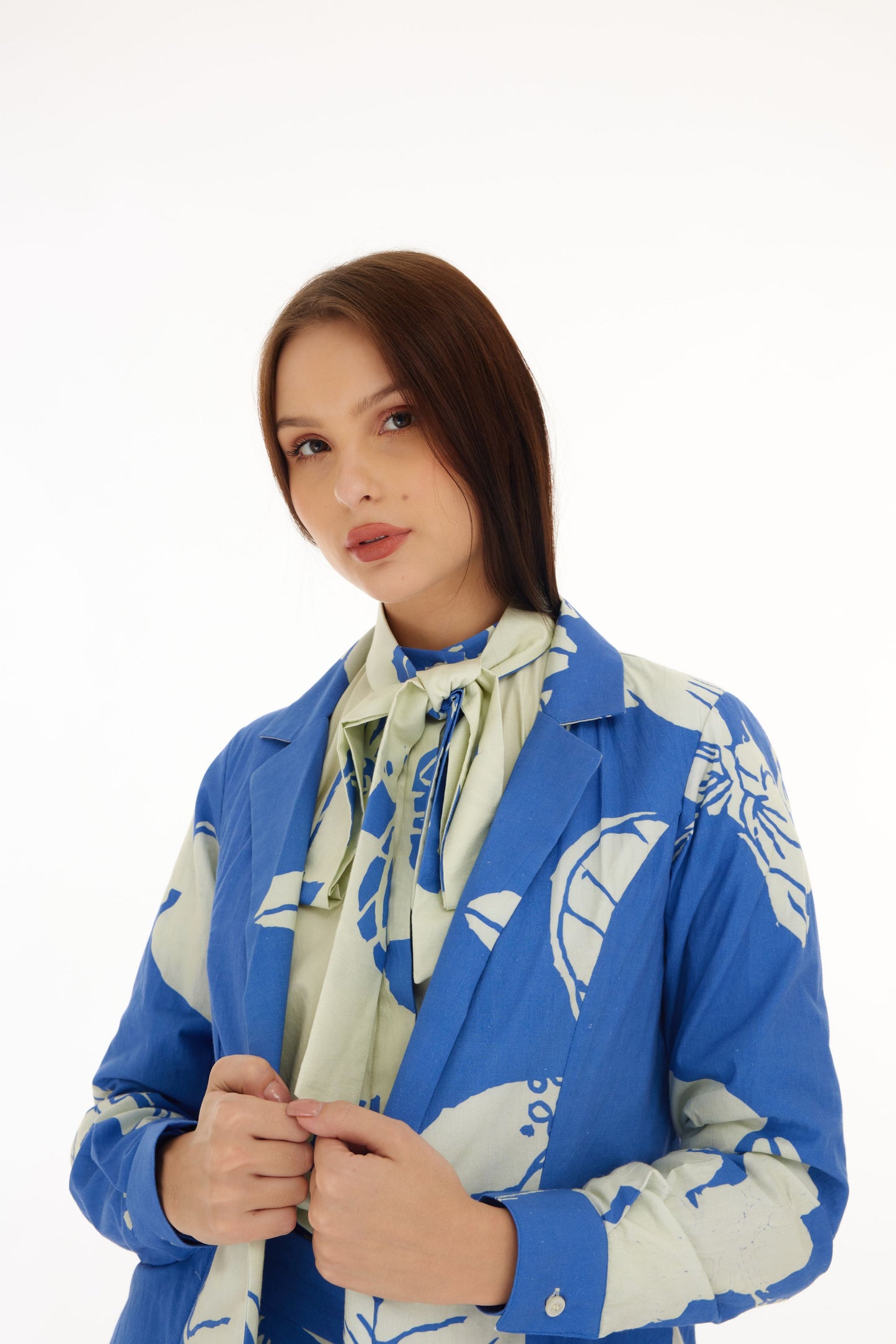Blue And White Floral Cape Based On Poplin Cotton Features Classic Floral Motifs.