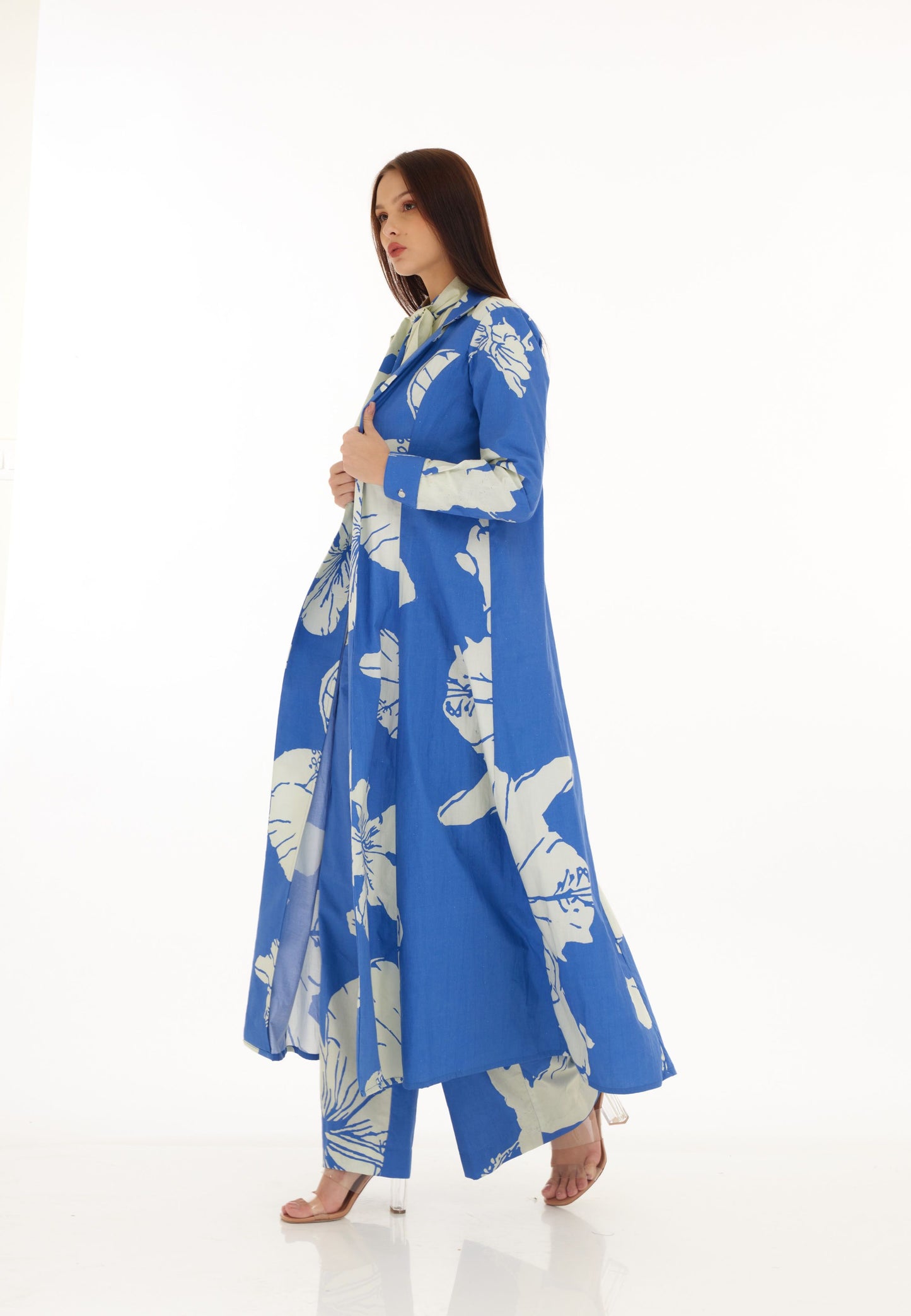 BLUE AND WHITE FLORAL CAPE