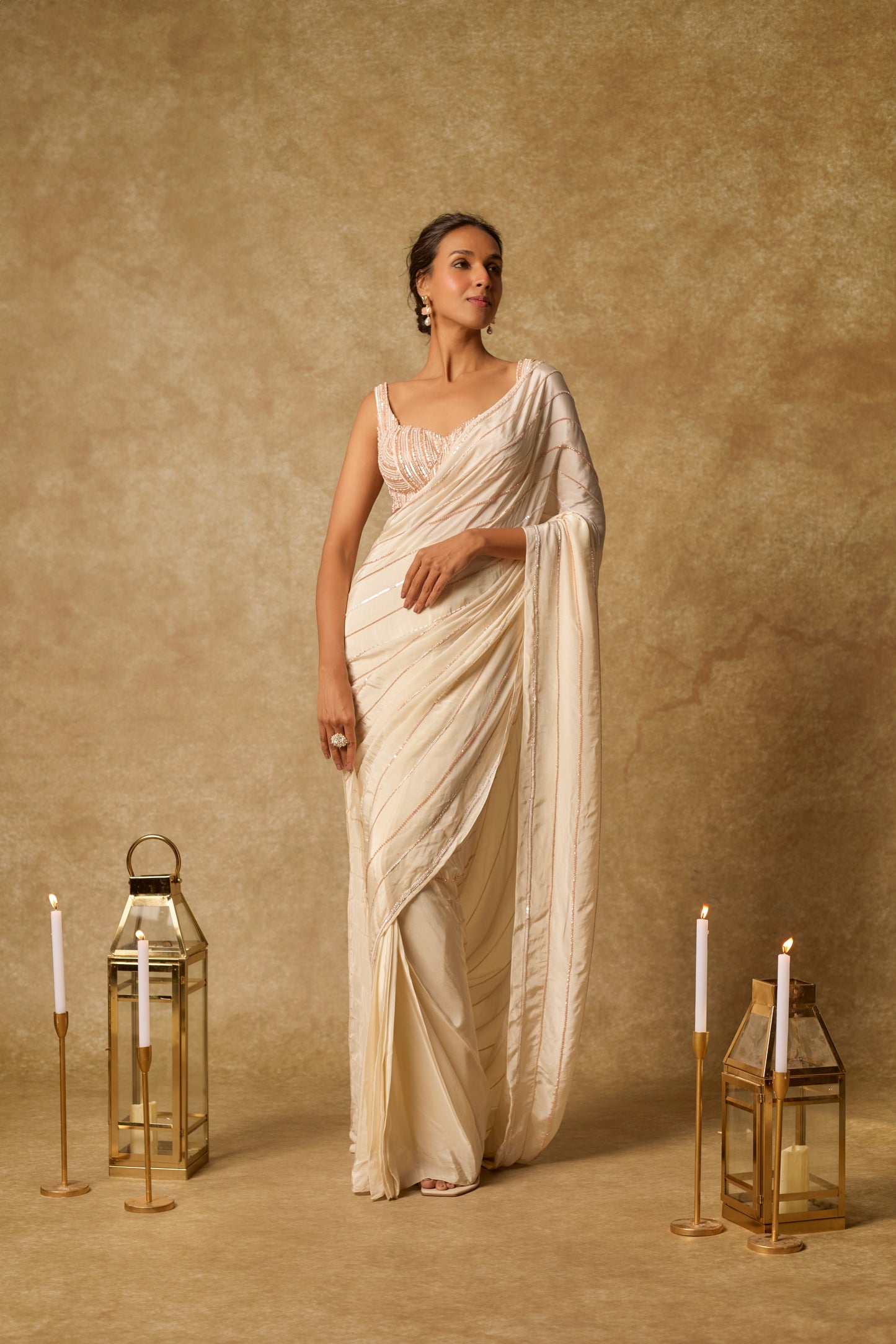 Featuring Butter Yellow Heavy Embroidered Saree In Natural Crepe With Fully Embroidered Blouse Dori In Modal Satin.