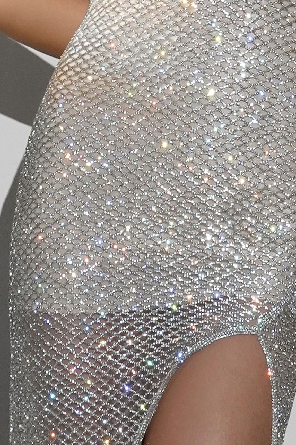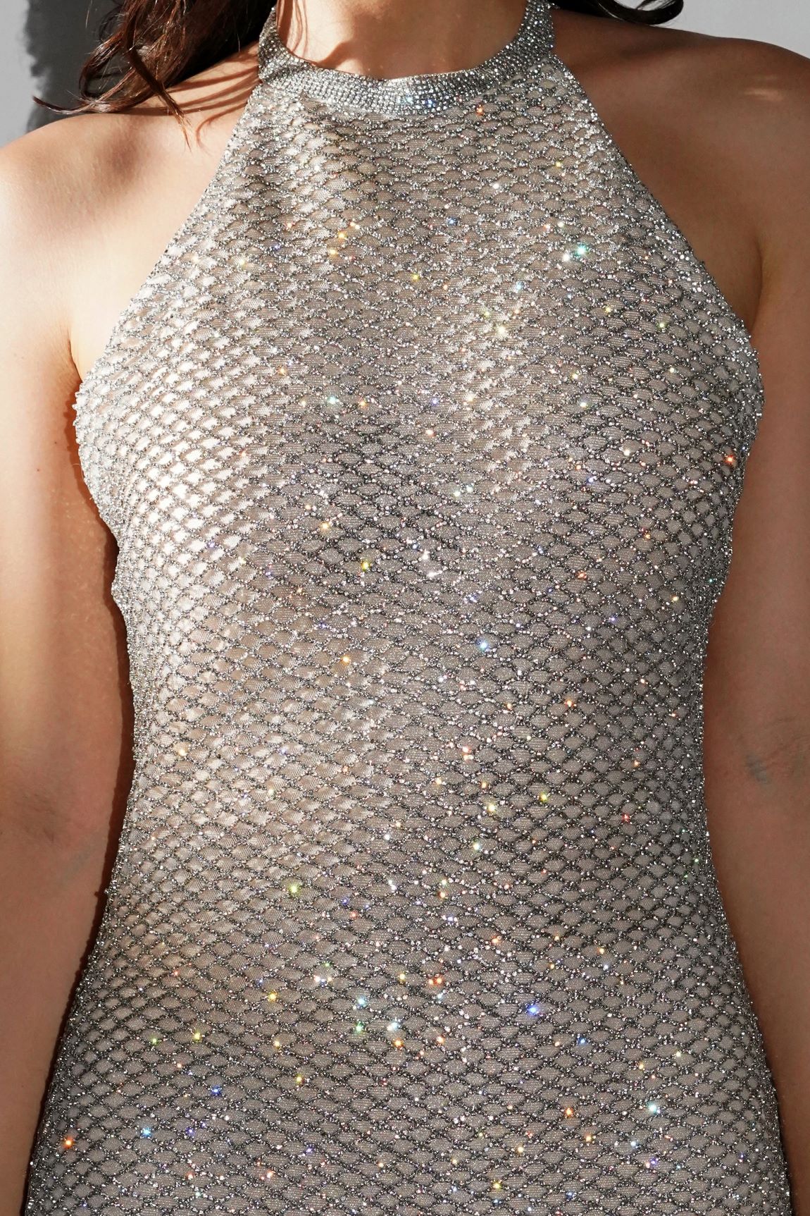 CELESTE SILVER RHINESTONE EMBELLISHED MAXI DRESS