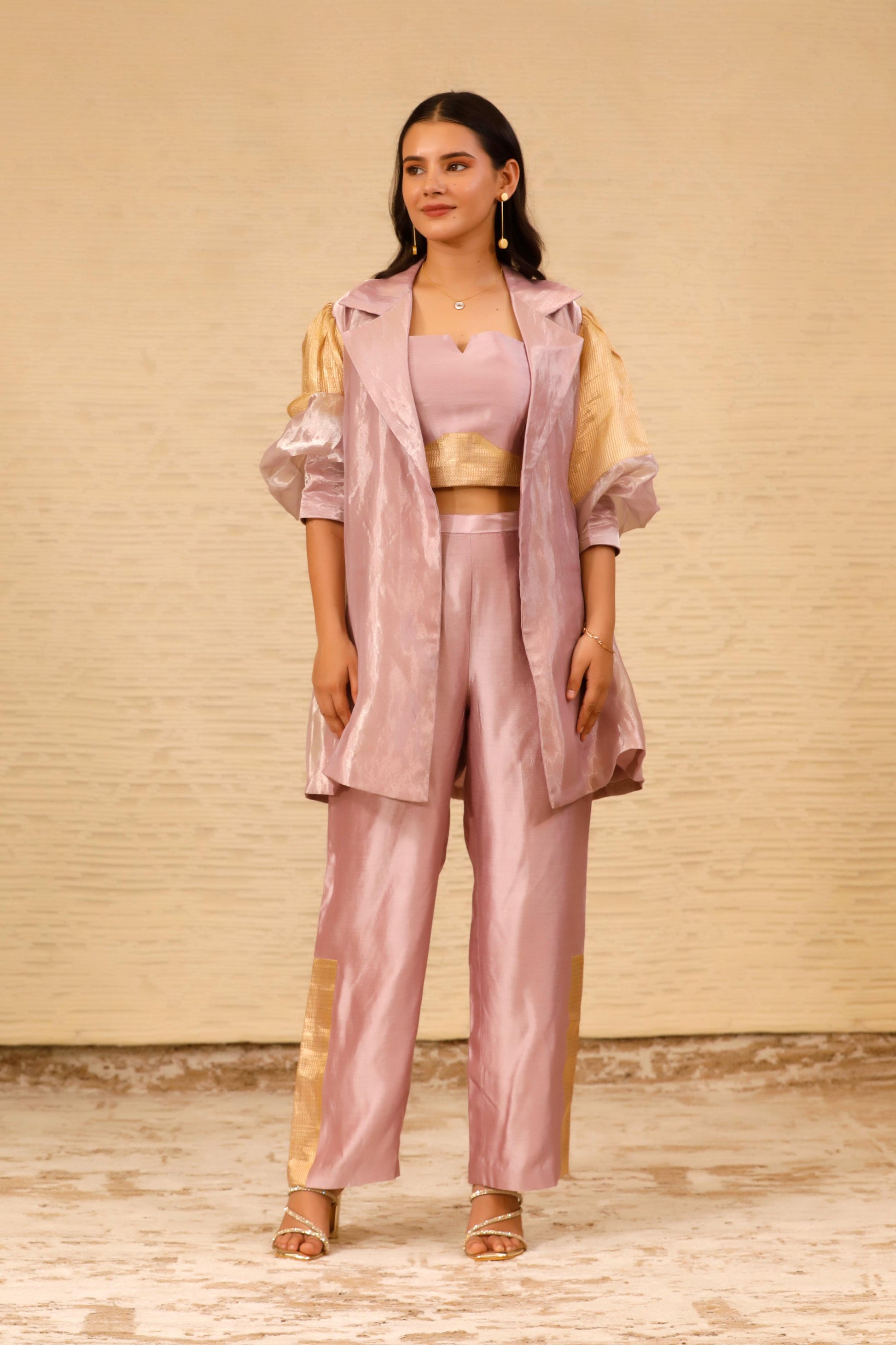 CHAMAK CROP BLOUSE AND TROUSER WITH COAT