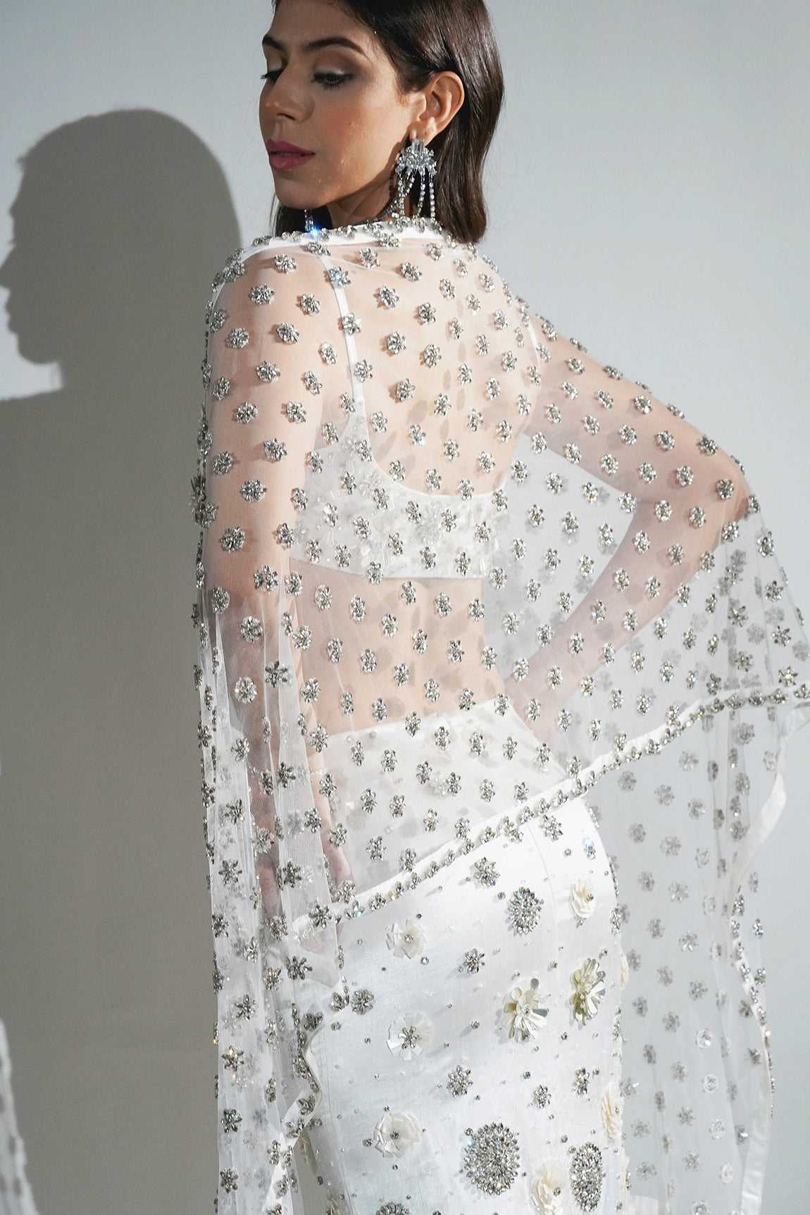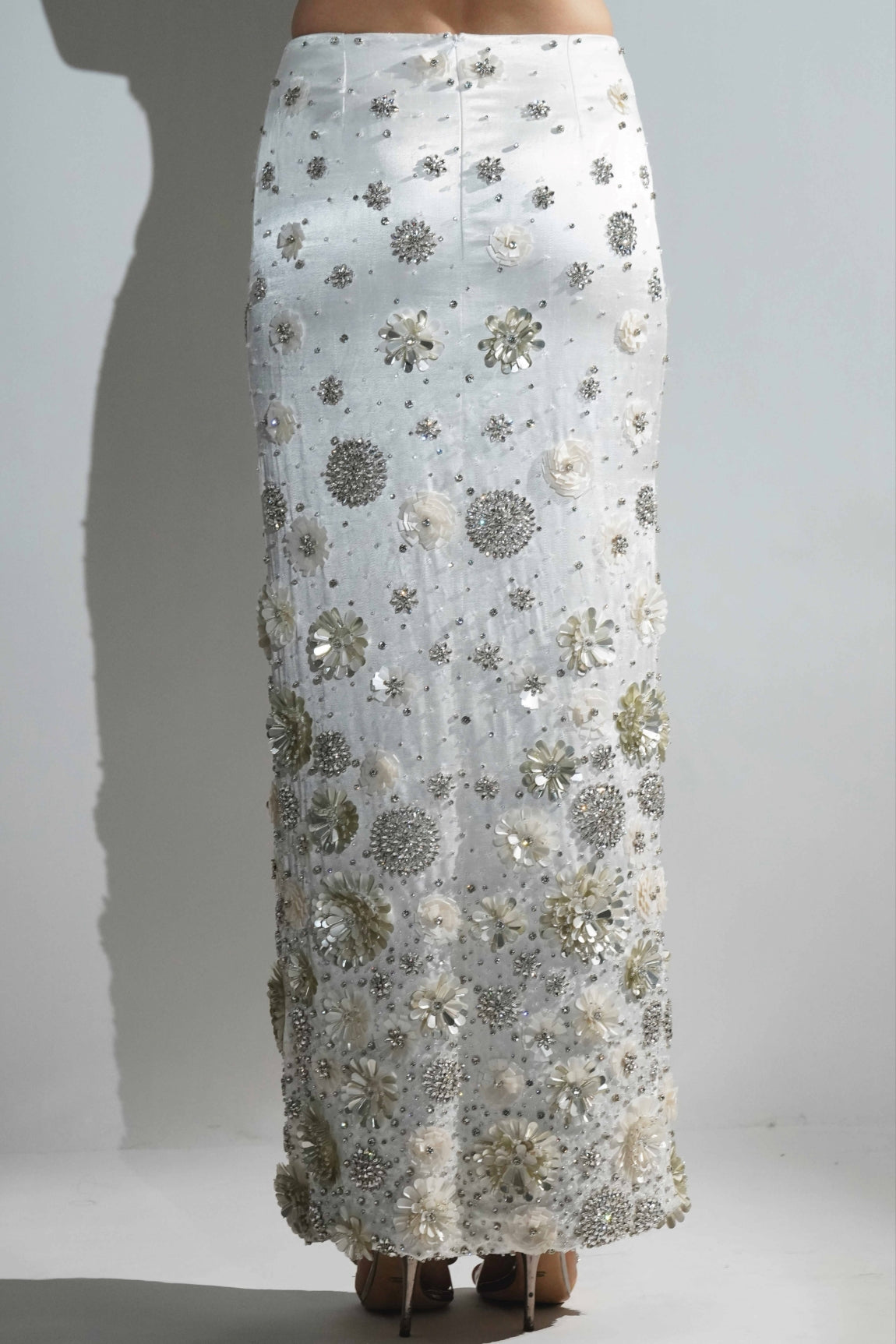 CHARLOTTE WHITE FLORAL SEQUIN EMBELLISHED MAXI SKIRT SET