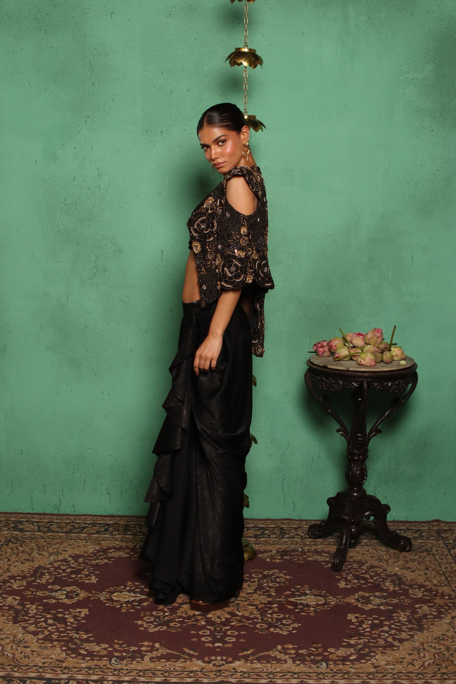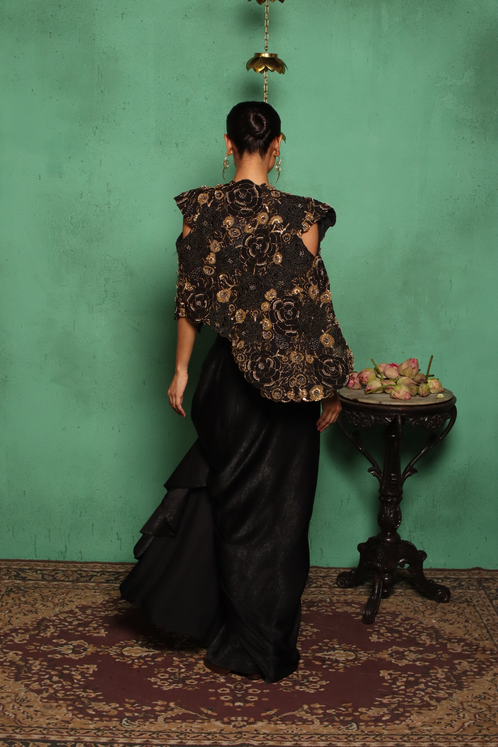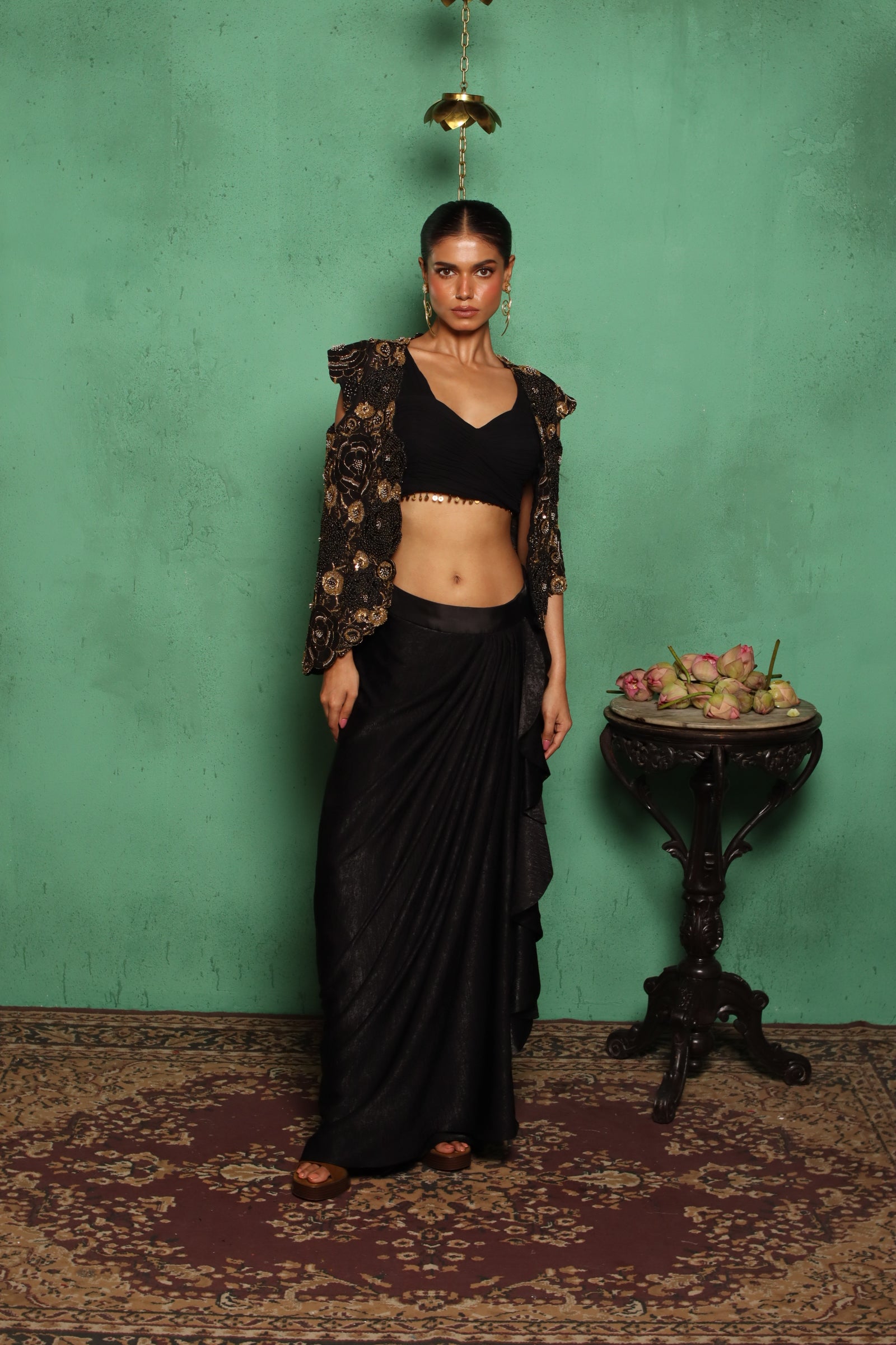 Drama Meets Delicacy! This High-Low Embroidered Jacket And Ruffle Drape Skirt Set Is Perfect For Those Who Dare To Be Different.