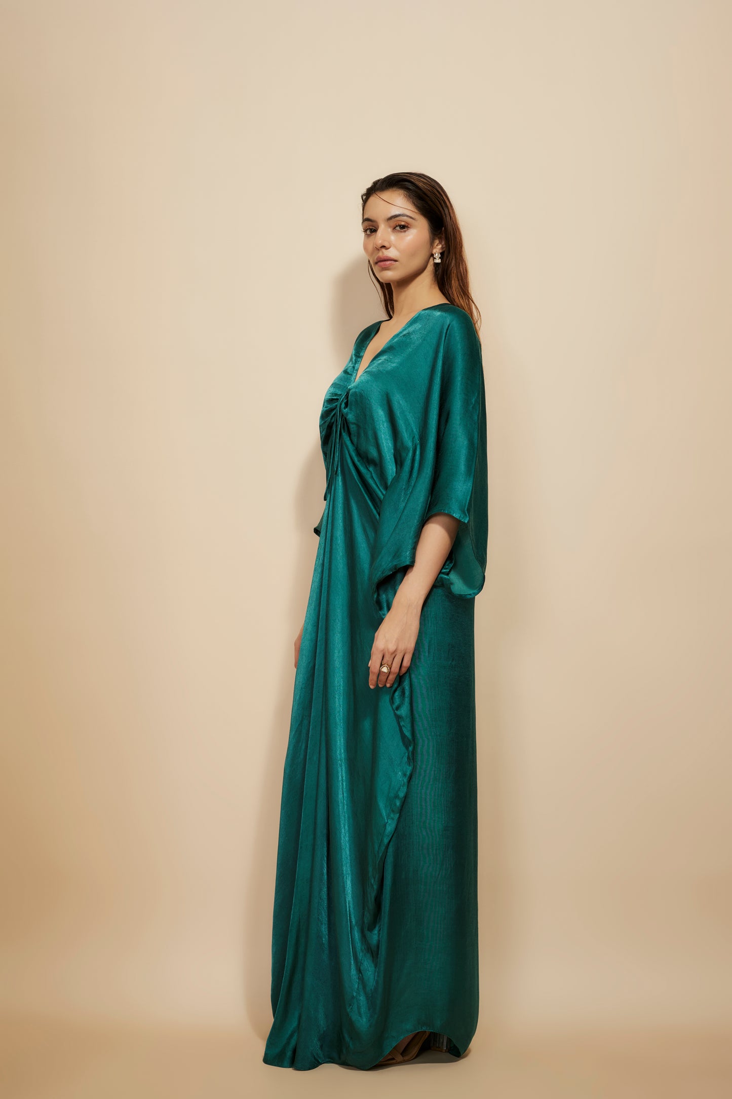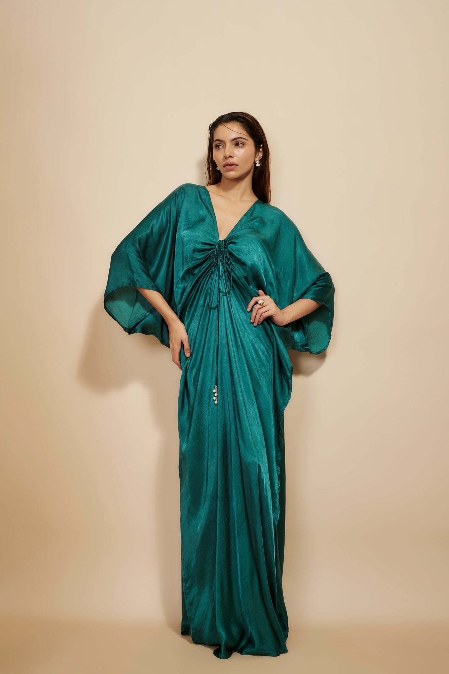Featuring Dark Green Kaftan In Modal Satin.