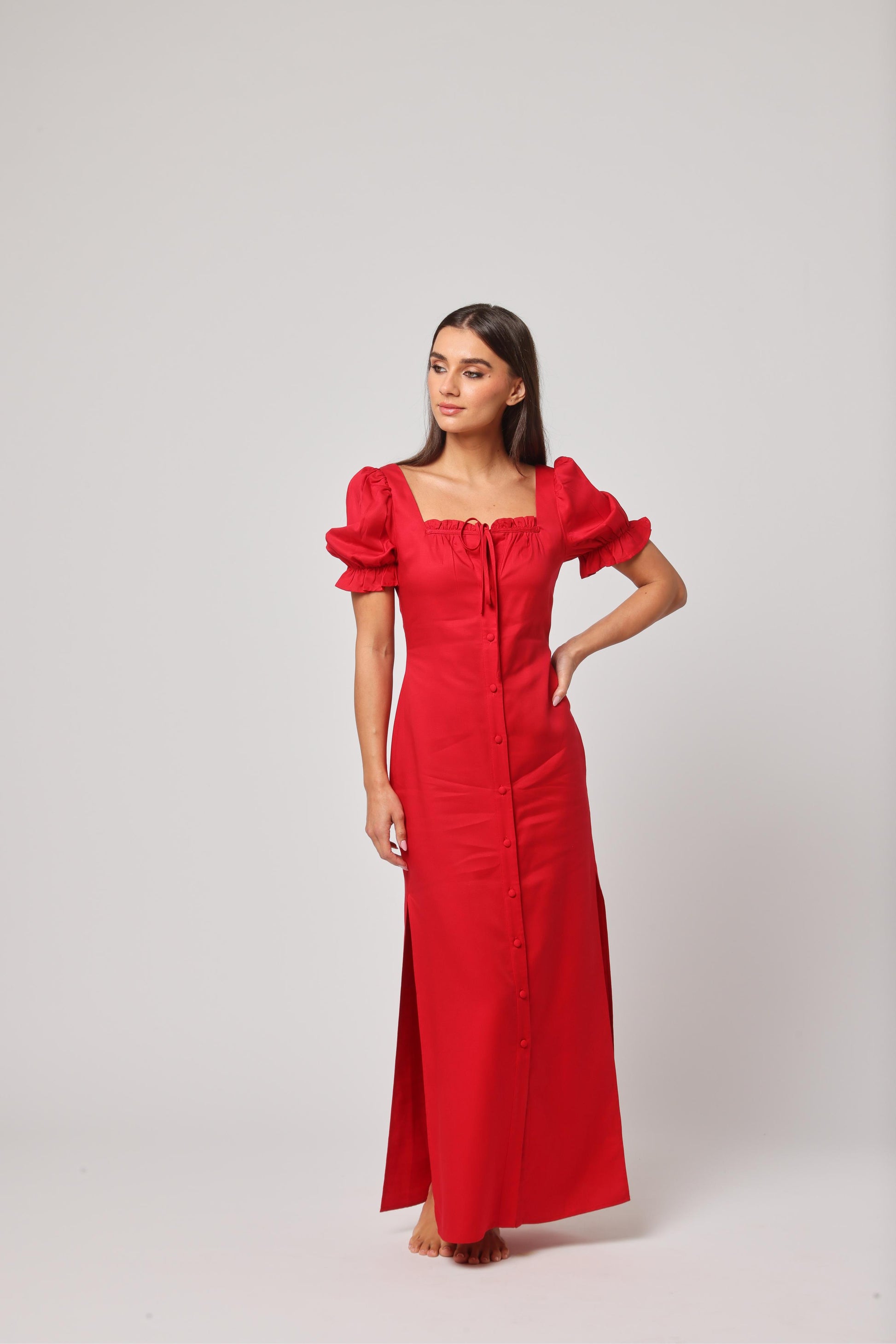 Timeless, Alluring, And Effortlessly Elegant, The Dilruba Set Is Designed To Capture Hearts. Crafted From A Premium Linen Blend, It Balances Softness With Structure, Draping Beautifully To Enhance The Feminine Silhouette. The Vibrant Red Hue Exudes Confidence And Passion, Making It A Striking Yet Sophisticated Statement.