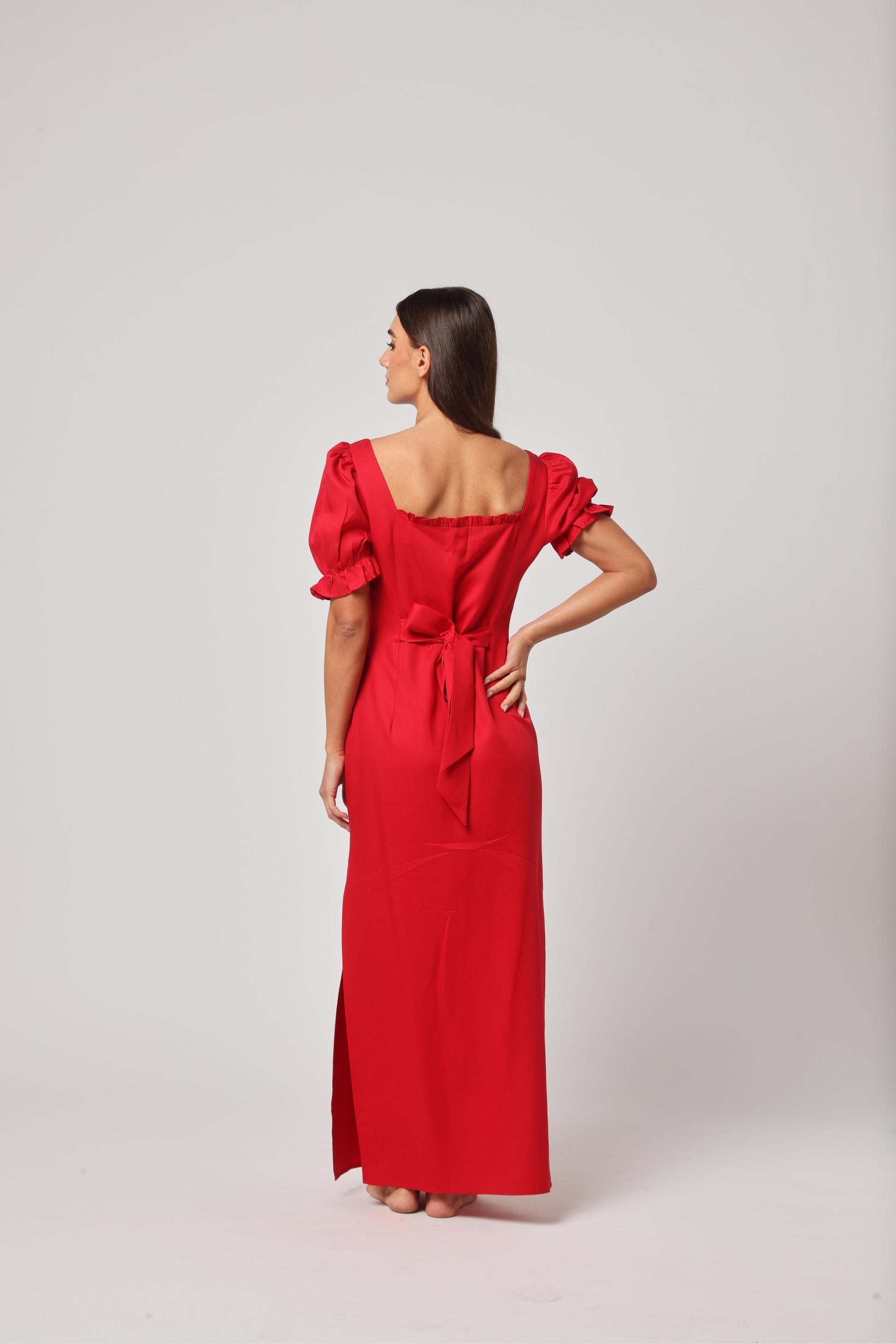 The Dilruba Set Features A Fitted Bodice With A Flowing Skirt That Gracefully Skims The Body, Elongating The Frame While Ensuring Comfort And Ease Of Movement. The Button-Down Front Adds A Vintage-Inspired Charm, Allowing For Adjustable Styling. Romantic Puff Sleeves With Delicate Ruching Bring A Soft, Ethereal Feel, While The Square Neckline With A Drawstring Detail Frames The Collarbones Beautifully.