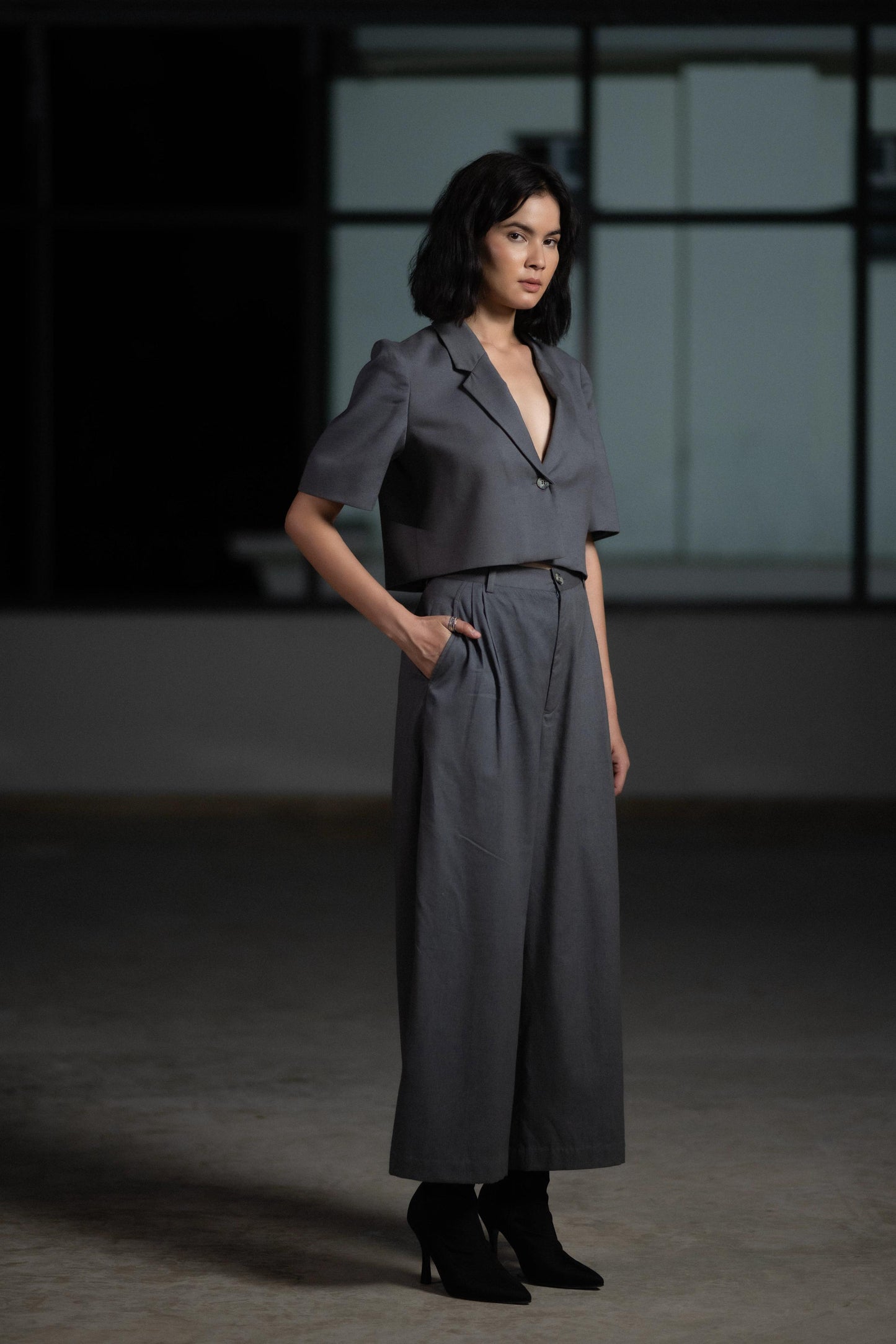 Unleash Your Bold Style With Our Versatile Crop Style Blazer And Pants Set. A Wardrobe Powerhouse That Seamlessly Offer Comfort And Elegance. Elevate Your Fashion Game With The Embodiment Of Sleek Sophistication, Tailored For Those Who Dare To Redefine The Boundaries Of Classic Attire.