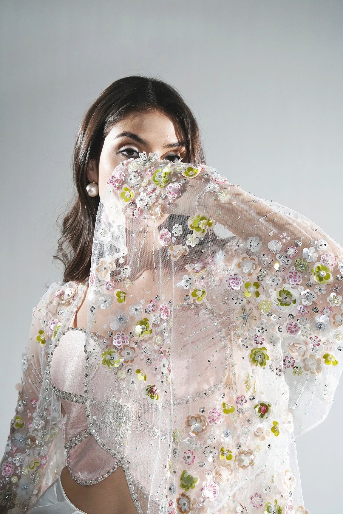 Introducing The Eden 3D Floral Embroidery Cape, Featuring Intricate 3D Sequins And Glass Crystals. Ideal For Pairing With The Eden Flower Top And Starlet Drape Skirt For A Stunning Look, Or For Adding A Touch Of Magic To Any Event.
