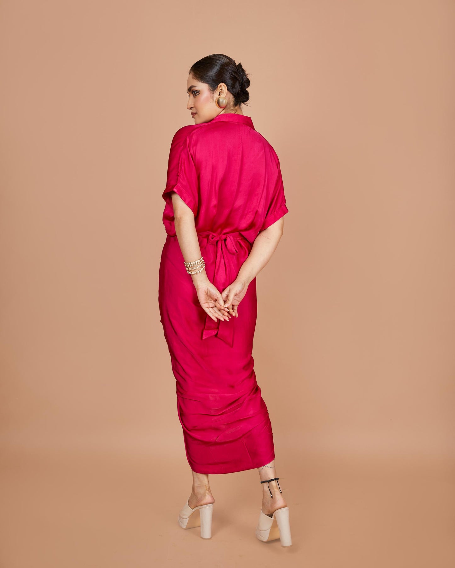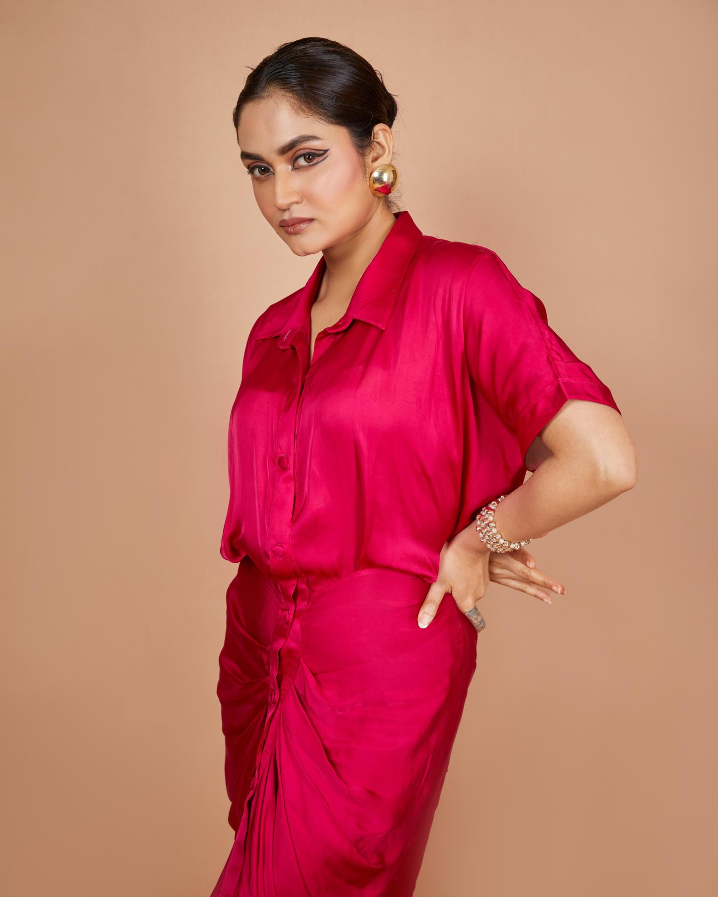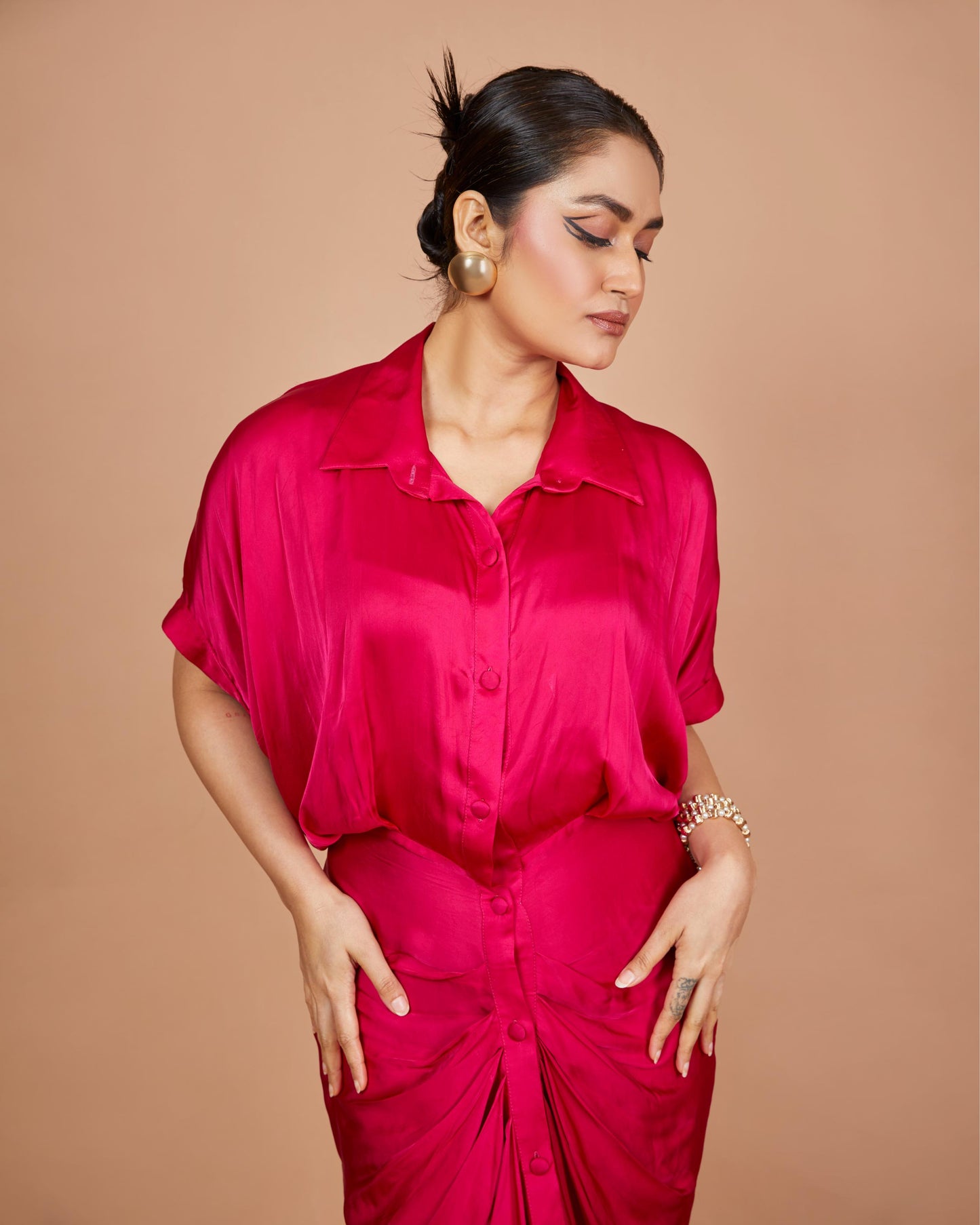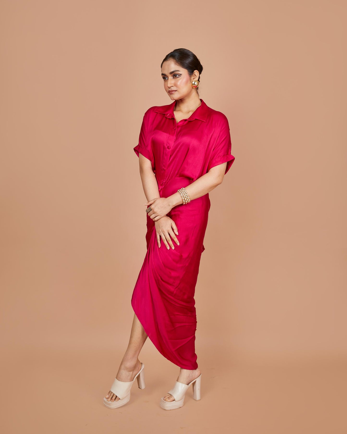 Pink Draped Dress In Satin Perfect For Brunches, Sundowners, And Evenings!