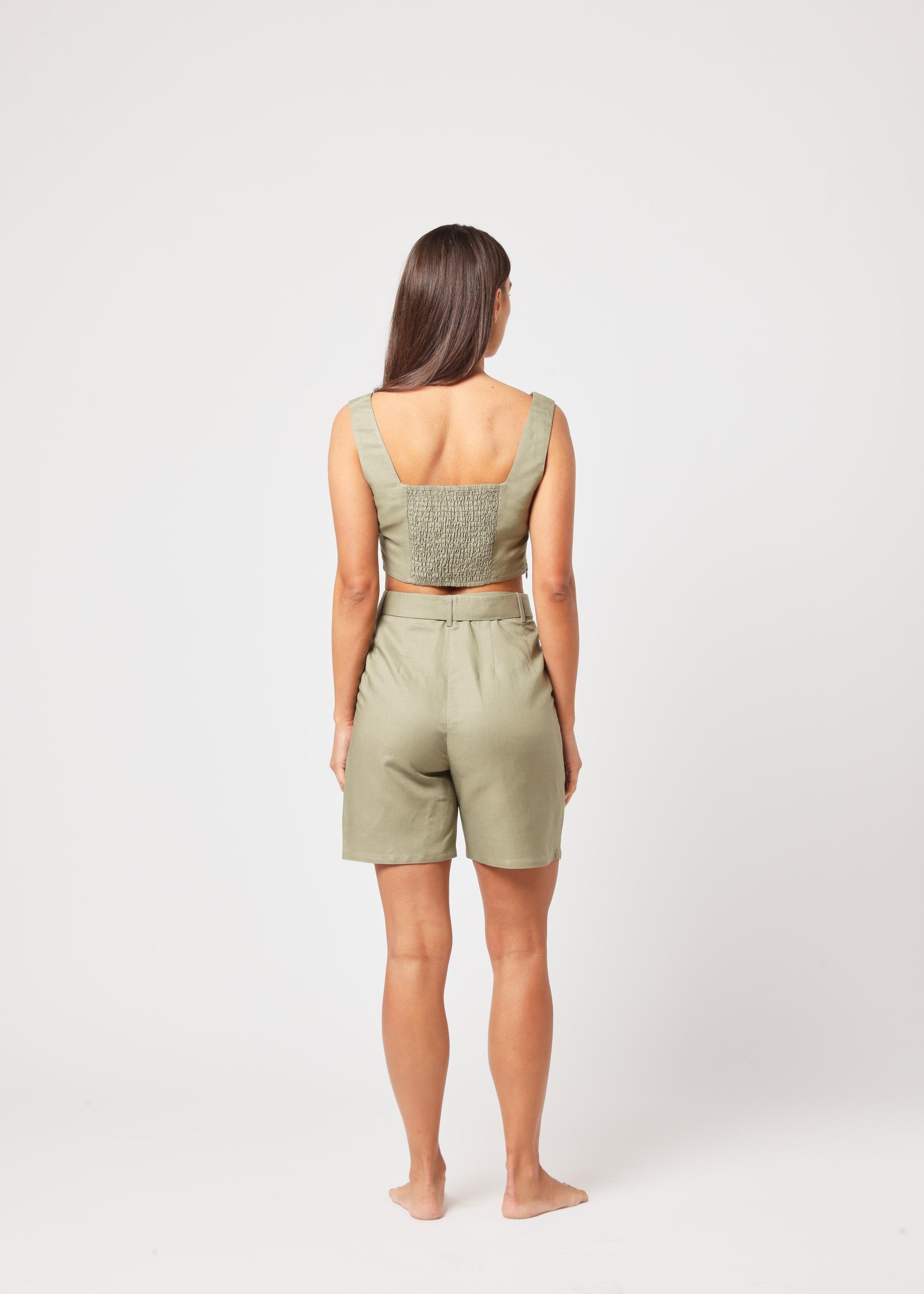 Designed For The Woman Who Embraces Grace With Confidence, Fiza Is A Harmonious Blend Of Structure And Softness. Crafted In Breathable, Sustainable Linen, This Cropped Top Redefines Femininity With Subtle Sophistication.