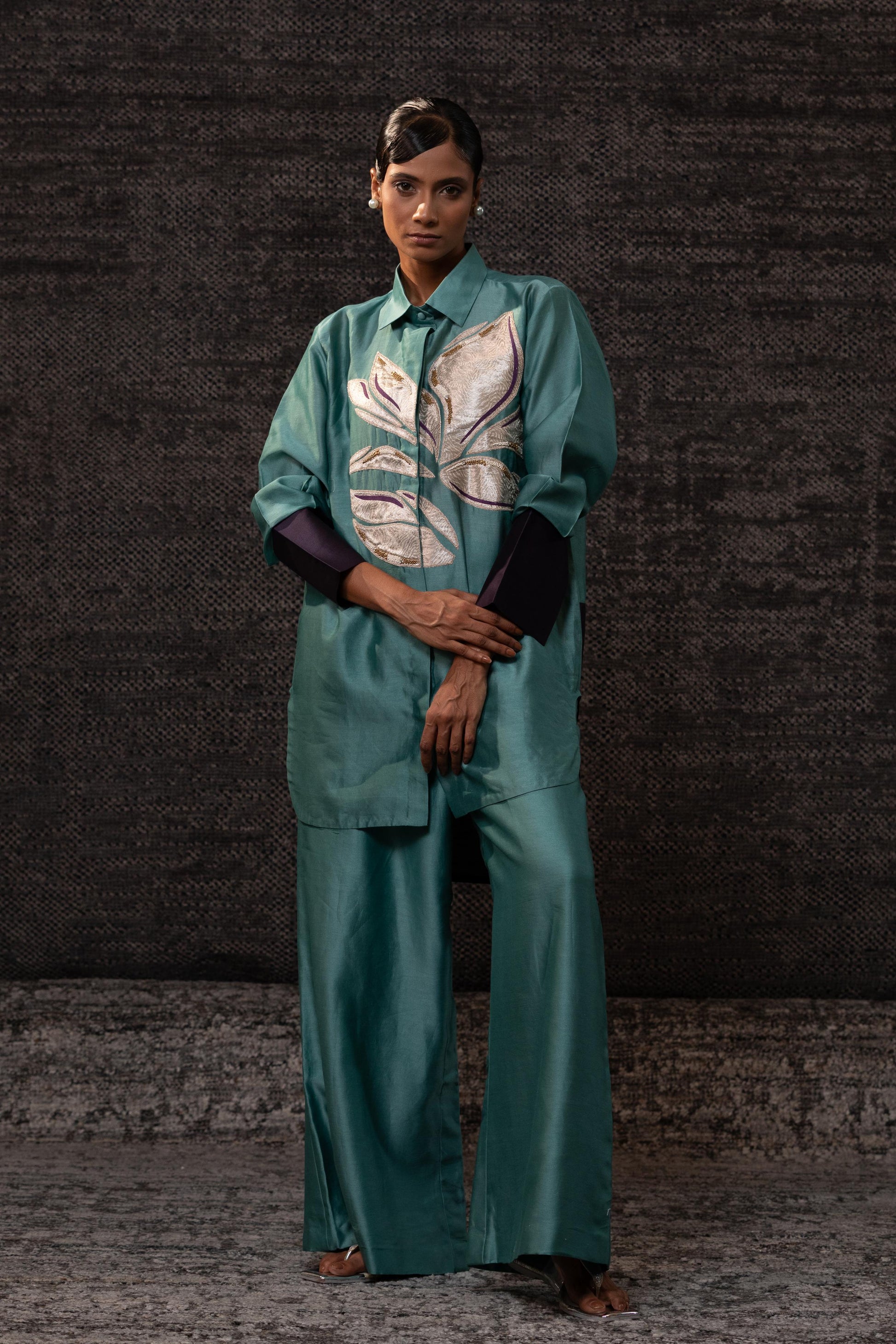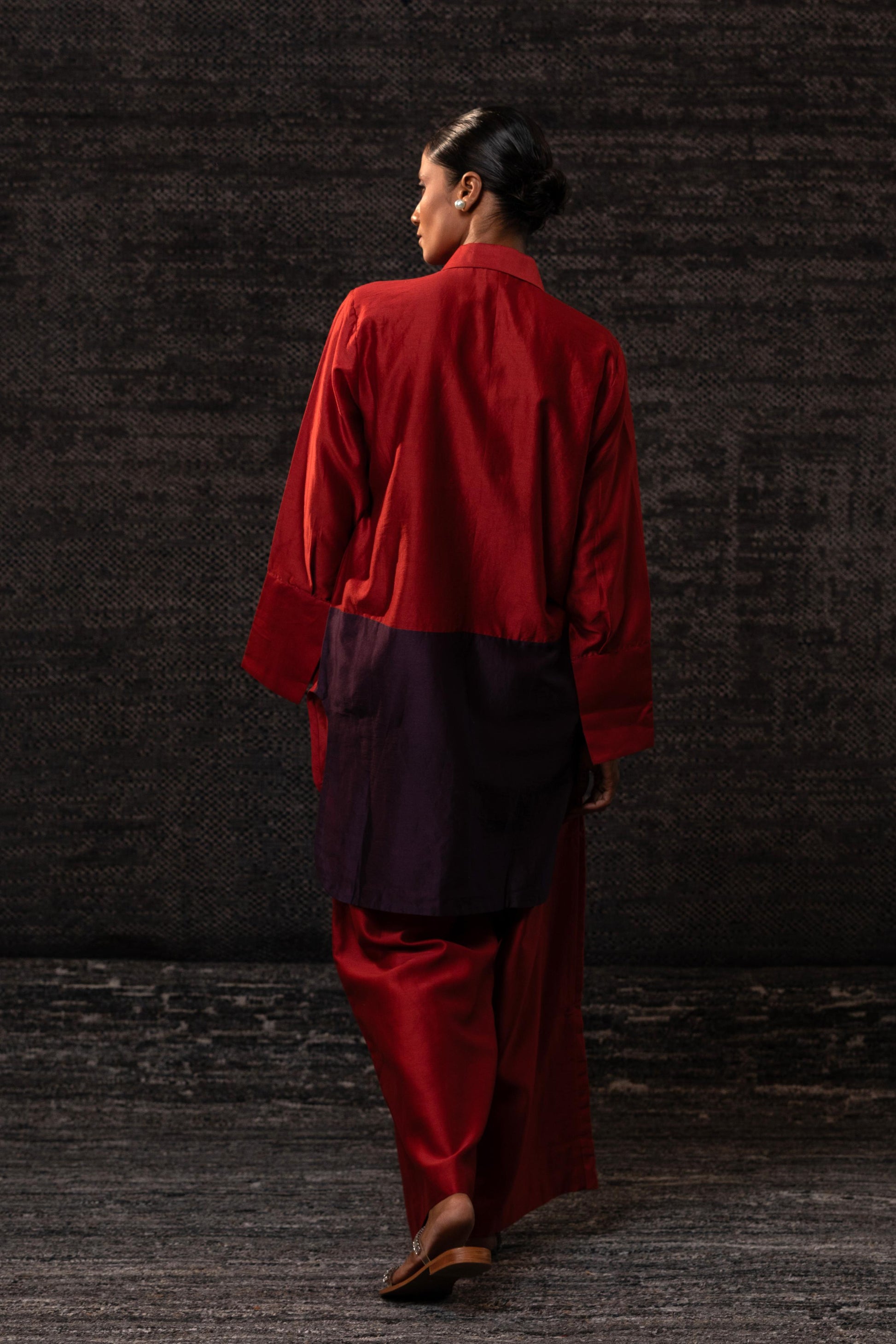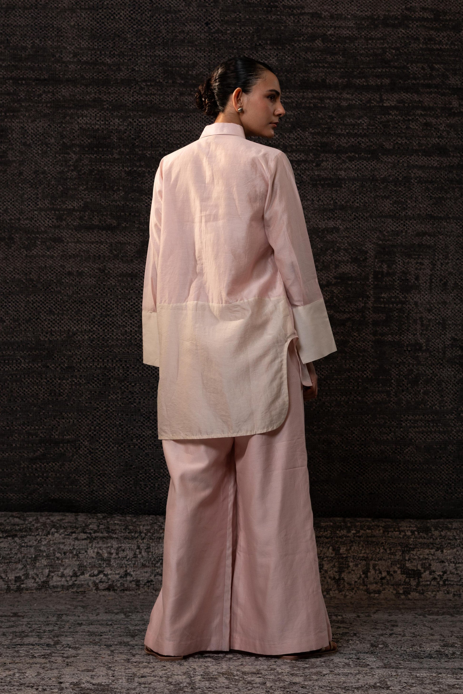 A Drop-Shoulder Shirt With Relaxed Sleeves And An Oversized Open Cuff, Cut With A High-Low Hem.