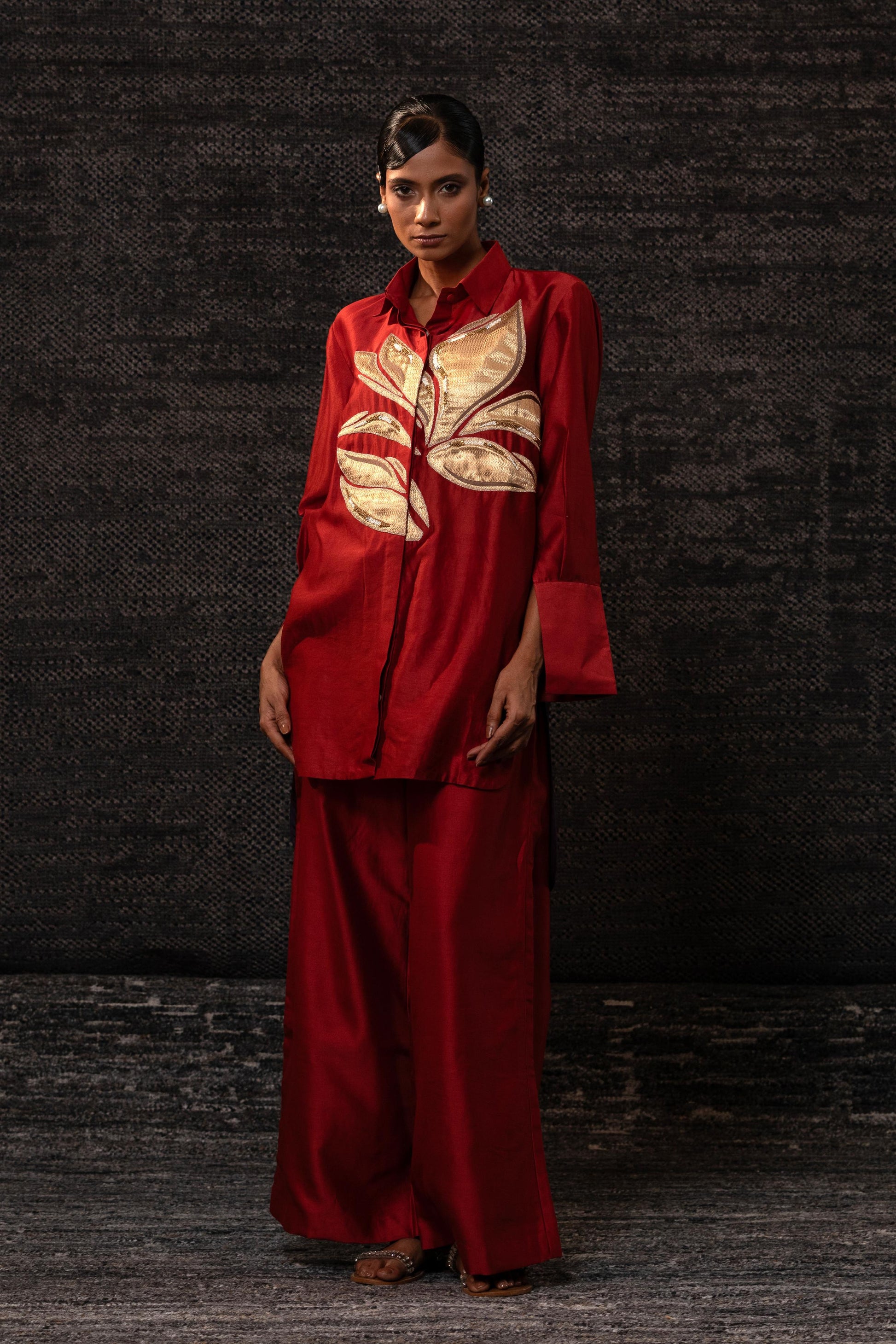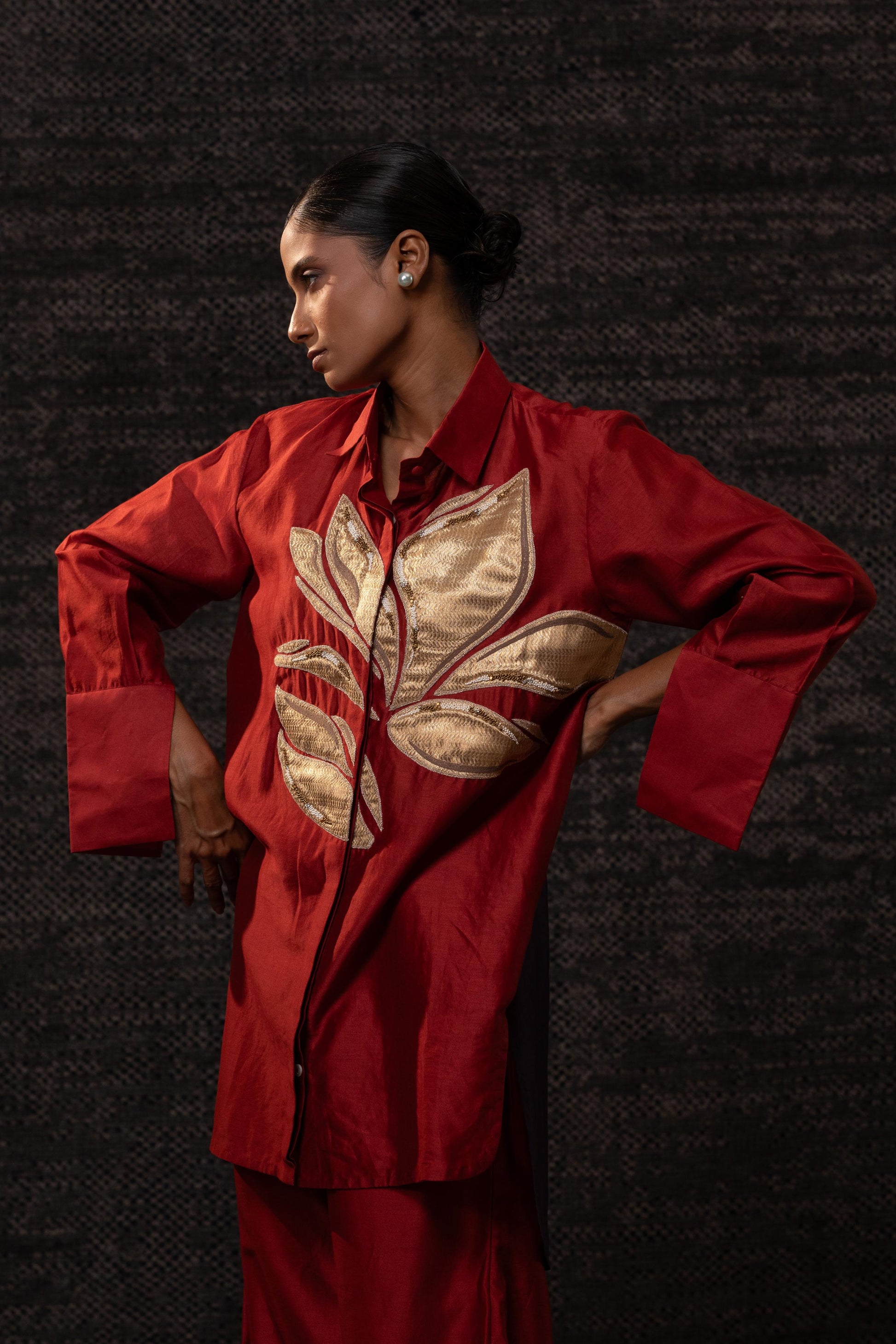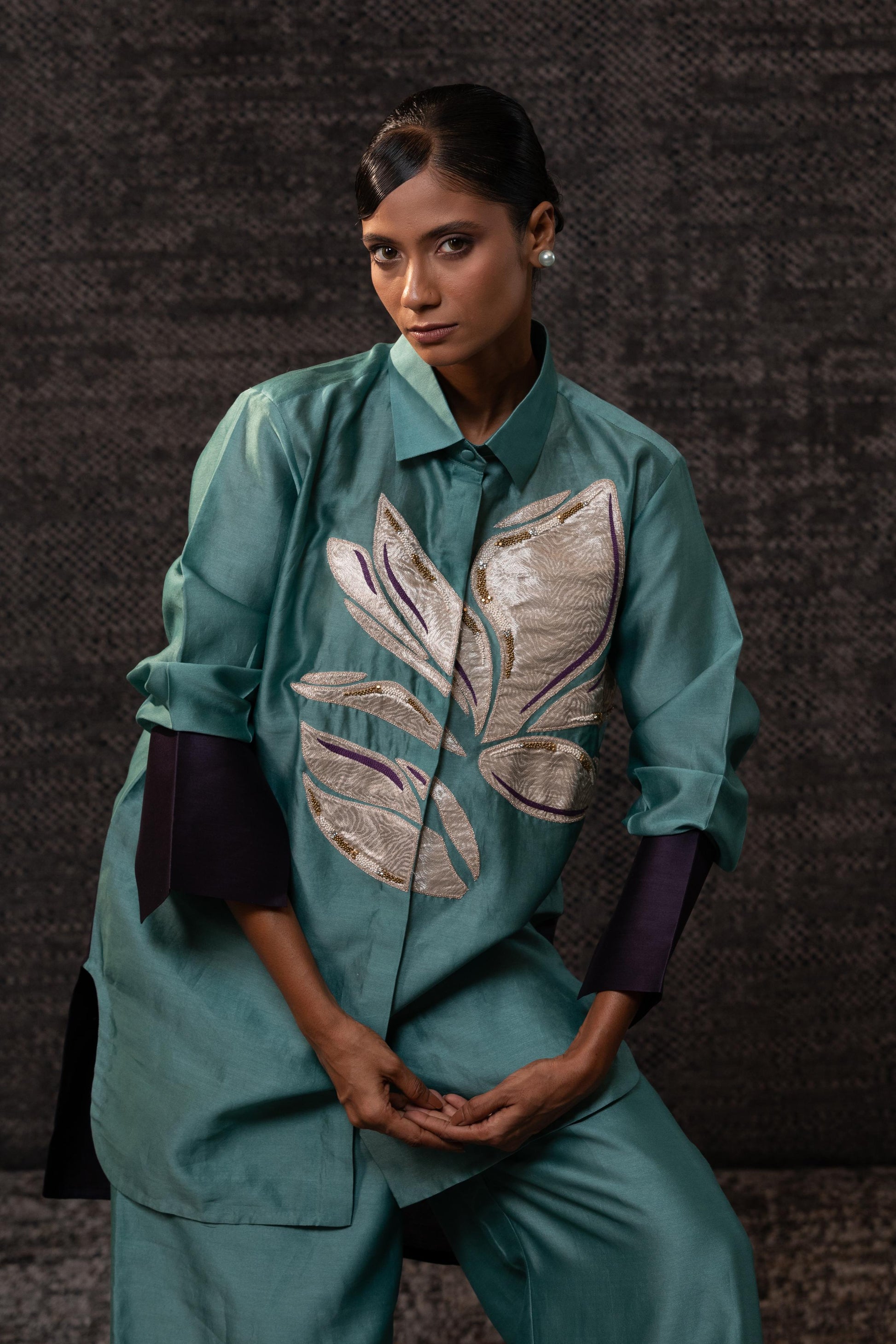 A Drop-Shoulder Shirt With Relaxed Sleeves And An Oversized Open Cuff, Cut With A High-Low Hem.