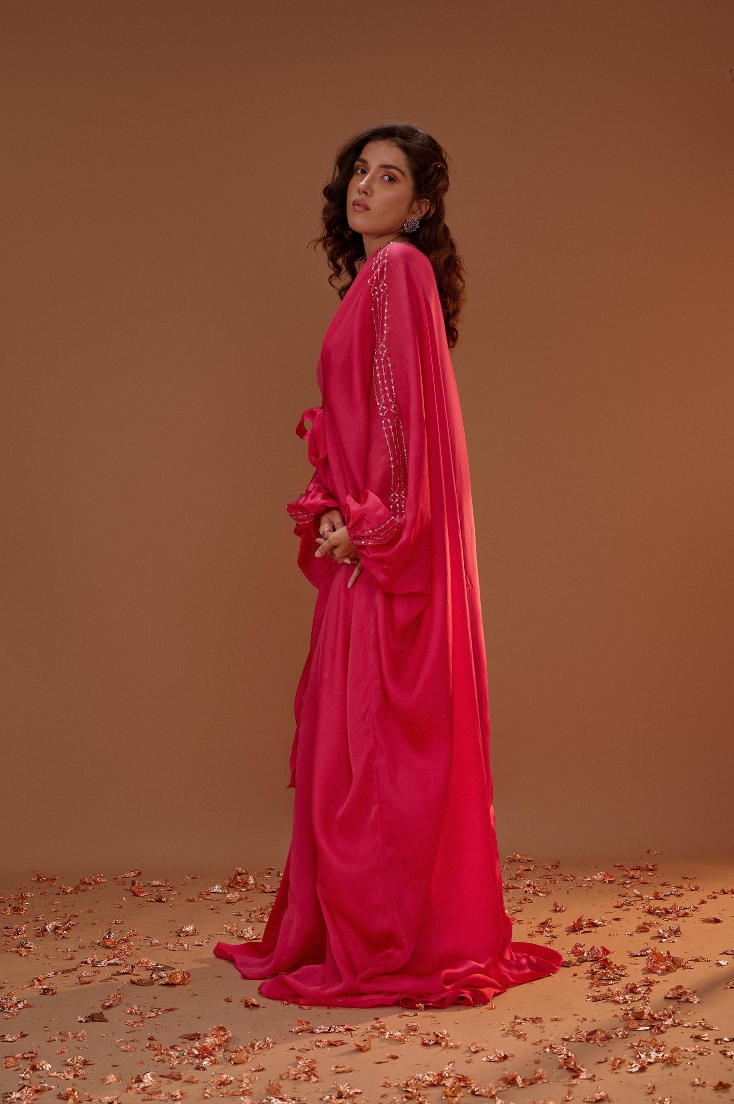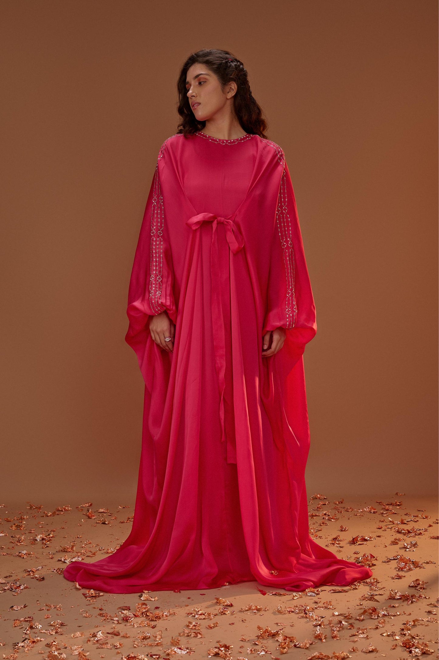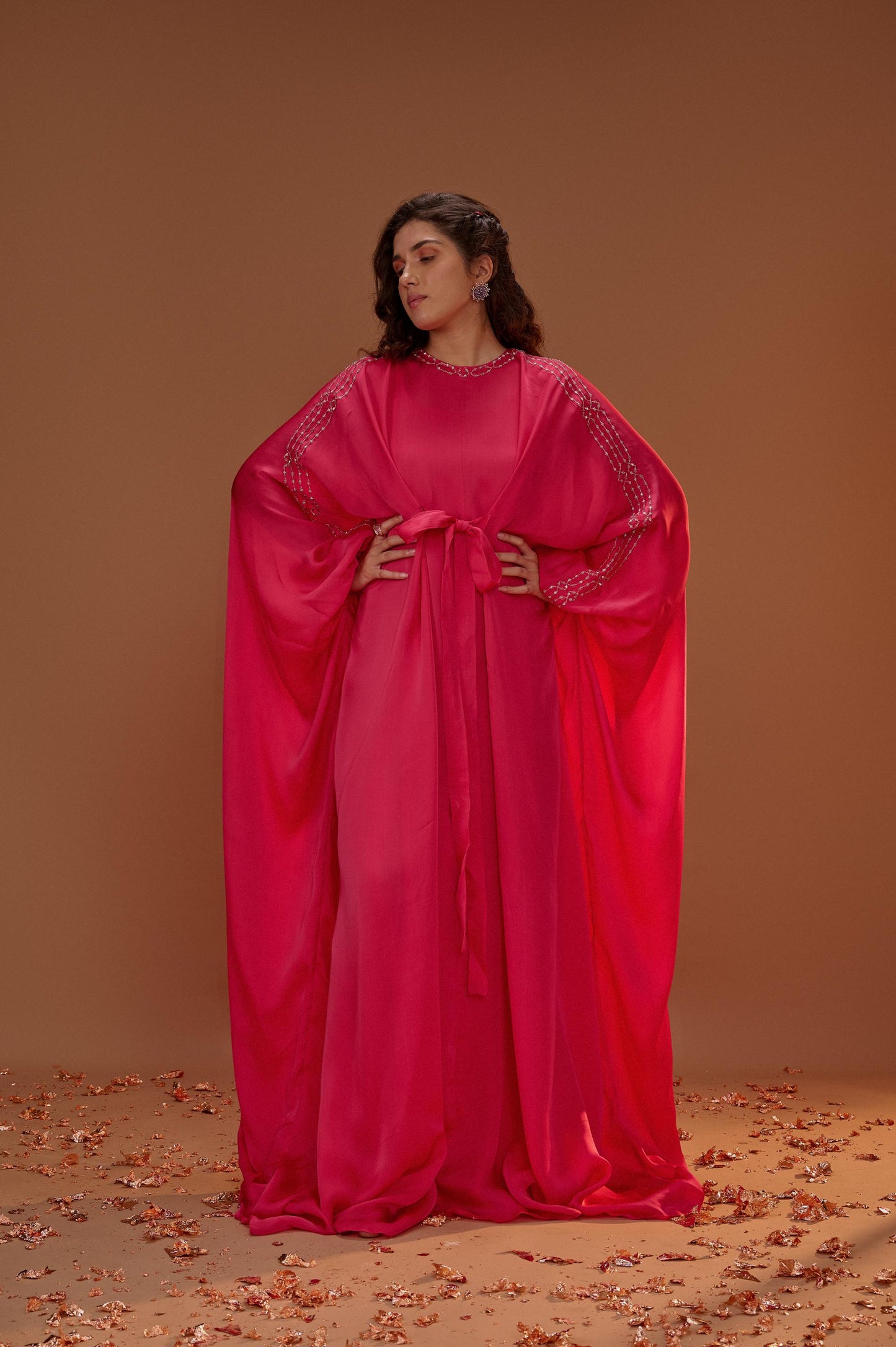 Introducing Hot Pink Kaftan in Satin Organza Base, Elevated with a Stylish Tie-Up. This Effortlessly Chic Piece Redefines Comfort and Style, Featuring the Luxurious Feel of Satin Organza. The Tie-Up Detail Adds a Playful Element, Creating a Statement Look. Immerse Yourself in the Allure of Hot Pink Elegance and Discover the Perfect Blend of Sophistication and Ease with Our Hot Pink Kaftan.
