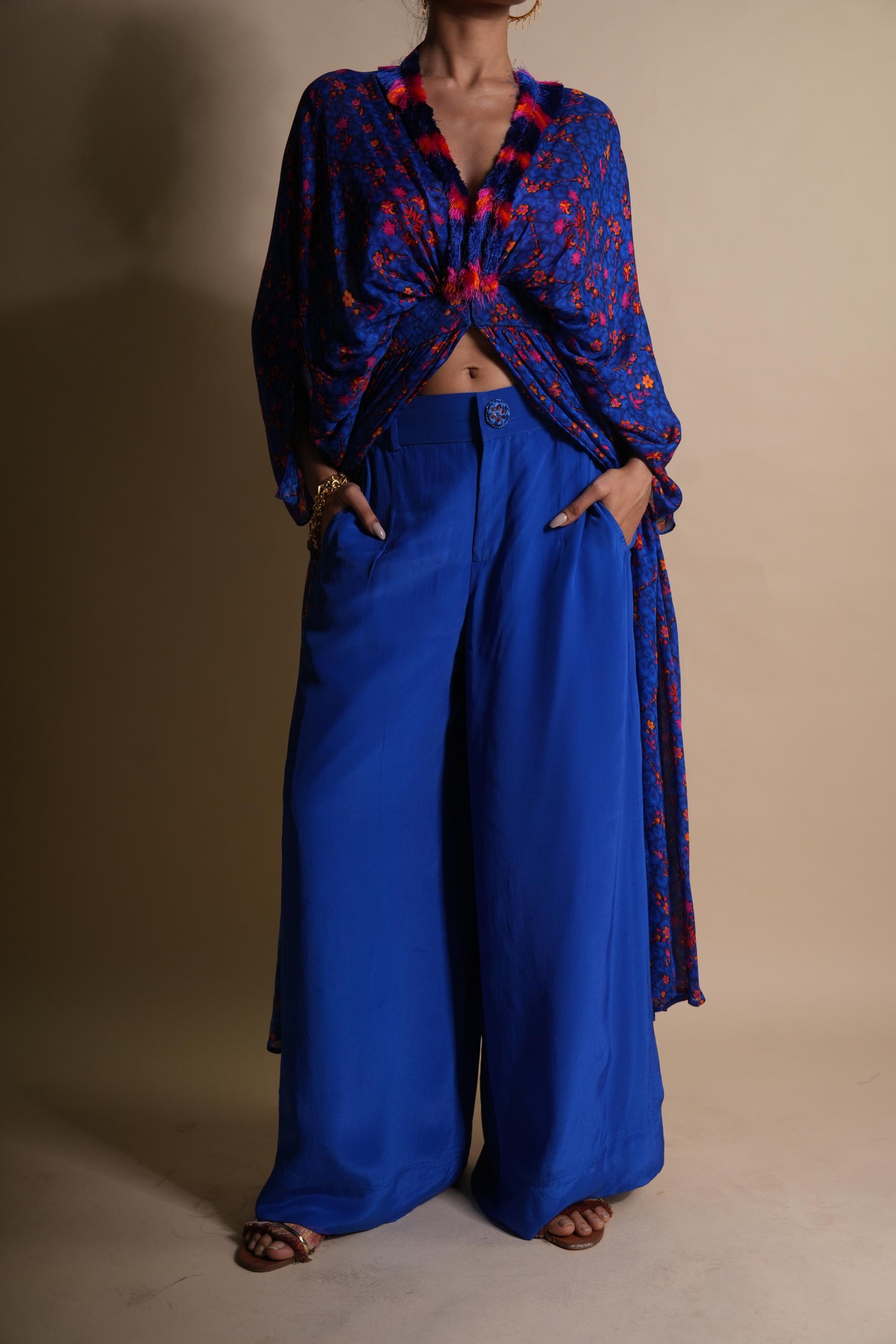 Breezy, Flowy, And Right On Trend. These Cobalt Blue Wide-Leg Pants Are Crafted In Soft Crepe For A Dreamy Drape And Finished With A Mirror-Embellished Button At The Front. With A Half-Elasticated Waistband And All The Summer Ease, They’re The Kind Of Pants You’ll Want To Live In — Perfect With Tanks, Shirts, Or Bikini Tops.