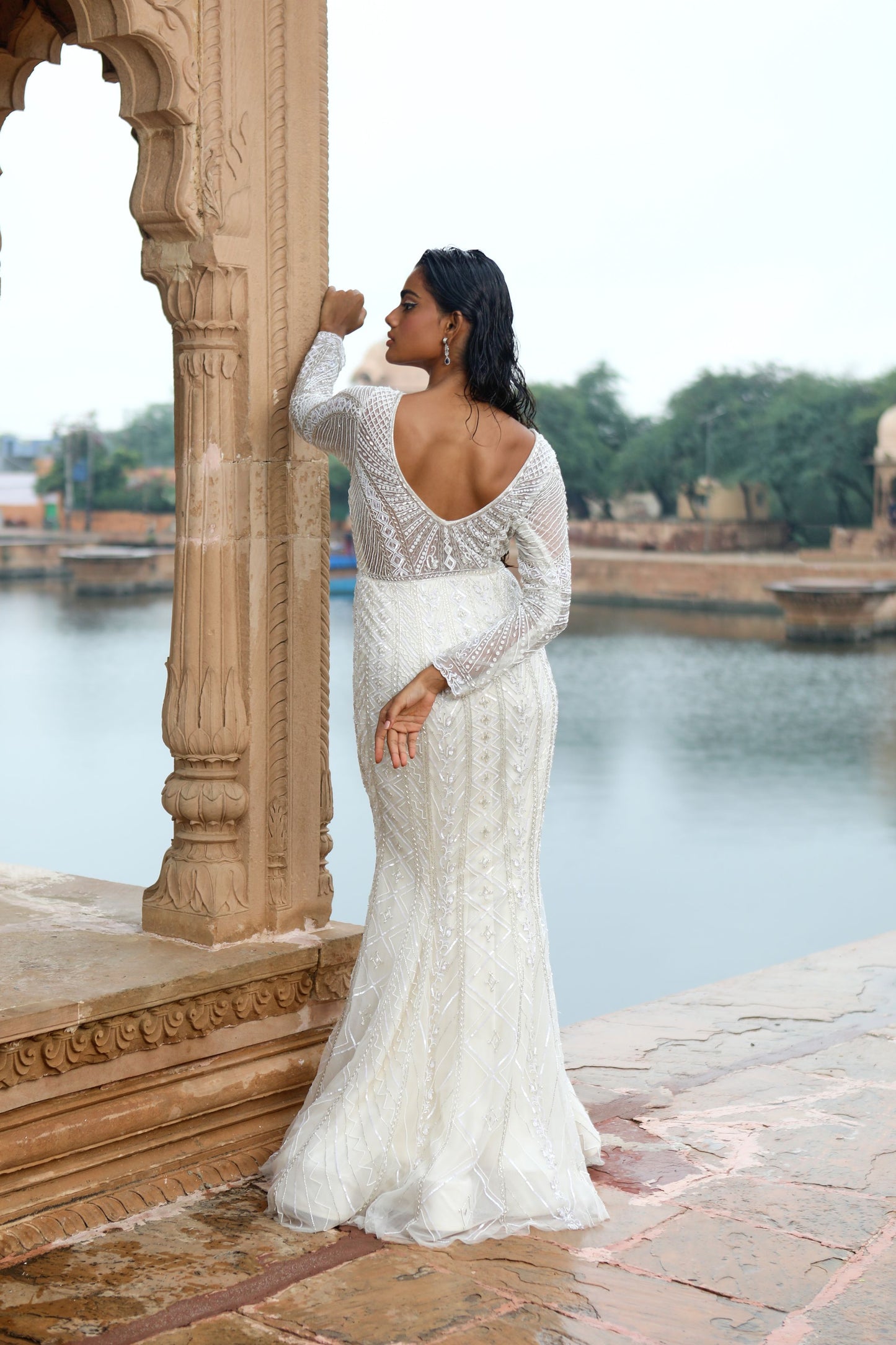 Crafted With Butterfly Net Fabric, This Ivory Gown Features Tone-On-Tone Embellishments That Create A Captivating And Glamorous Look. The Mermaid Silhouette Hugs Your Curves In All The Right Places, Accentuating Your Figure With Grace.