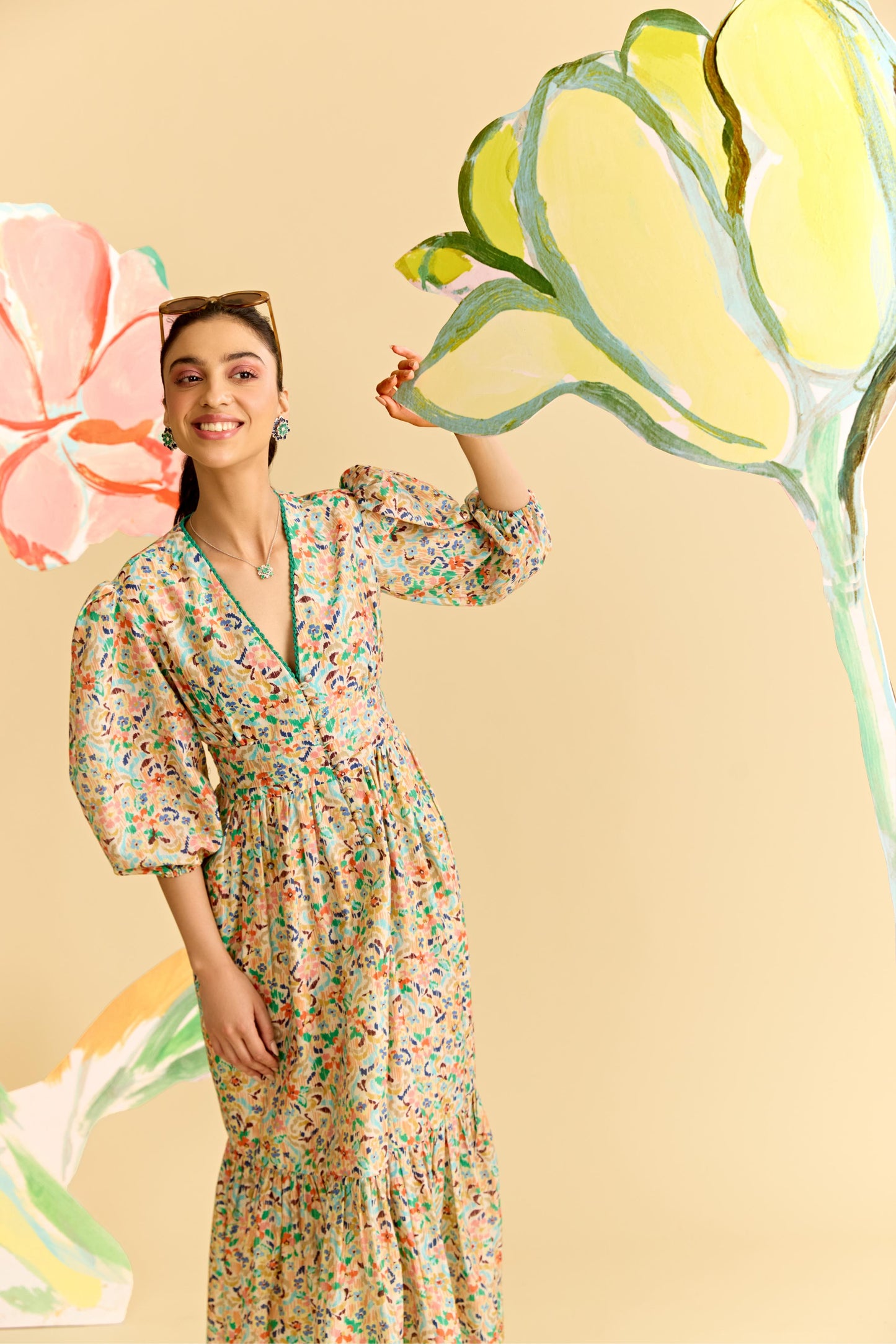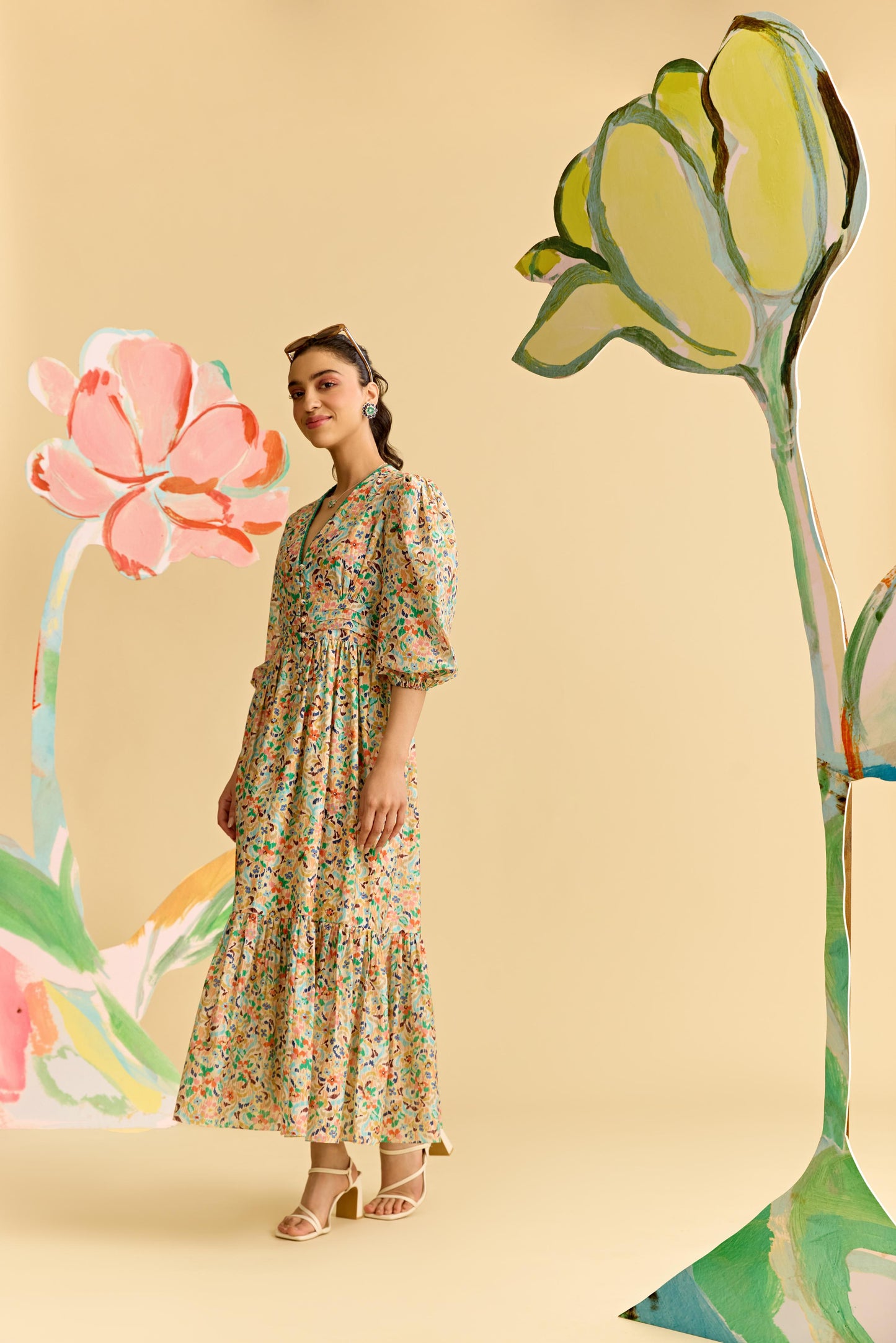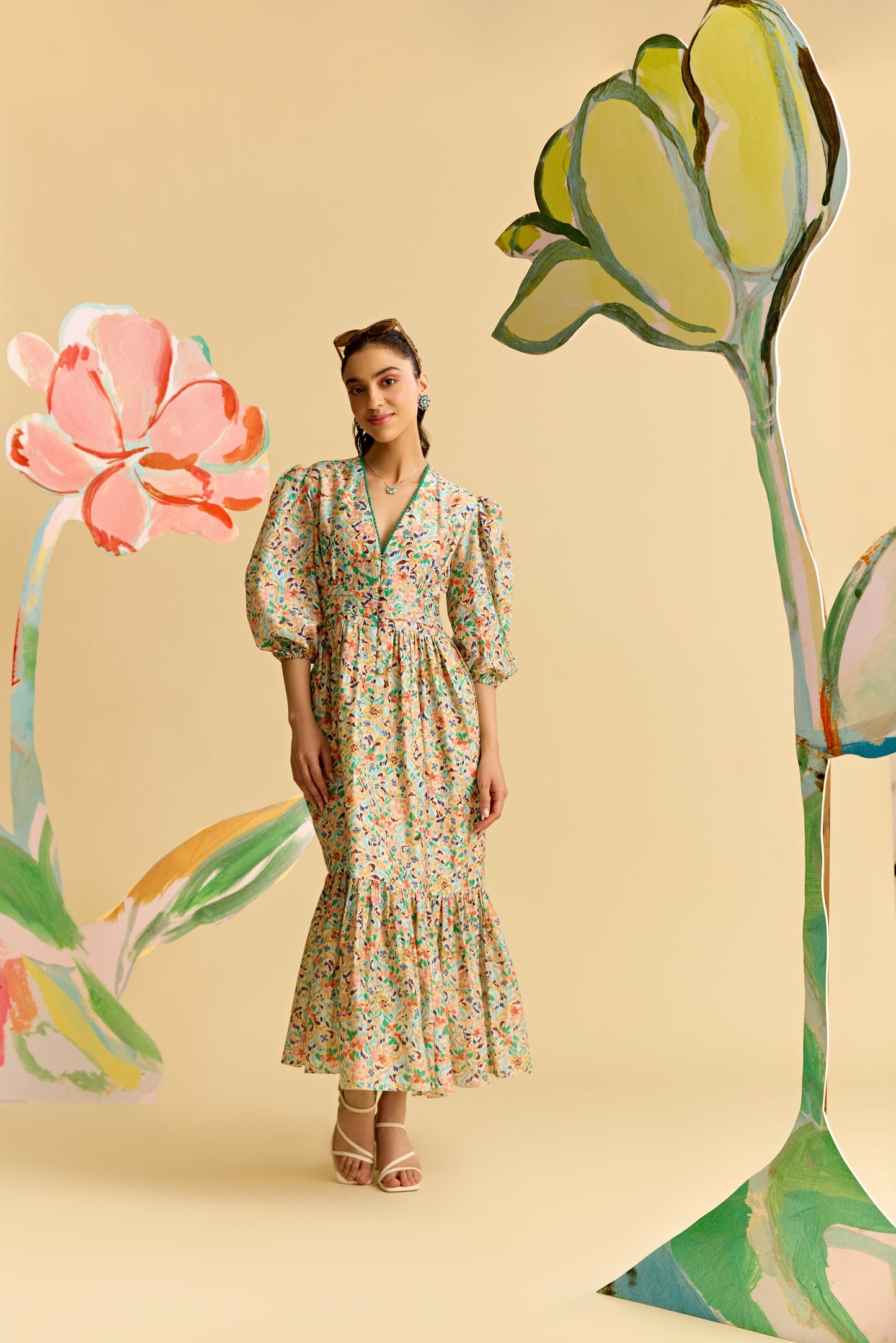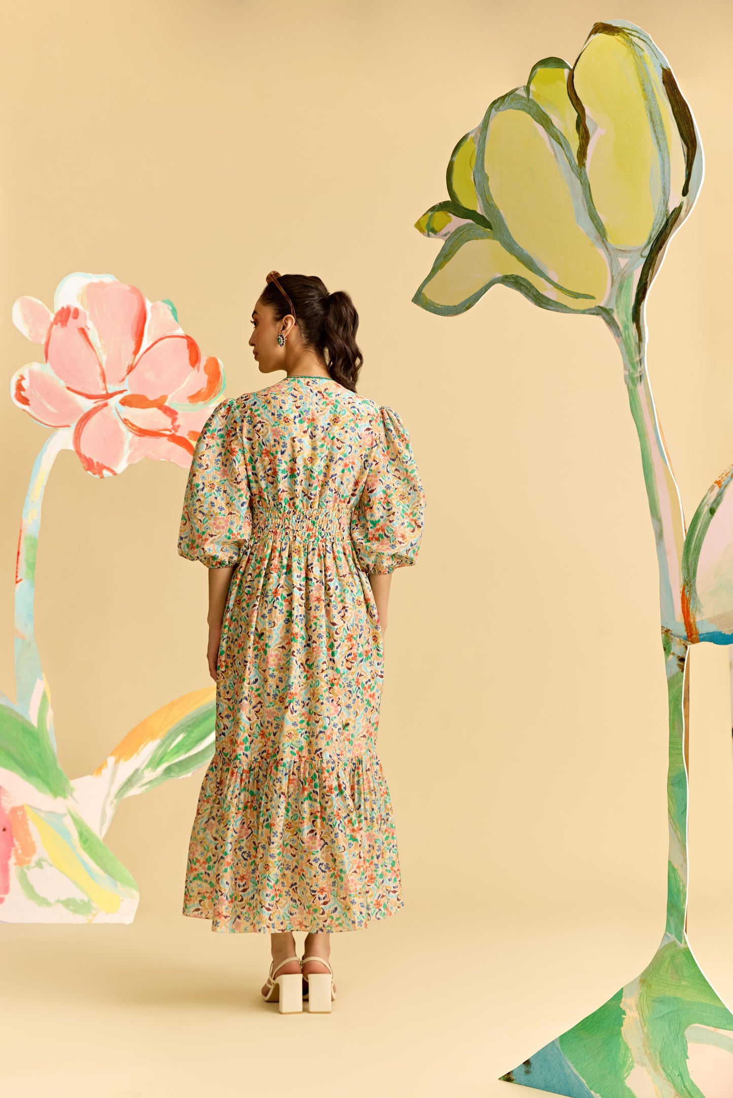 Ivory Multicoloured Printed Dress.
