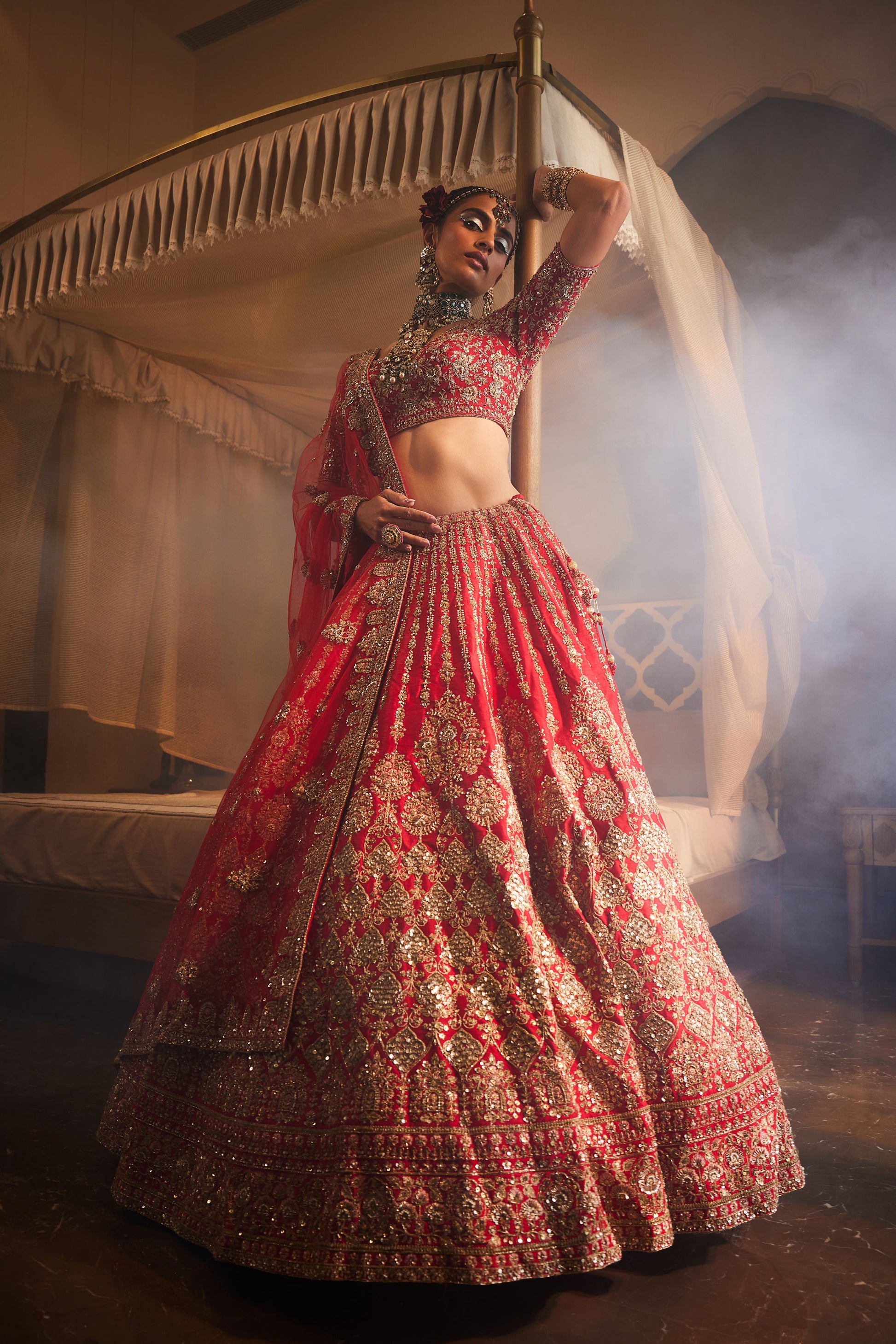 JAHANARA RED HEAVILY EMBROIDERED LEHENGA