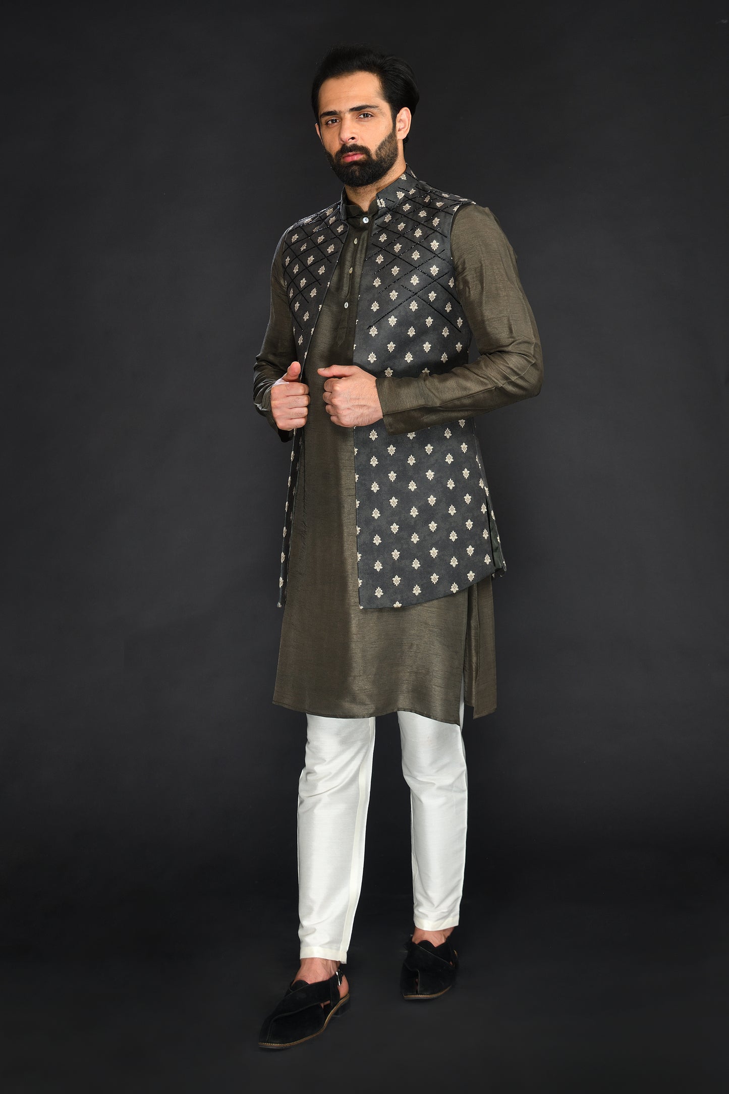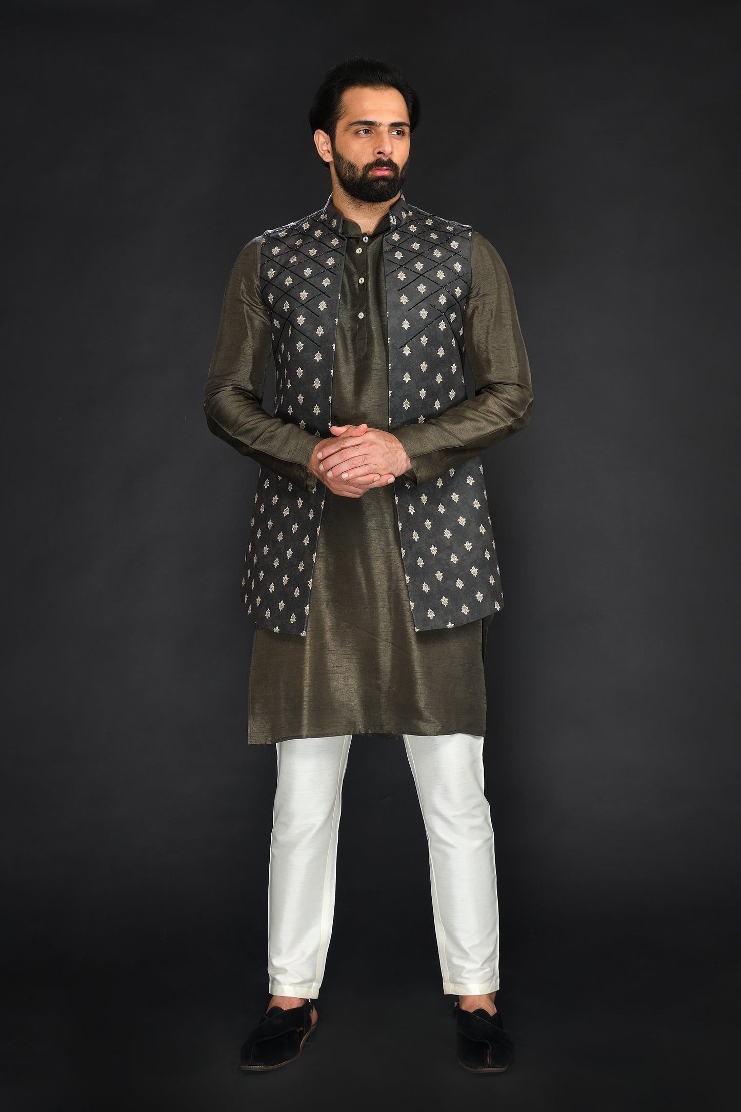 LONG BUNDI WITH KURTA AND CHURIDAR