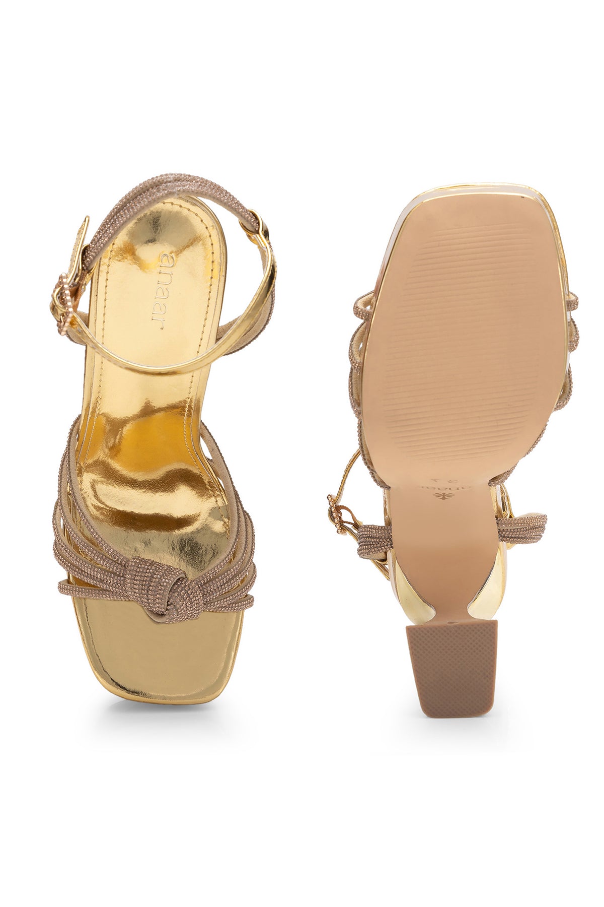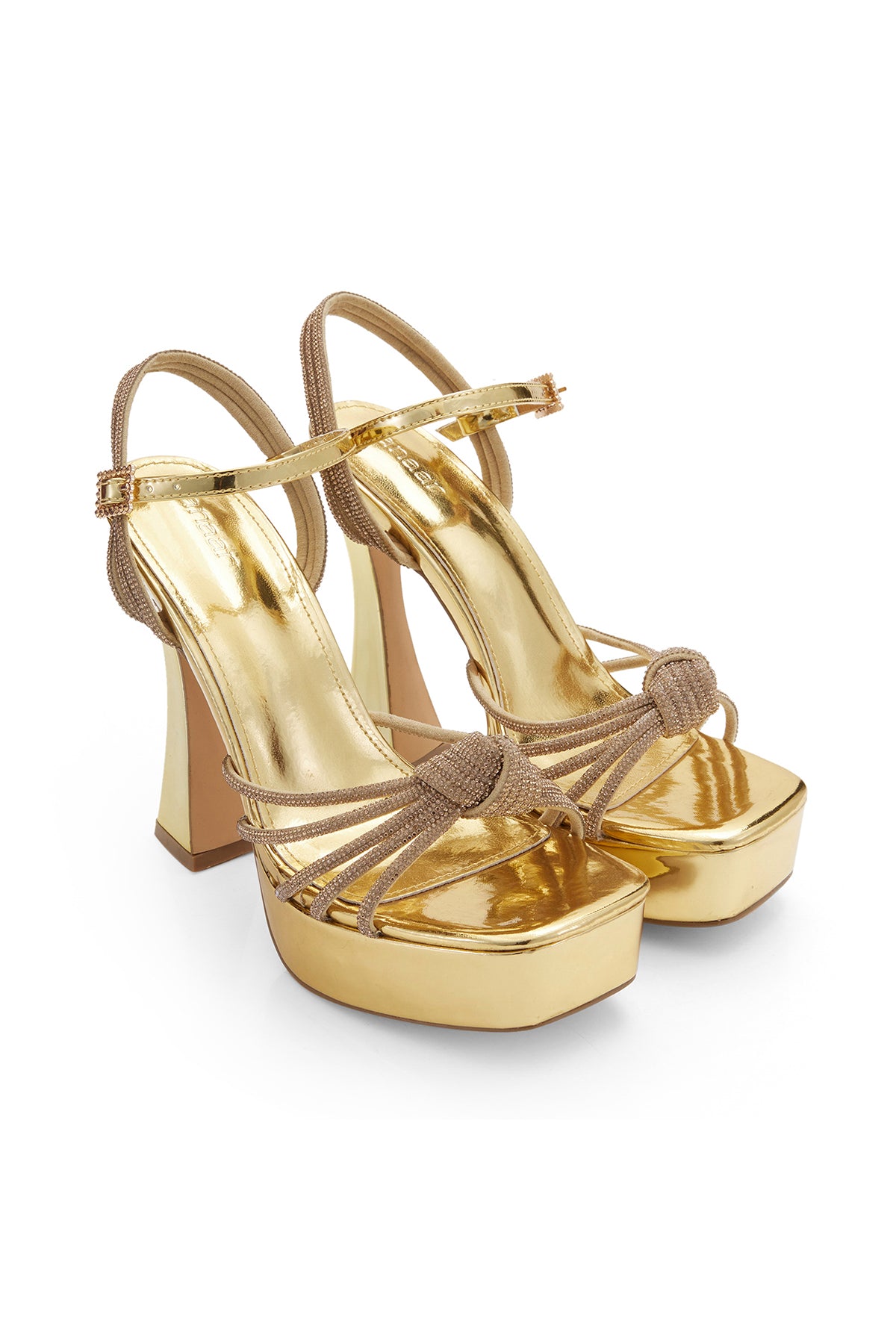 A Pair Of Gold Platform Heels That Redefine Elegance With A One-Of-A-Kind Design. These Heels Feature A Captivating Twist; Five Strands Gracefully Intertwine From Both Sides, Culminating In A Beautifully Crafted Knot That Adorns The Front. The Intricate Knot Detail Adds A Touch Of Sophistication And Uniqueness To Your Outfit, Making "Lover'S Knot" The Perfect Choice For Those Who Want To Stand Out In Style. Beyond Their Aesthetic Charm, These Platform Heels Prioritize Comfort, Ensuring You Can Enjoy Your Special Moments With Ease And Grace.