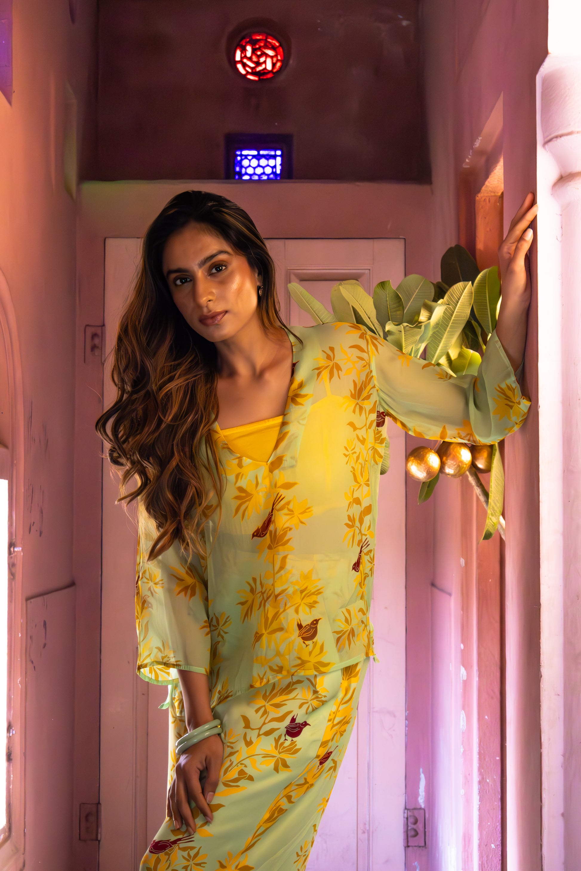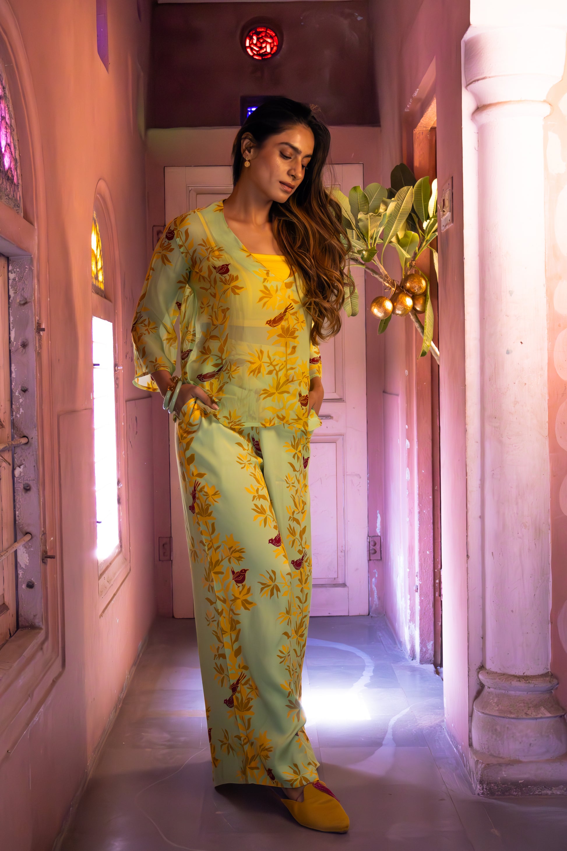 Discover Our Chic Coord Set, Designed To Elevate Your Style Effortlessly. This Ensemble Features An Organza Shirt With Relaxed 3/4 Sleeves, Exuding Sophistication And Charm.