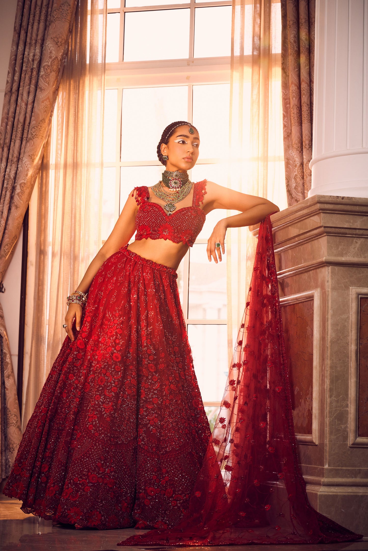 Feel The Ethereal Texture Of The Net And Embrace The Intricate Details Of Sequins And Cutdana As You Step Into The Spotlight. Whether It'S Your Wedding Day Or A Cherished Celebration, The Maroon Embroidered Lehenga Promises To Make You Radiate Grace And Beauty With A Modern Twist.