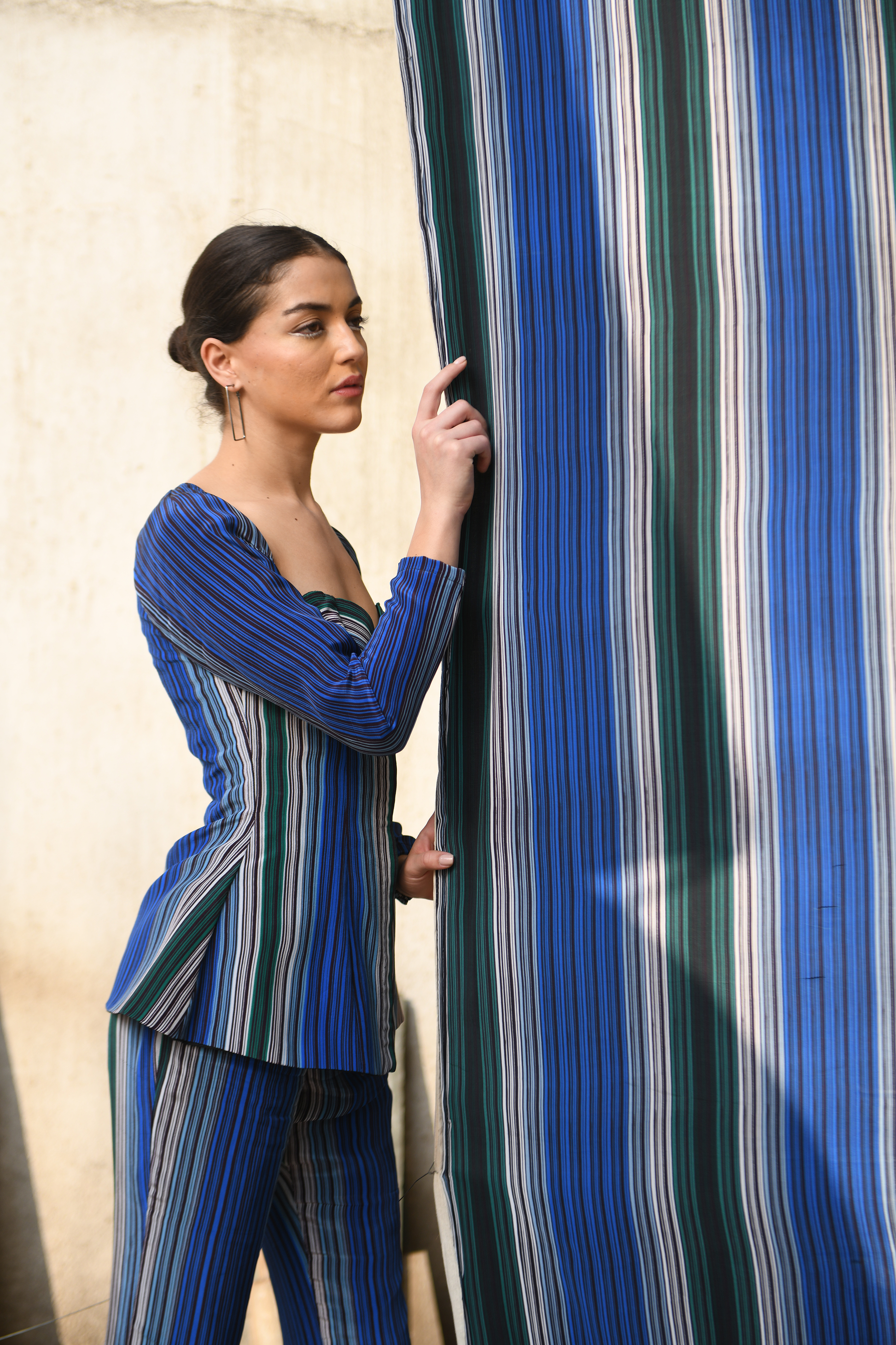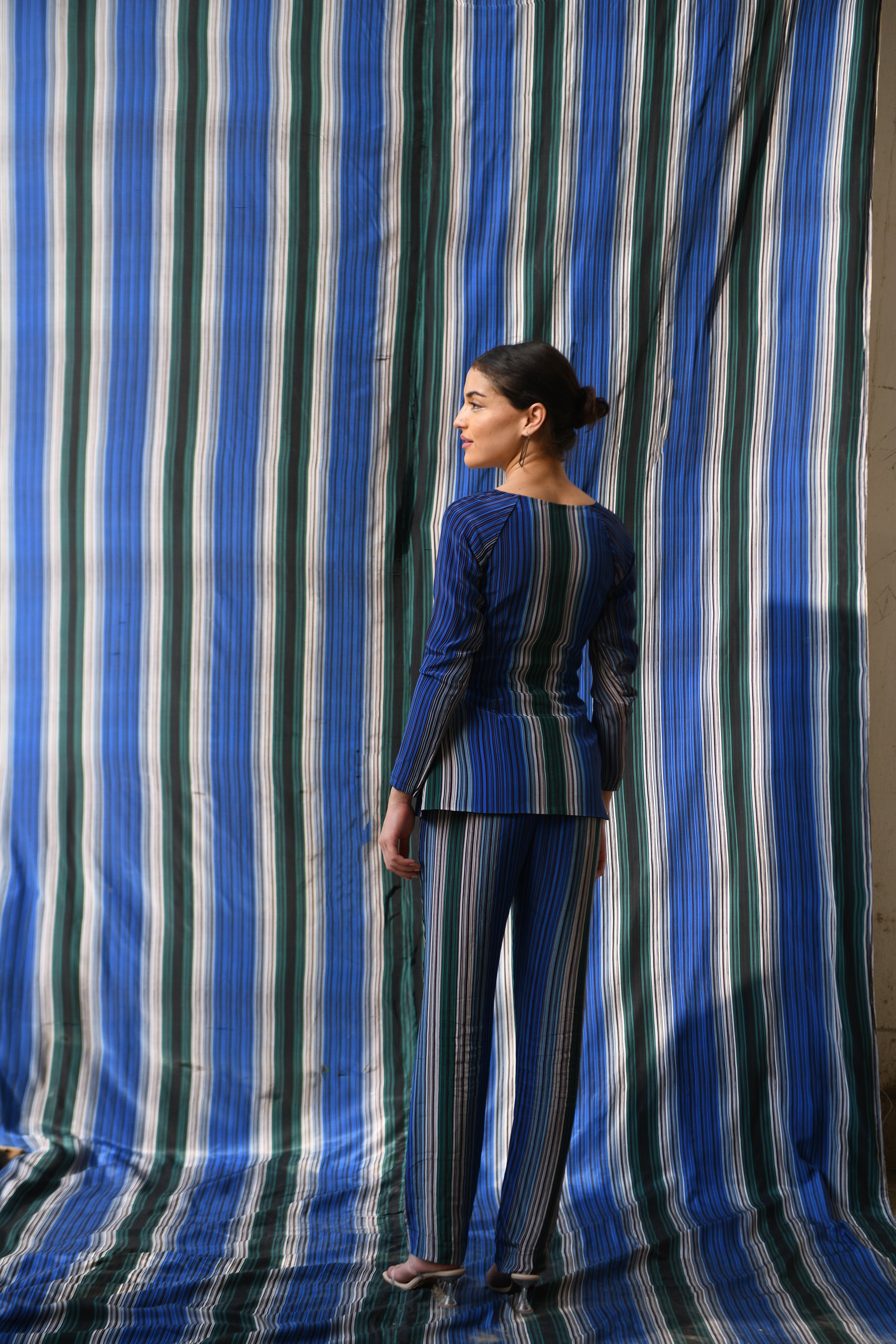Featuring Our Peplum Stylish Jacket, A Versatile Addition To Your Wardrobe. Crafted From Bemb Crepe Fabric, This Jacket Features A Chic Stripe Placement Print That Adds A Touch Of Sophistication To Your Ensemble. With Its Raglan Full Sleeves, It Offers Both Style And Comfort.