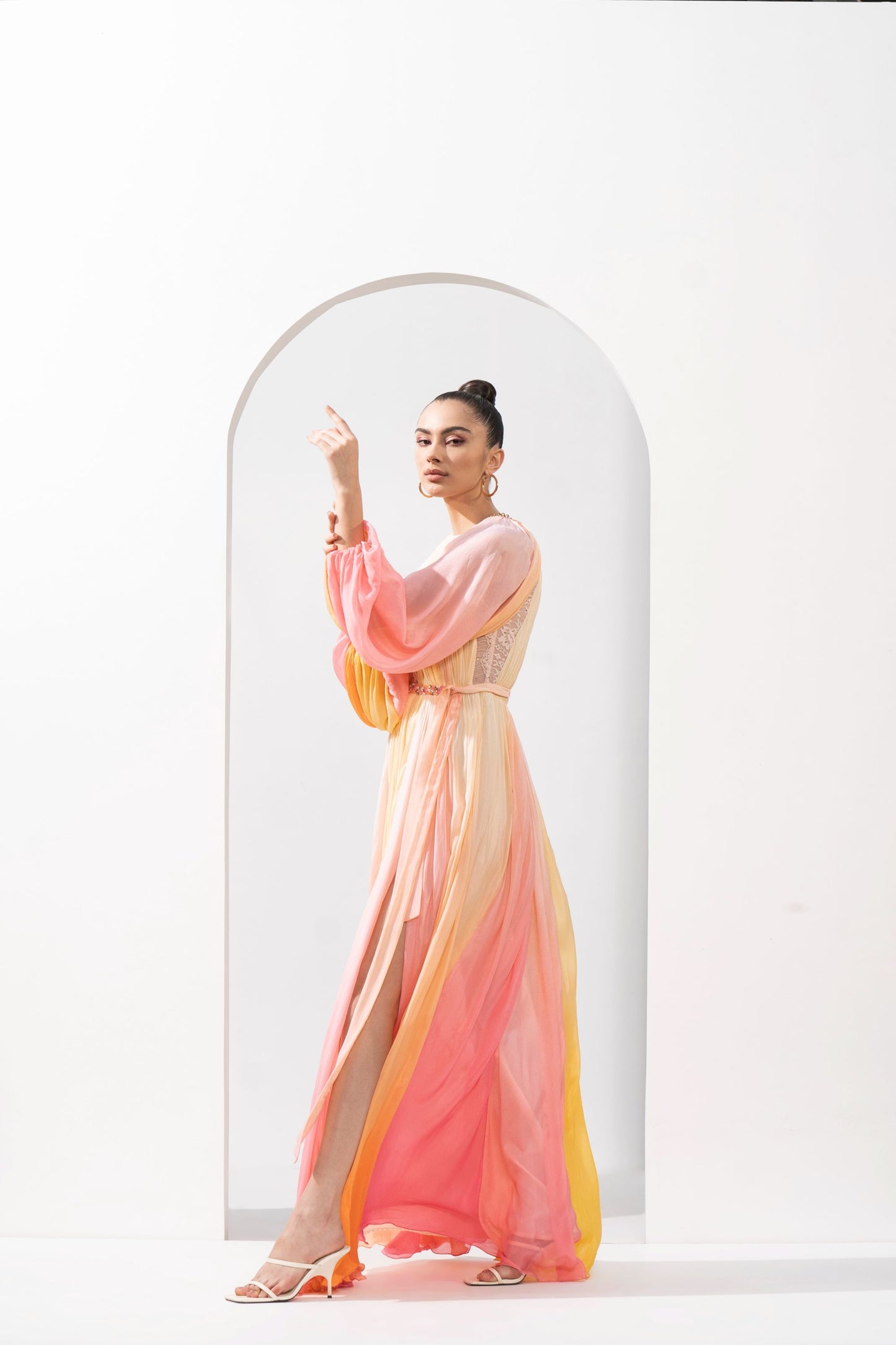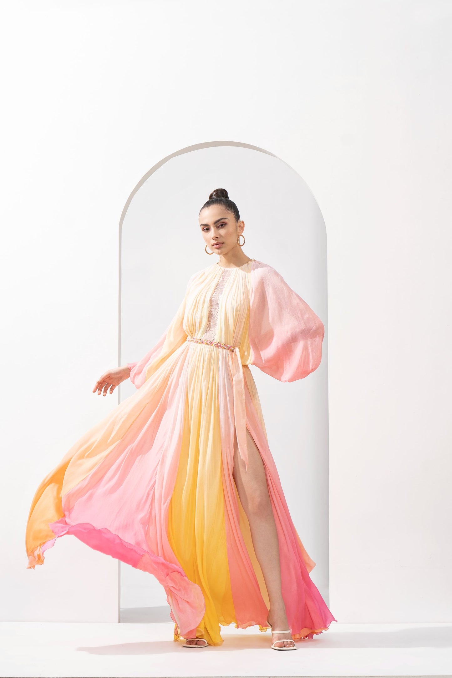 MULTICOLOUR OMBRE PRINTED CHIFFON DRESS