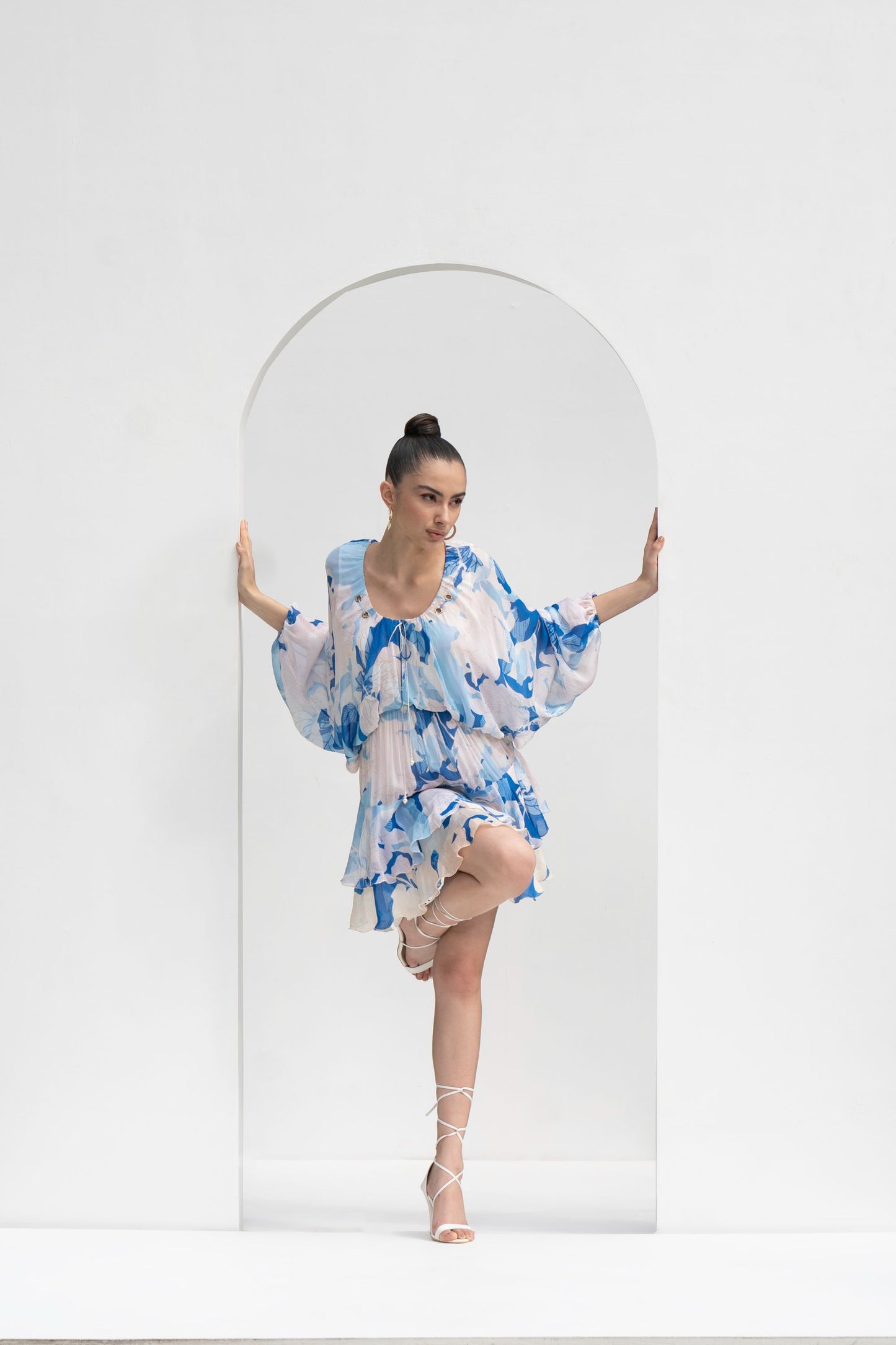 MYSTIC BLUE PRINTED CHIFFON DRESS