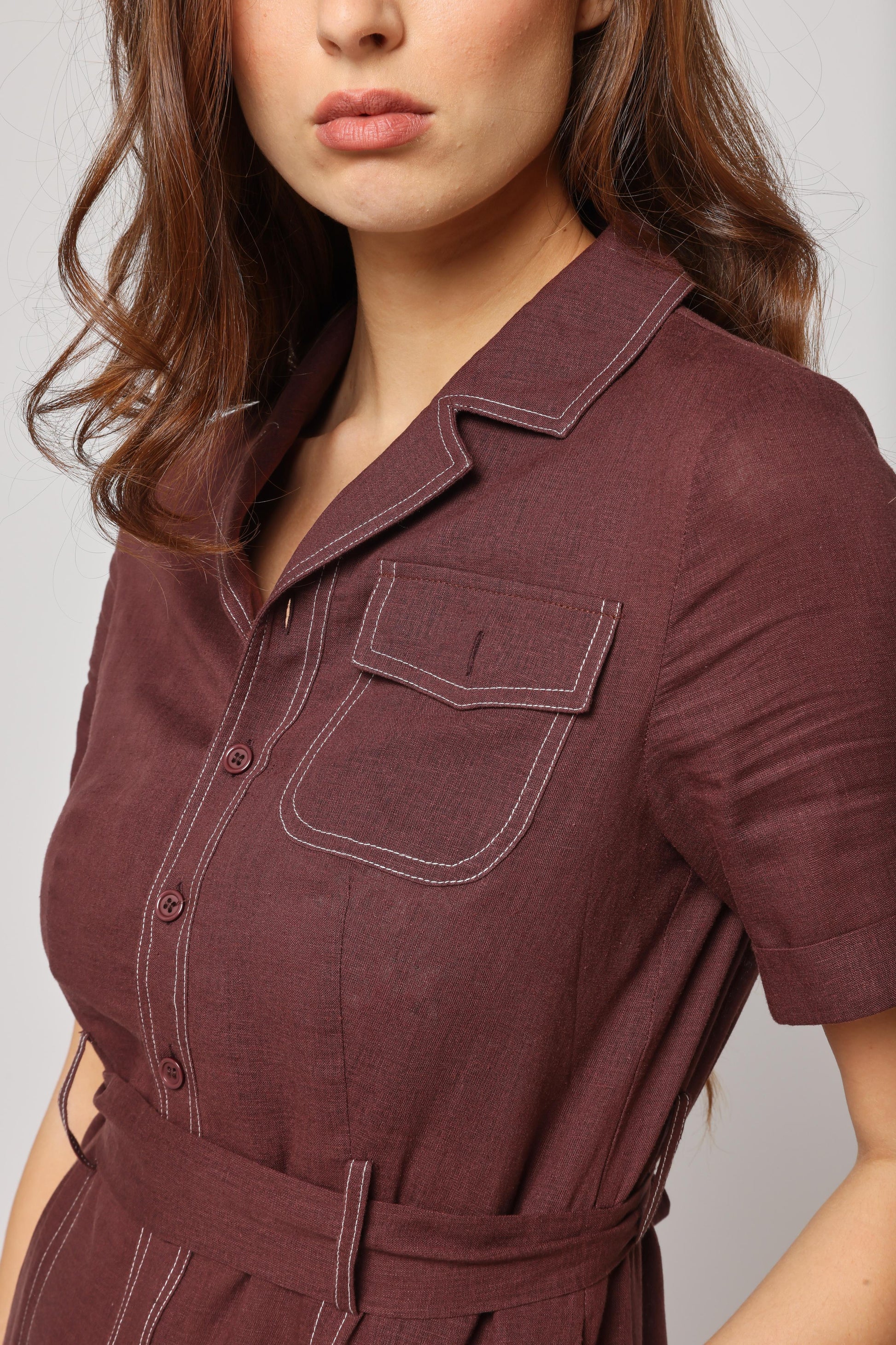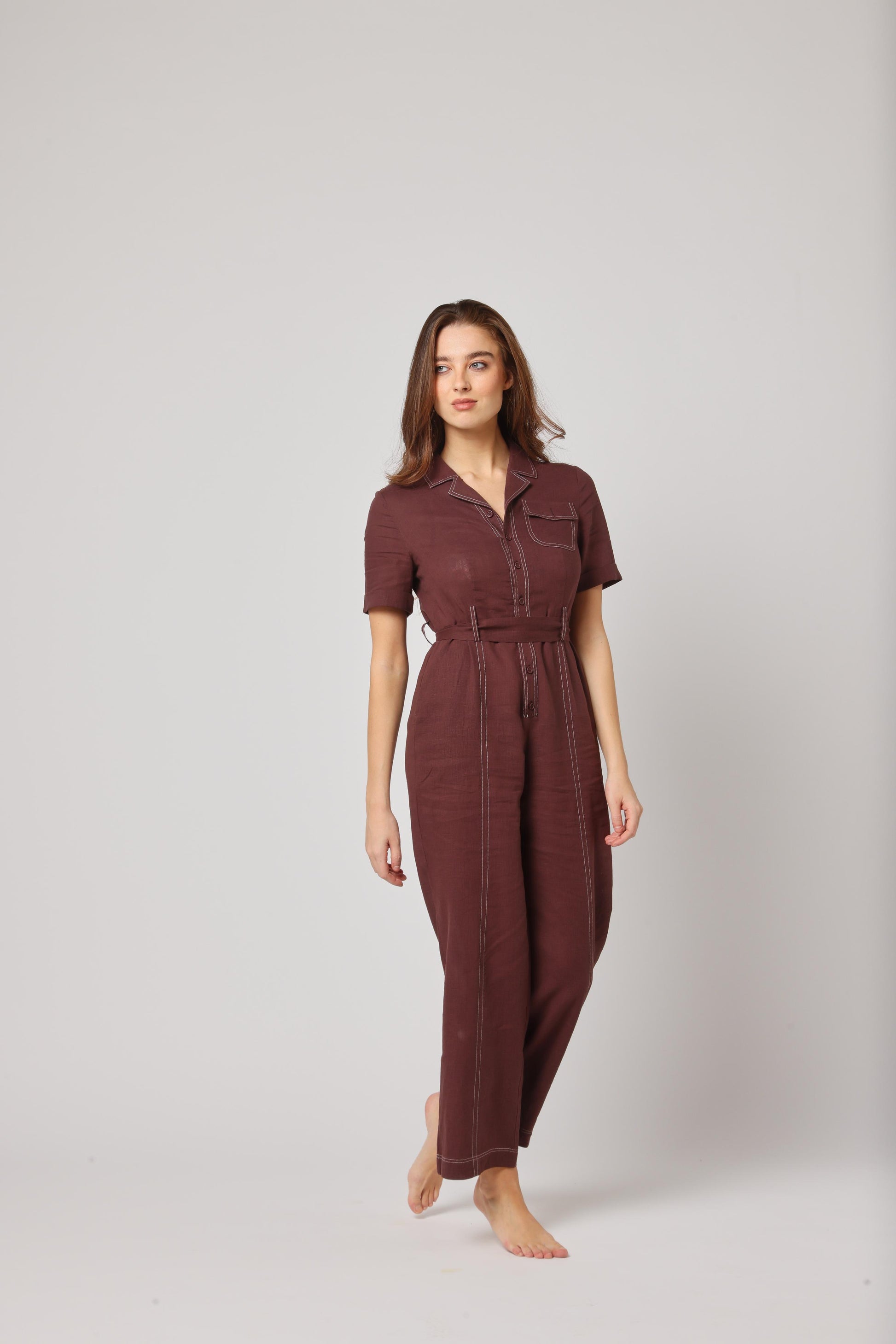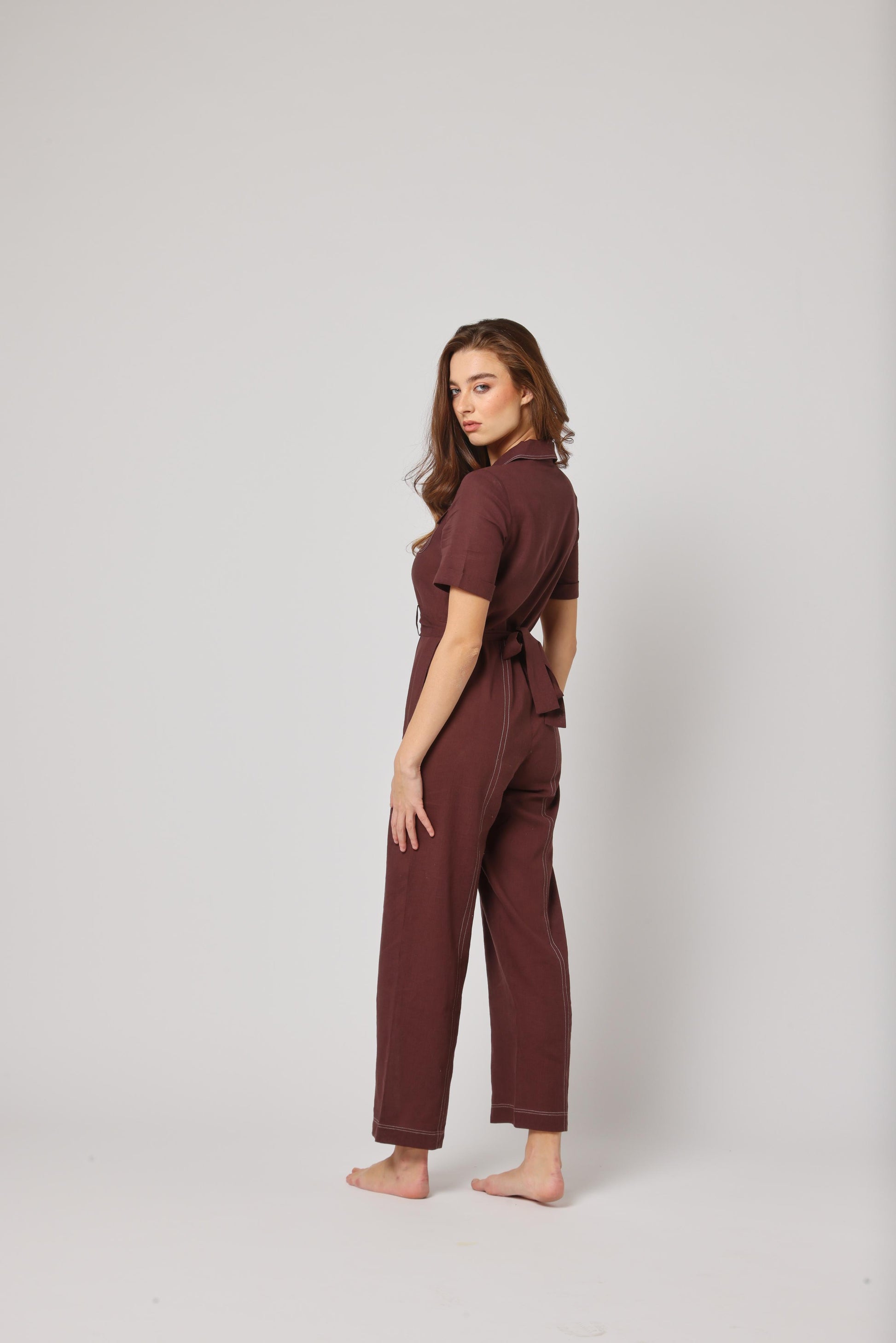 The Noor Set Features A Classic Button-Down Top With A Tailored Collar, Exuding Polished Elegance. Short Sleeves Offer Versatility, While Functional Front Pockets With Contrast Stitching Add A Refined Utilitarian Touch. The Structured-Yet-Relaxed Fit Of The Pants Ensures Ease Of Movement, Complemented By A Cinched, Adjustable Waist Belt For A Flattering Silhouette.