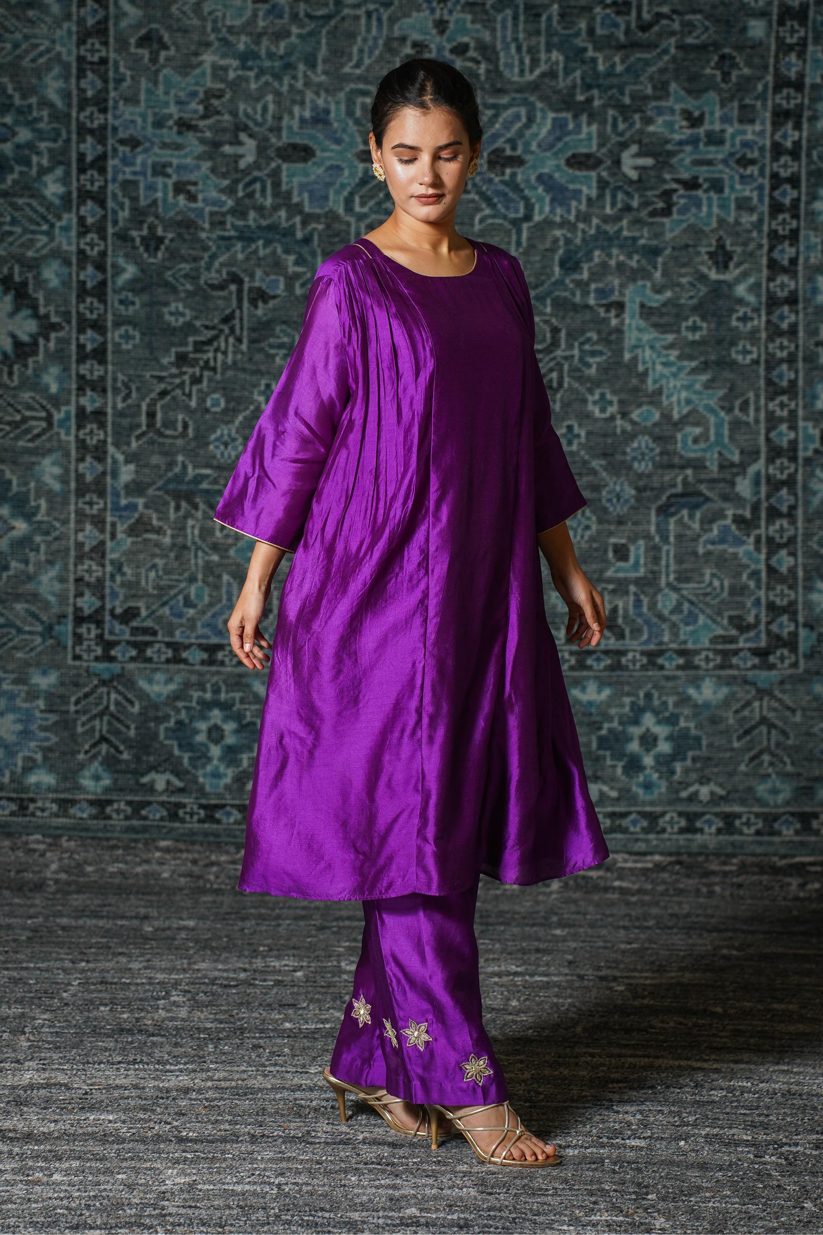 NOOR PURPLE GATHER KURTA SET