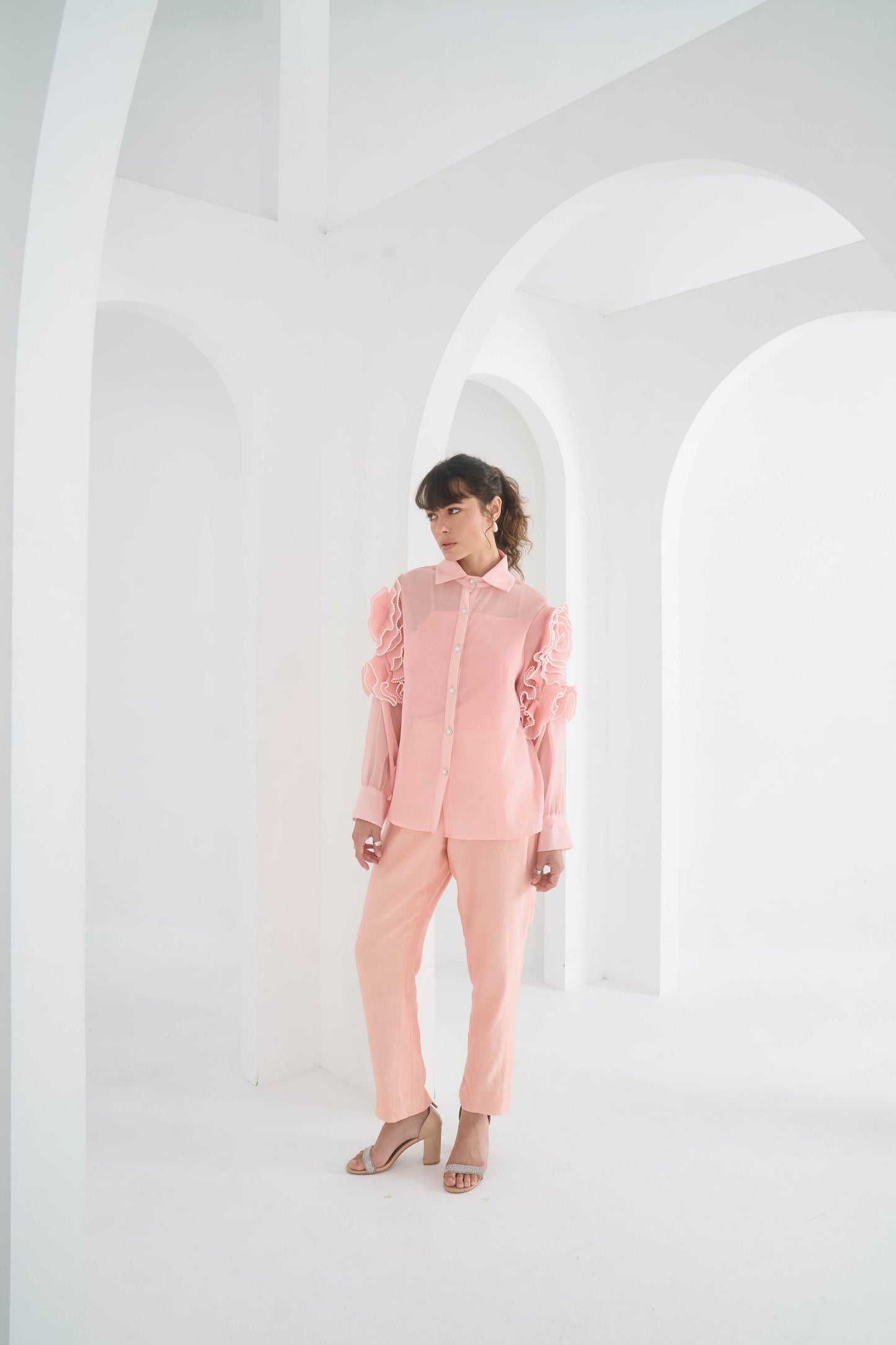 Featuring Nude Chanderi Pant With Cotton Linning. It Has Elastic At Back Waist.
