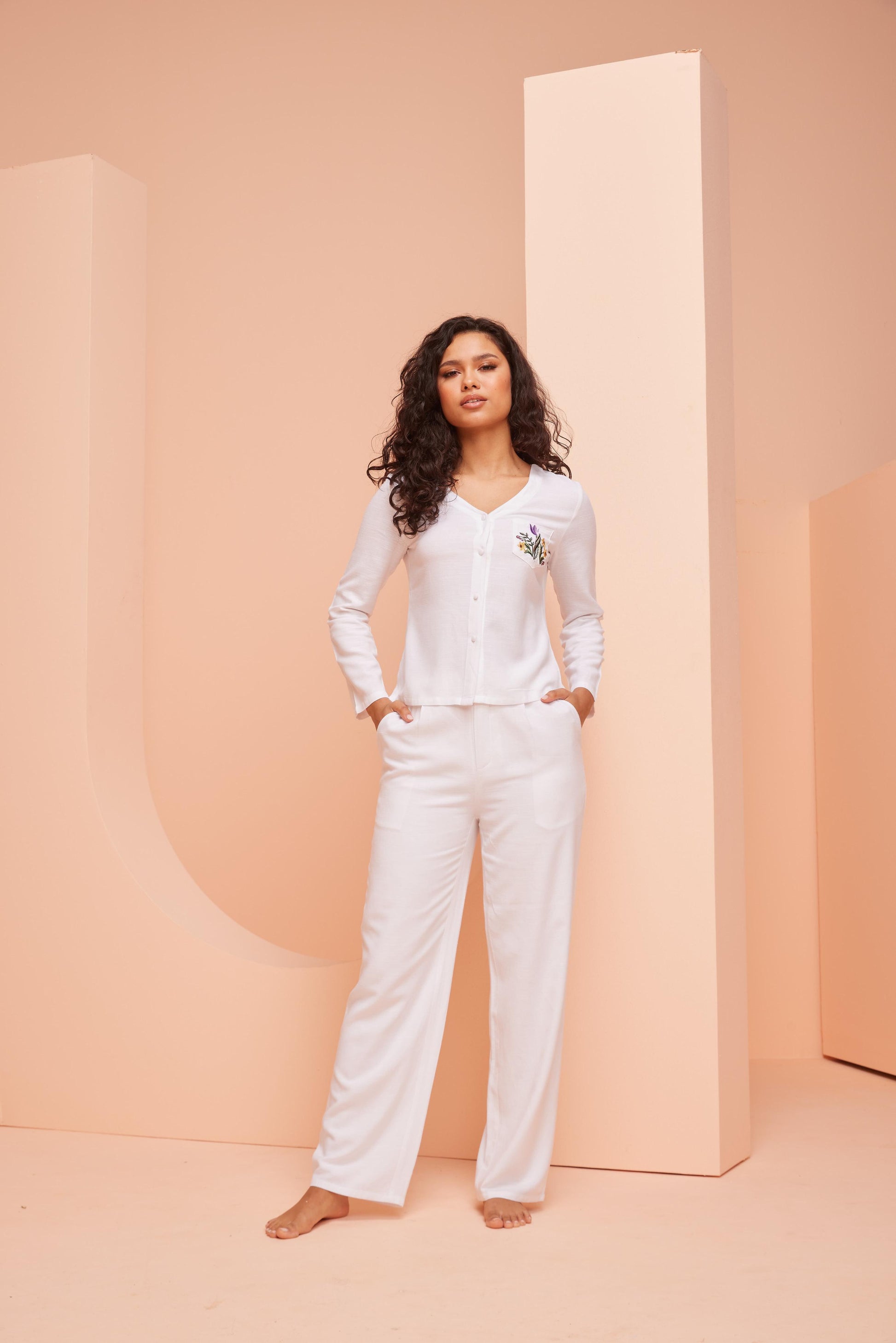 This Casual Linen Two-Piece Matching Set Comes With Women’s Loose-Fitting Zip- Front Pants For An Effortless Style And Cool, Relaxed Fit. Matching White Linen Embroidered Shirt With Four Buttons Down The Front; Wear It Open With A Camisole Underneath For A Layered Look.
