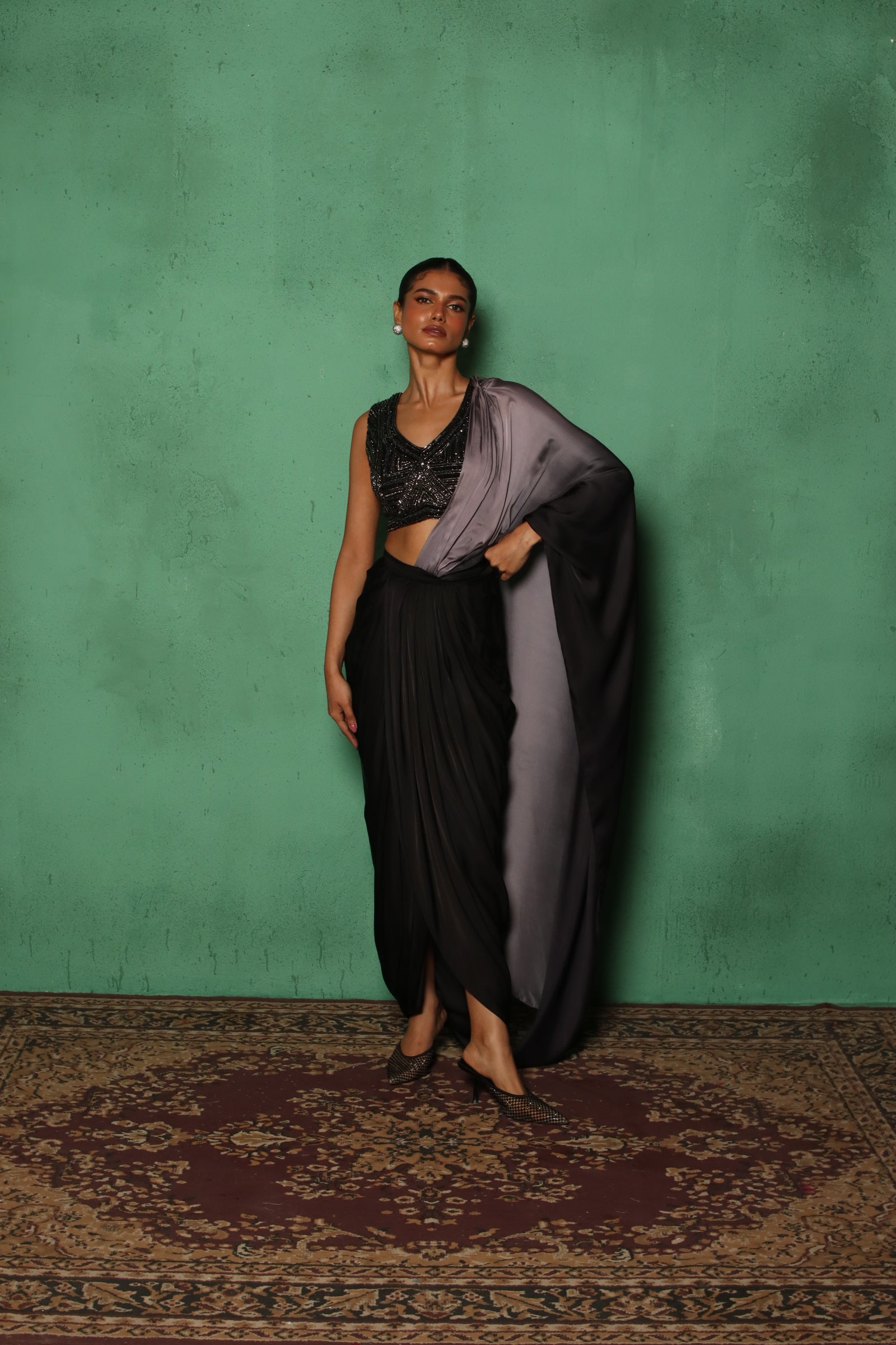 Shades Of Sophistication! Embrace The Night In This Cocktail-Ready Ombre Shaded Satin Palla Skirt And Embroidered Blouse.