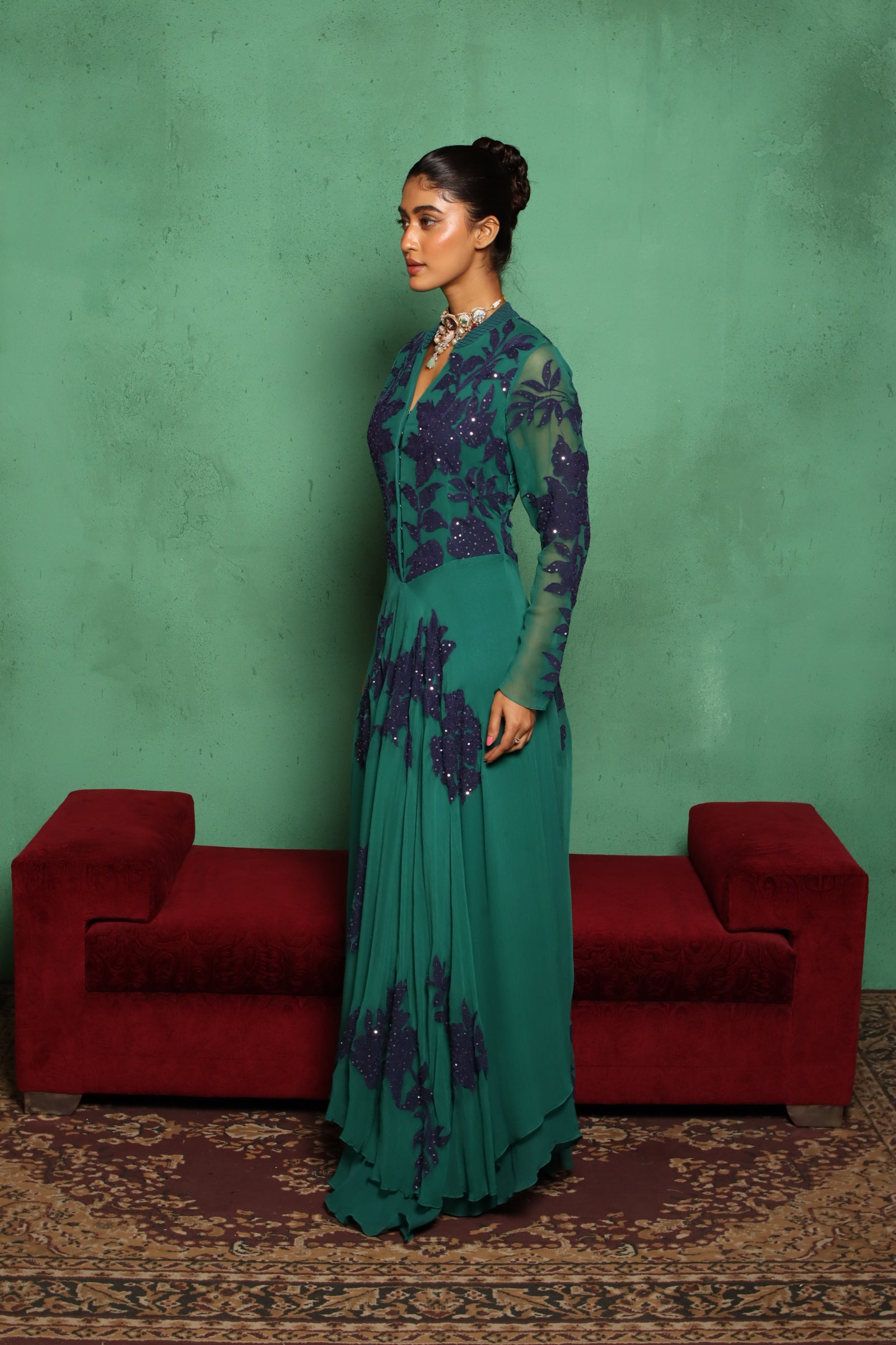 Emerald Dreams & Floral Schemes! This Unique Bias-Cut Dress Features Exquisite Floral Patchwork, Creating A Truly One-Of-A-Kind Masterpiece. Feel The Artistry In Every Twirl.
