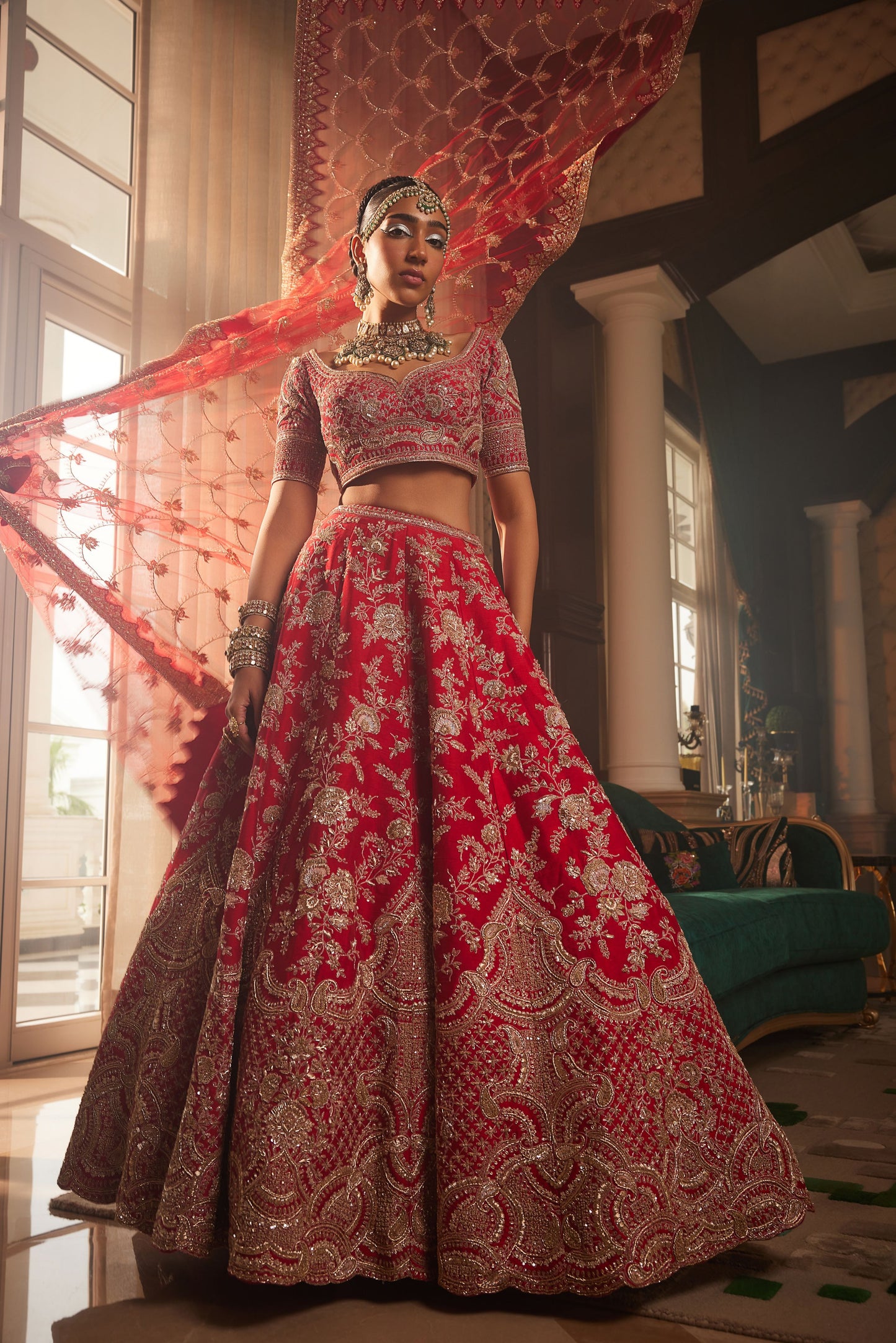 PERSIA RED HEAVILY EMBROIDERED LEHENGA
