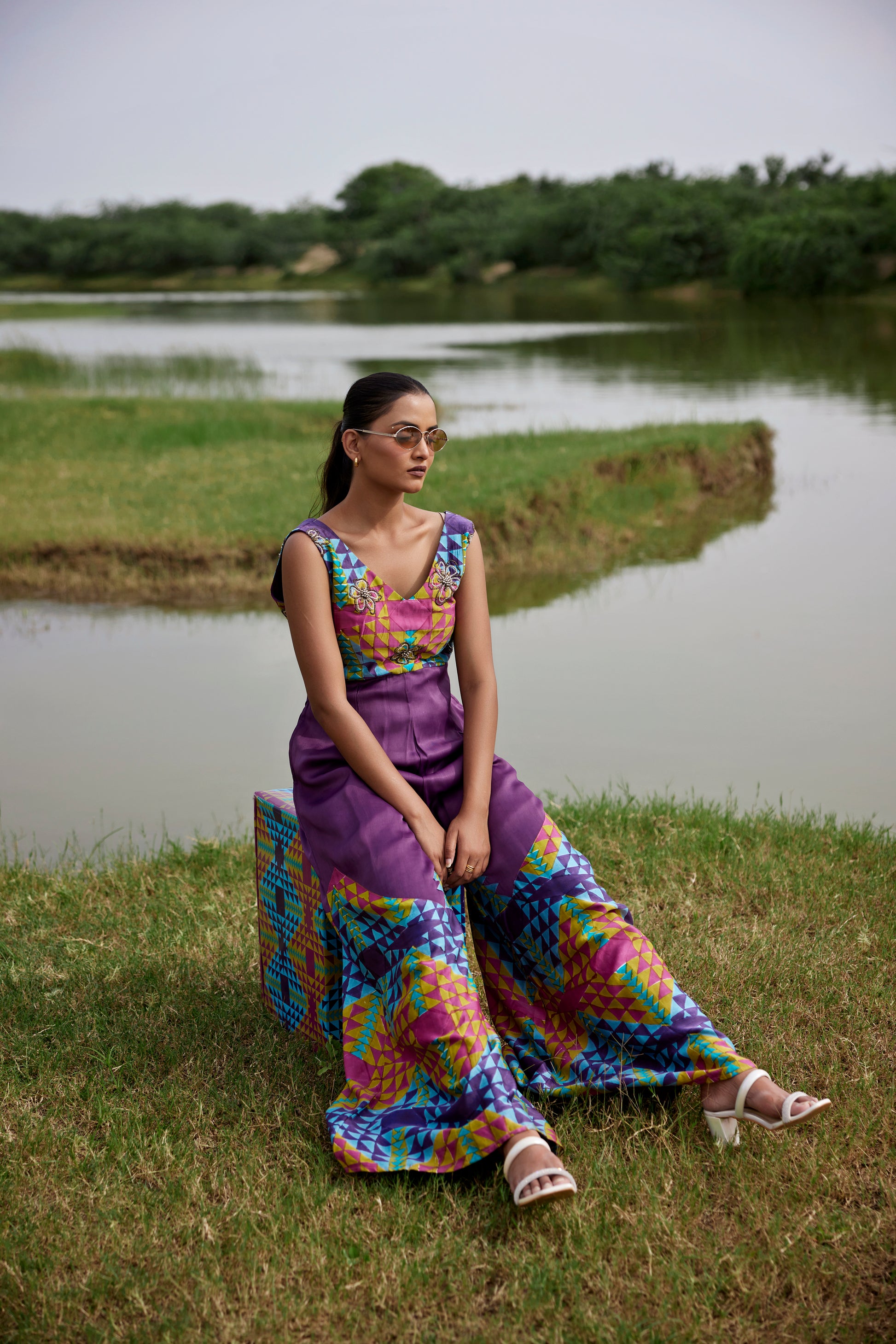 Purple Jumpsuit With Intricate Embroidery For Women.