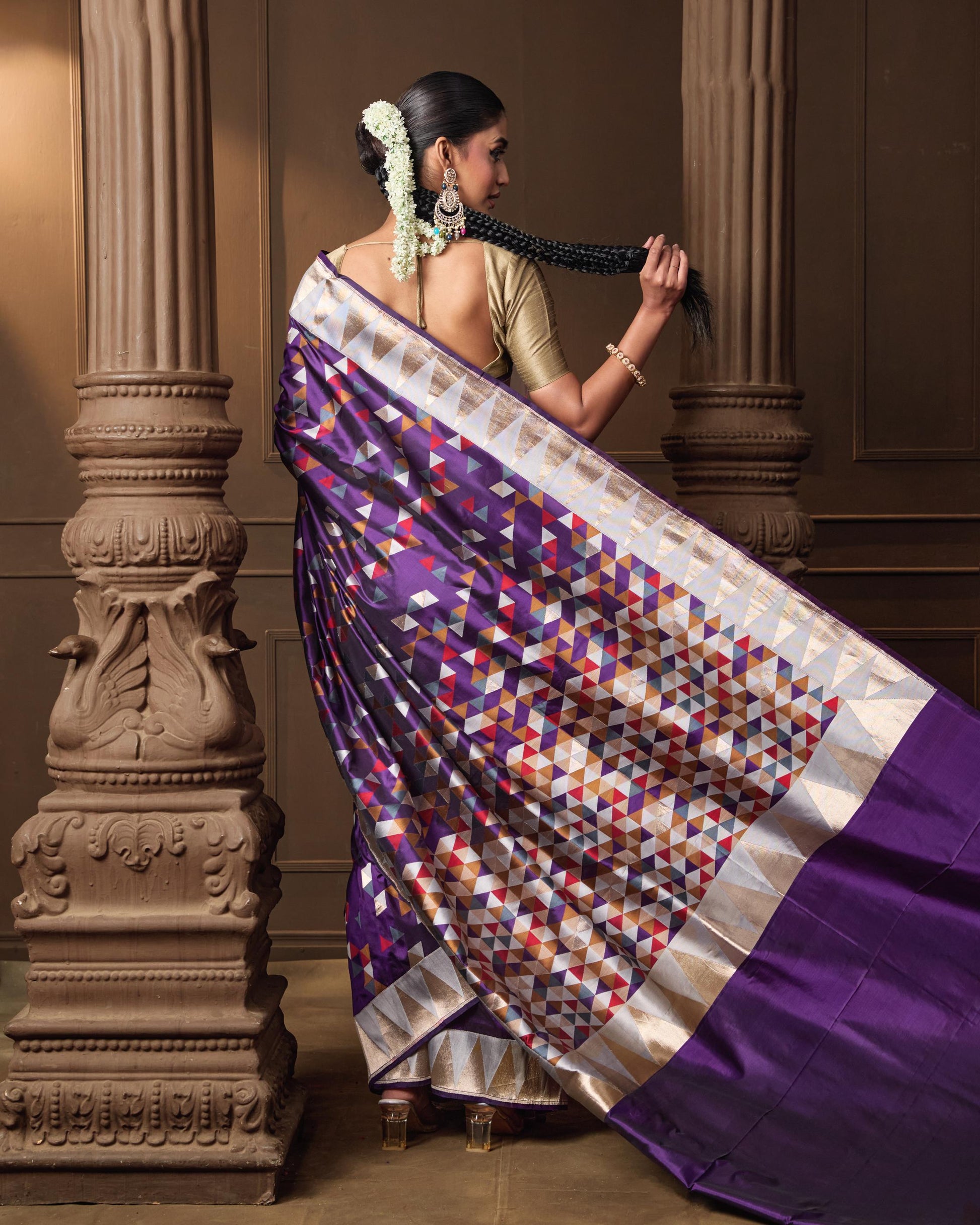 Geometric Banarsi Silk Saree With Running Blouse Piece.
