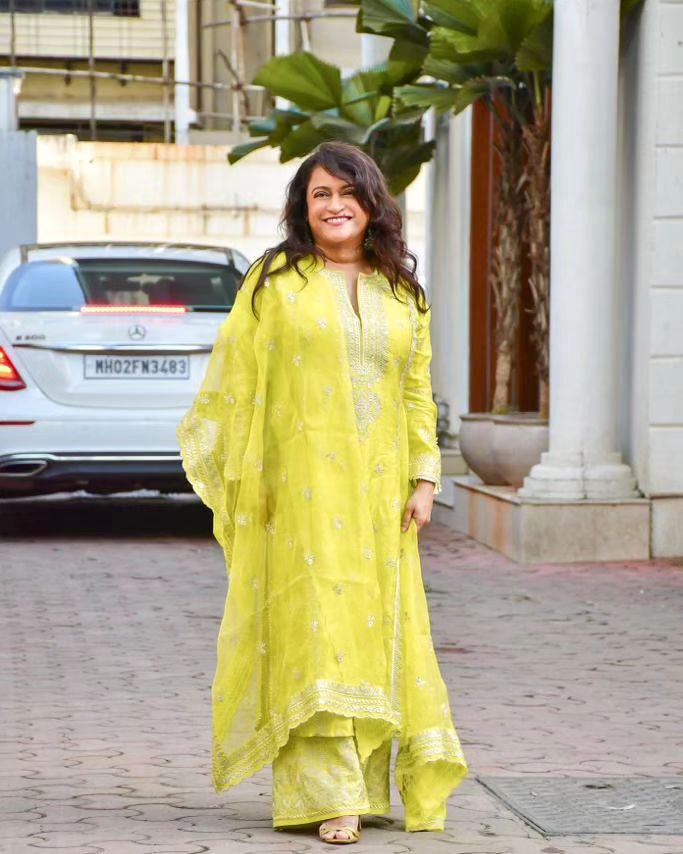 The intricate embroidery that graces the kurta is a testament to the meticulous craftsmanship. Delicate threadwork adorns the fabric, creating a mesmerizing tapestry of patterns and designs that catch the light beautifully. Complementing the kurta are the matching embroidered palazzo pants and organza dupatta, designed for both style and comfort. The palazzo pants' wide-legged silhouette adds an element of drama and movement to the outfit while maintaining a sense of sophistication. The embroidery on the pants harmoniously matches the kurta, creating a cohesive and captivating look that showcases attention to detail and design precision.