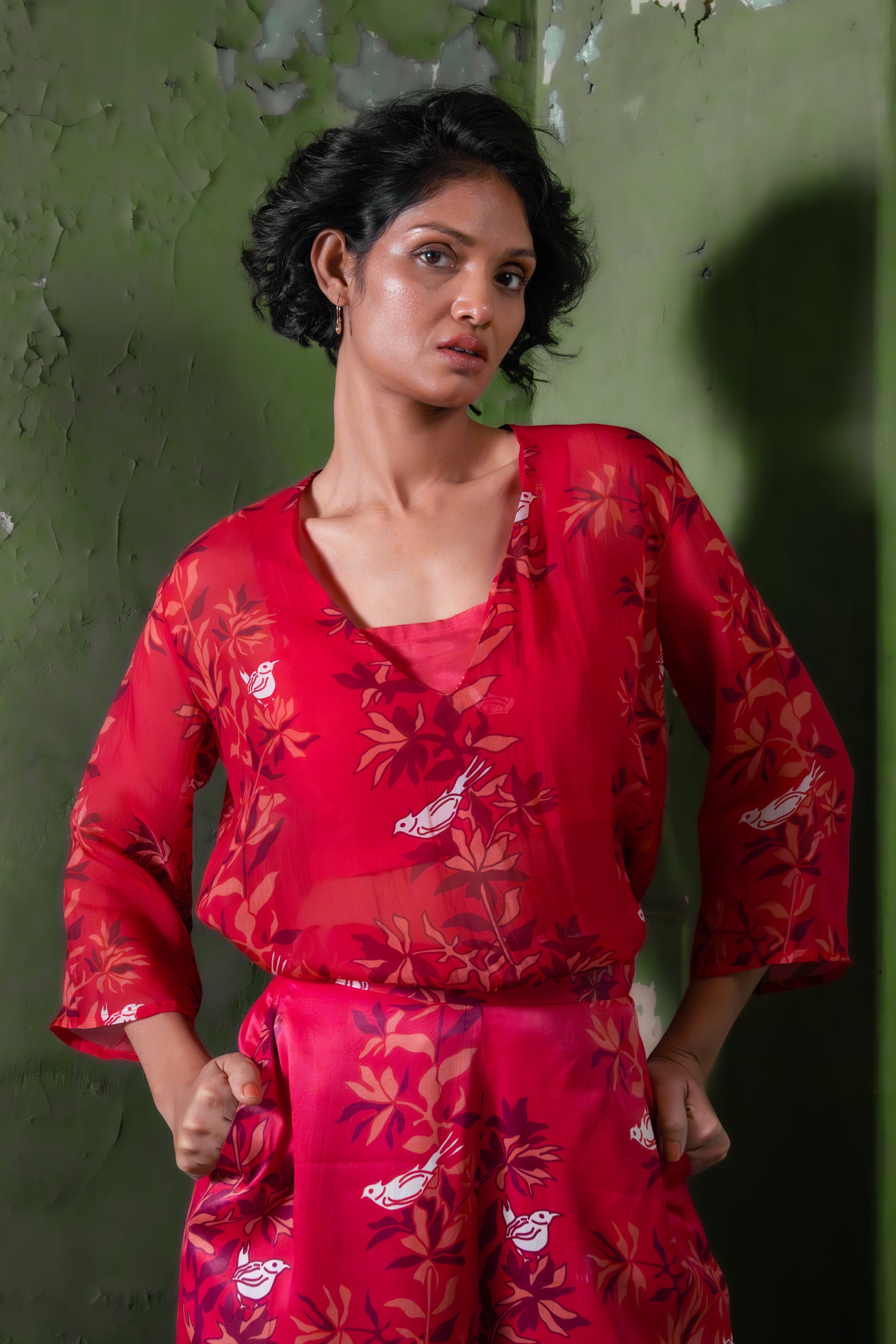This Ensemble Features An Organza Shirt With Relaxed 3/4 Sleeves, Exuding Sophistication And Charm. Paired With A Stylish Bustier And Elasticated Pants, It's A Versatile Choice That Seamlessly Combines Classic And Contemporary Elements.
